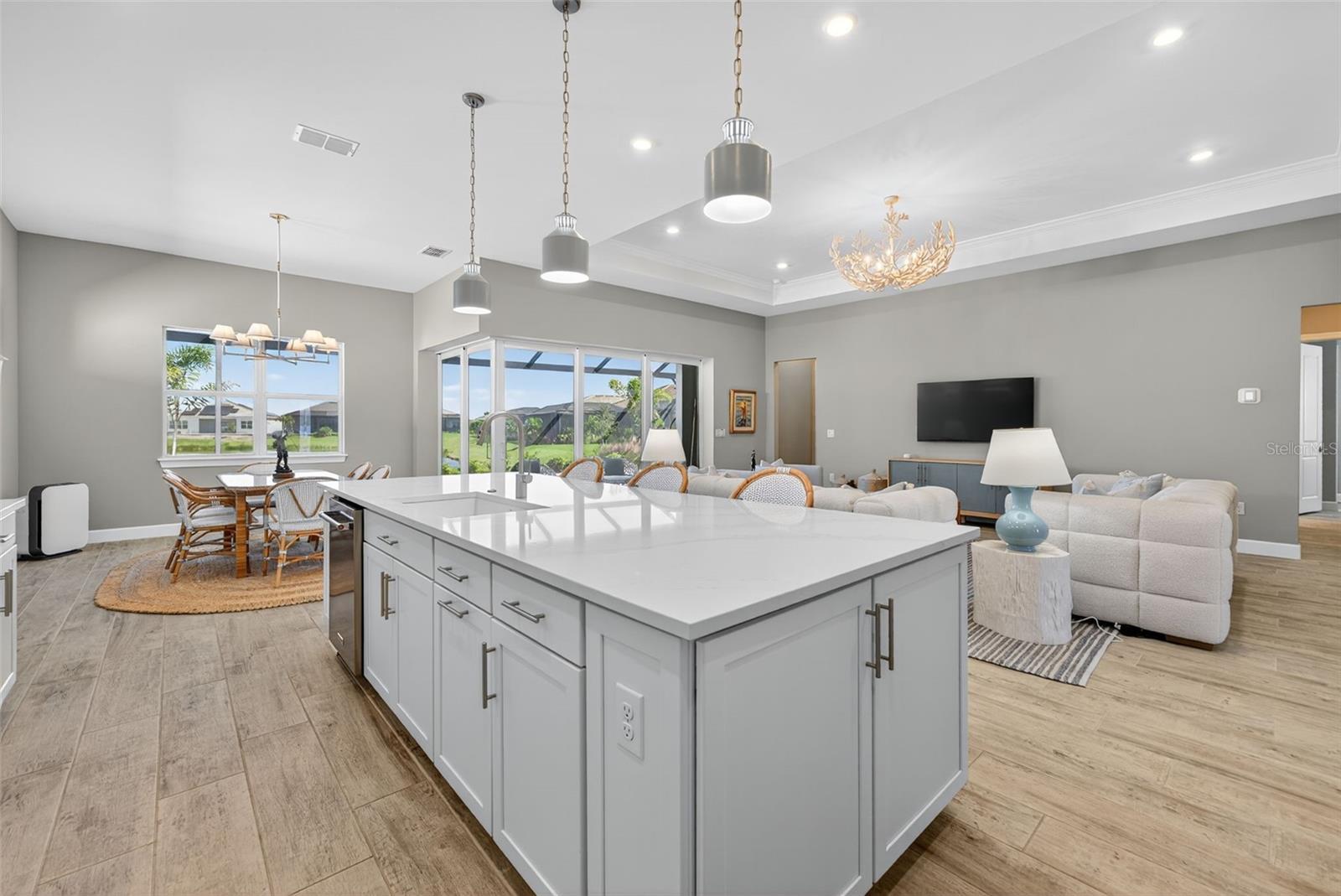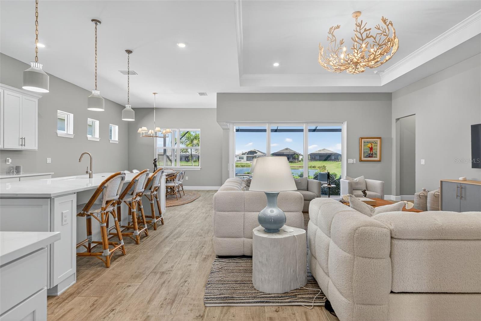 WELCOME TO BEACHWALK BY MANASOTA KEY — one of Southwest Florida’s most sought-after COASTAL LIFESTYLE COMMUNITIES! This stunning STELLAR MODEL by PULTE HOMES, completed in 2024, is a showcase of modern design, luxury finishes, and relaxed Florida living. Why wait to build when you can move right into this IMMACULATE, NEARLY NEW HOME located just minutes from the BEACH? Step inside and be captivated by the BRIGHT, OPEN-CONCEPT FLOOR PLAN designed for both COMFORT and ENTERTAINING. The GRAND FOYER flows effortlessly into a spacious GREAT ROOM with soaring TRAY CEILINGS, 8-FOOT DOORS, and CERAMIC TILE FLOORING throughout. The GOURMET KITCHEN is the heart of the home, featuring 42-INCH DESIGNER CABINETRY, QUARTZ COUNTERTOPS, a LARGE CENTER ISLAND, STAINLESS-STEEL APPLIANCES, WALK-IN PANTRY, and elegant TILE BACKSPLASH — perfect for hosting friends and family. The DINING AREA overlooks the SCREENED LANAI overlooking sparkling POOL AND SPA allowing seamless indoor-outdoor living. Enjoy morning coffee or evening cocktails while taking in the peaceful surroundings. The OWNER’S SUITE is a true retreat, featuring a LUXURIOUS ENSUITE BATHROOM with DUAL VANITIES, QUARTZ COUNTERS, a WALK-IN SHOWER WITH FRAMELESS GLASS, and an EXPANSIVE WALK-IN CLOSET. Guests will appreciate the PRIVATE GUEST BEDROOMS and a VERSATILE DEN OR OFFICE, ideal for working from home or creating a cozy reading nook. The SPACIOUS LAUNDRY ROOM includes CABINET STORAGE and UTILITY SINK, while the THREE-CAR GARAGE offers plenty of space for vehicles, beach gear, or a golf cart. Additional highlights include IMPACT WINDOWS AND DOORS, CUSTOM LIGHTING AND FANS, SMART HOME FEATURES, ENERGY-EFFICIENT CONSTRUCTION, and a COVERED PAVER LANAI — ready for your future outdoor kitchen. Located within the GATED, RESORT-STYLE COMMUNITY OF BEACHWALK BY MANASOTA KEY, residents enjoy UNPARALLELED AMENITIES including a BEACH-ENTRY RESORT POOL, LAP POOL, HOT TUB, CLUBHOUSE WITH RESTAURANT AND BAR, FITNESS CENTER, MOVEMENT STUDIO, PICKLEBALL COURTS, TENNIS COURTS, BOCCE BALL, FIRE PITS, DOG PARK, and MILES OF WALKING AND BIKING TRAILS. The community also offers GOLF CART ACCESS TO MANASOTA BEACH, where you can soak in breathtaking sunsets and enjoy the turquoise Gulf waters just minutes away. This is more than a home — it’s a LIFESTYLE. Experience the best of FLORIDA LIVING with easy access to VENICE, ENGLEWOOD, AND WOKING WATERFRONT DINING, BOUTIQUE SHOPPING, GOLF COURSES, MARINAS, and WORLD-CLASS BEACHES. Skip the construction delays and start enjoying your dream home today in one of the most exciting new communities on the Gulf Coast. The STELLAR MODEL offers the perfect blend of ELEGANCE, FUNCTIONALITY, AND COMFORT — designed for how you want to live today. Don’t miss your opportunity to own this beautiful 2024 PULTE HOME in BEACHWALK BY MANASOTA KEY — where every day feels like a vacation and luxury meets the laid-back coastal lifestyle Florida is famous for! **NO CDD FEES**