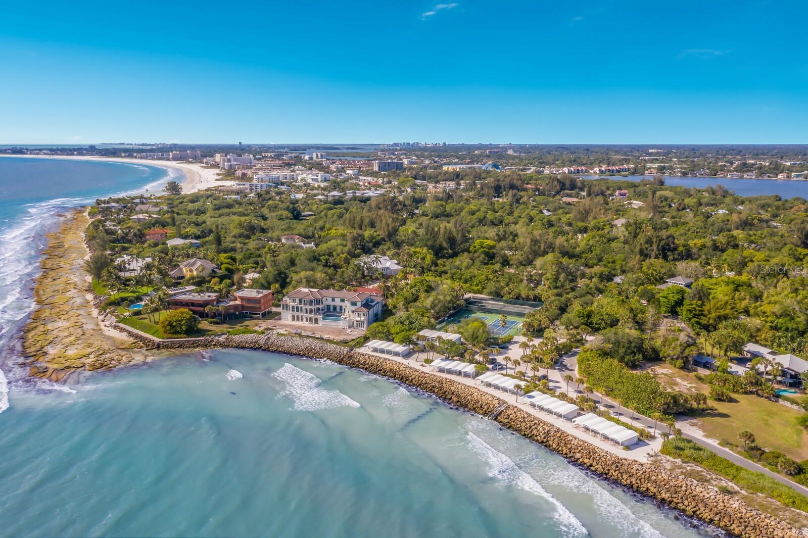 One or more photo(s) has been virtually staged. This exquisitely reimagined waterfront estate embodies modern luxury and serene exclusivity, offering 174 feet of prime waterfrontage in the prestigious Sanderling Club on Siesta Key. On a lush, nearly half-acre parcel, the residence enjoys a southern orientation, where panoramic views of a bridgeless bay unfold through walls of glass. A backdrop of meticulously landscaped greenery ensures privacy, all just near the water’s edge. At the heart of the home lies a state-of-the-art culinary haven. The chef’s kitchen is equipped with premium Wolf and Sub-Zero appliances, including a gas range and integrated espresso system, set within rich Merillat solid-wood cabinetry and dual islands designed for function and entertaining. Flowing seamlessly into the sunlit living and dining areas, the open-plan design creates an effortless connection between indoors and out. The living space extends gracefully to a sophisticated entertainment patio, where a firelit lounge, sparkling pool and fully appointed outdoor kitchen echo the refinement found within. The primary suite offers a tranquil retreat, framed by a garden and oak vista, and complemented by a spa-inspired bath featuring a deep soaking tub, dual vanities, and indoor and outdoor showers. An adjoining office doubles as a guest suite, while additional en-suite accommodations ensure privacy and comfort for visitors. Modern conveniences and peace of mind abound such as remote-controlled wrought-iron gates, impact-resistant windows and doors, whole-house water treatment, advanced smart-home systems, new roof, backup generator and environmentally conscious amenities, including a 500-gallon propane supply and integrated mosquito-repellent system. As a resident of Sanderling Club, you’ll enjoy access to a private beach, boat slips, tennis courts, clubhouse and 24-hour security, an unrivaled blend of leisure, privacy and coastal sophistication. This residence has been meticulously curated for those who seek the ultimate fusion of luxury and tranquility, an invitation to a lifestyle defined by elegance, ease and timeless waterfront living.