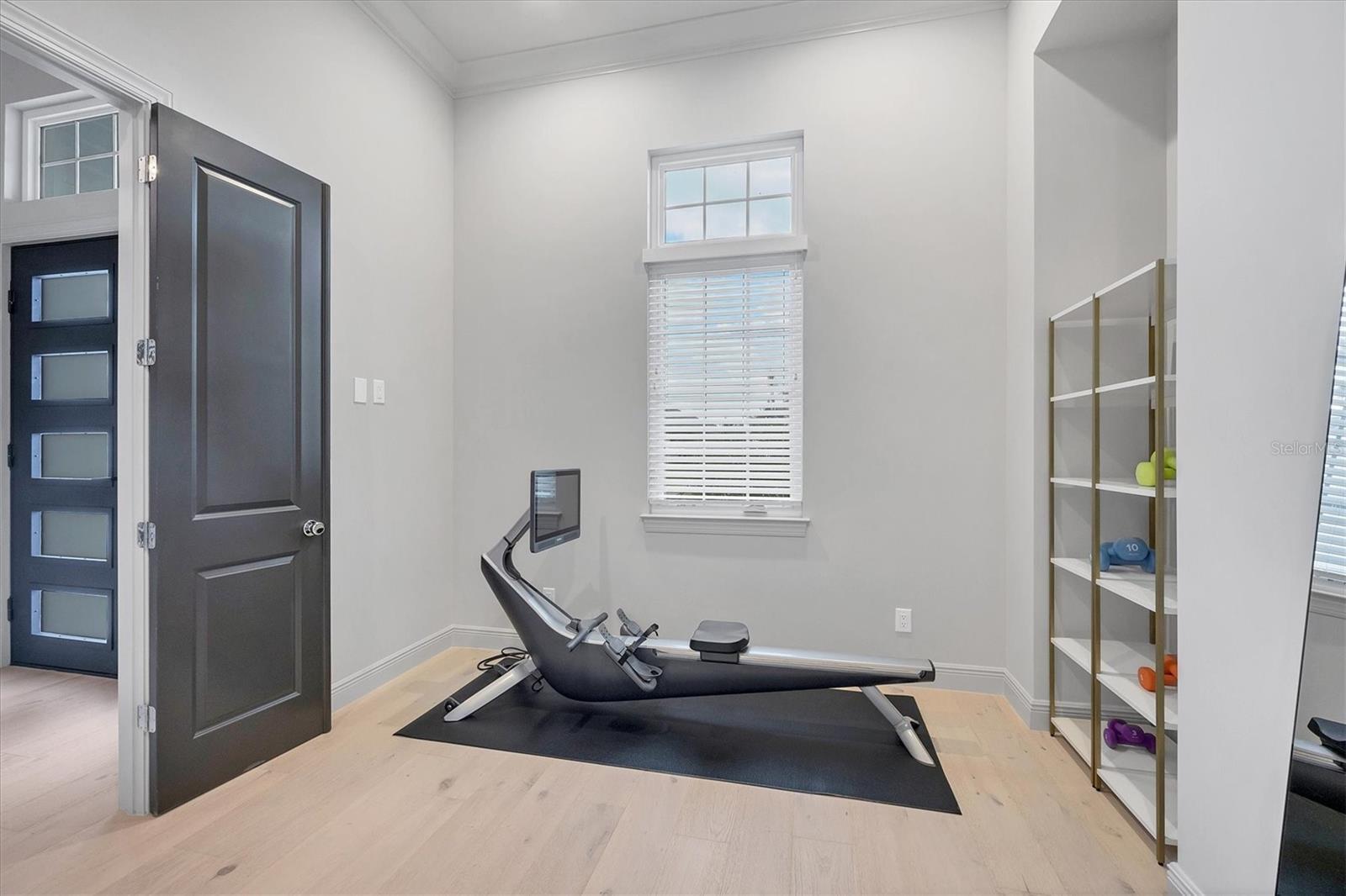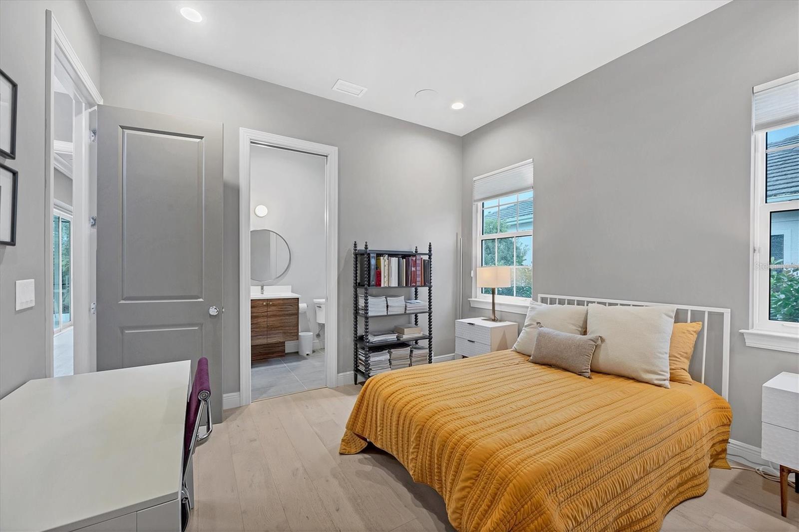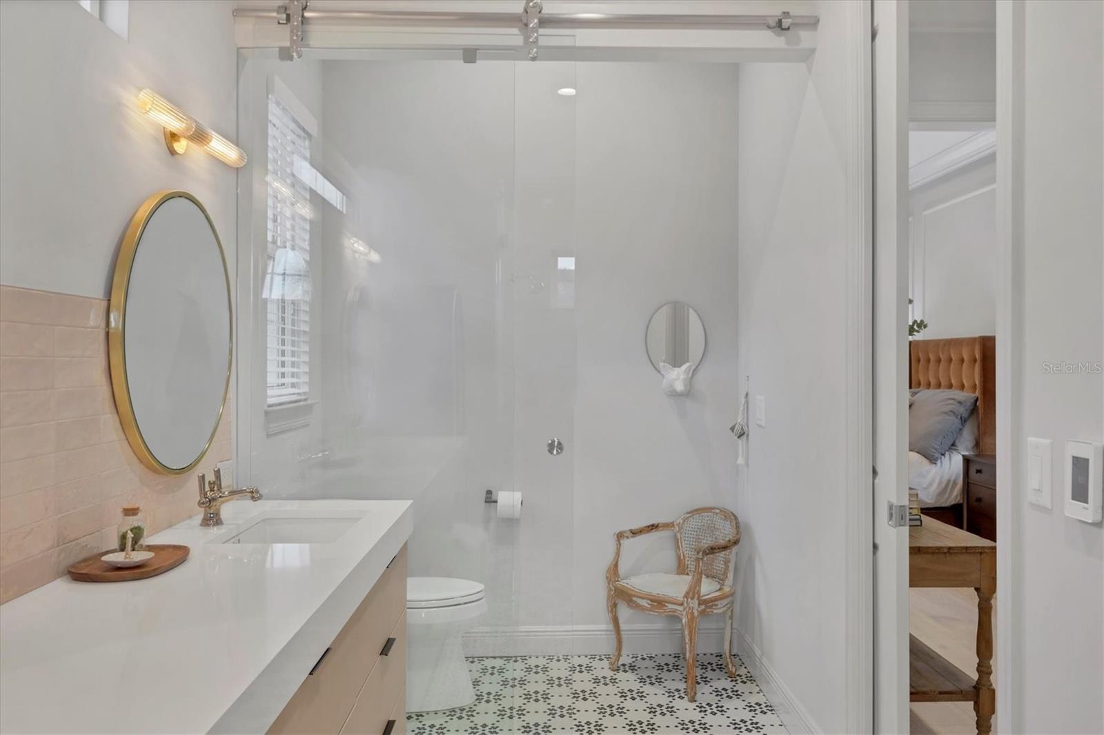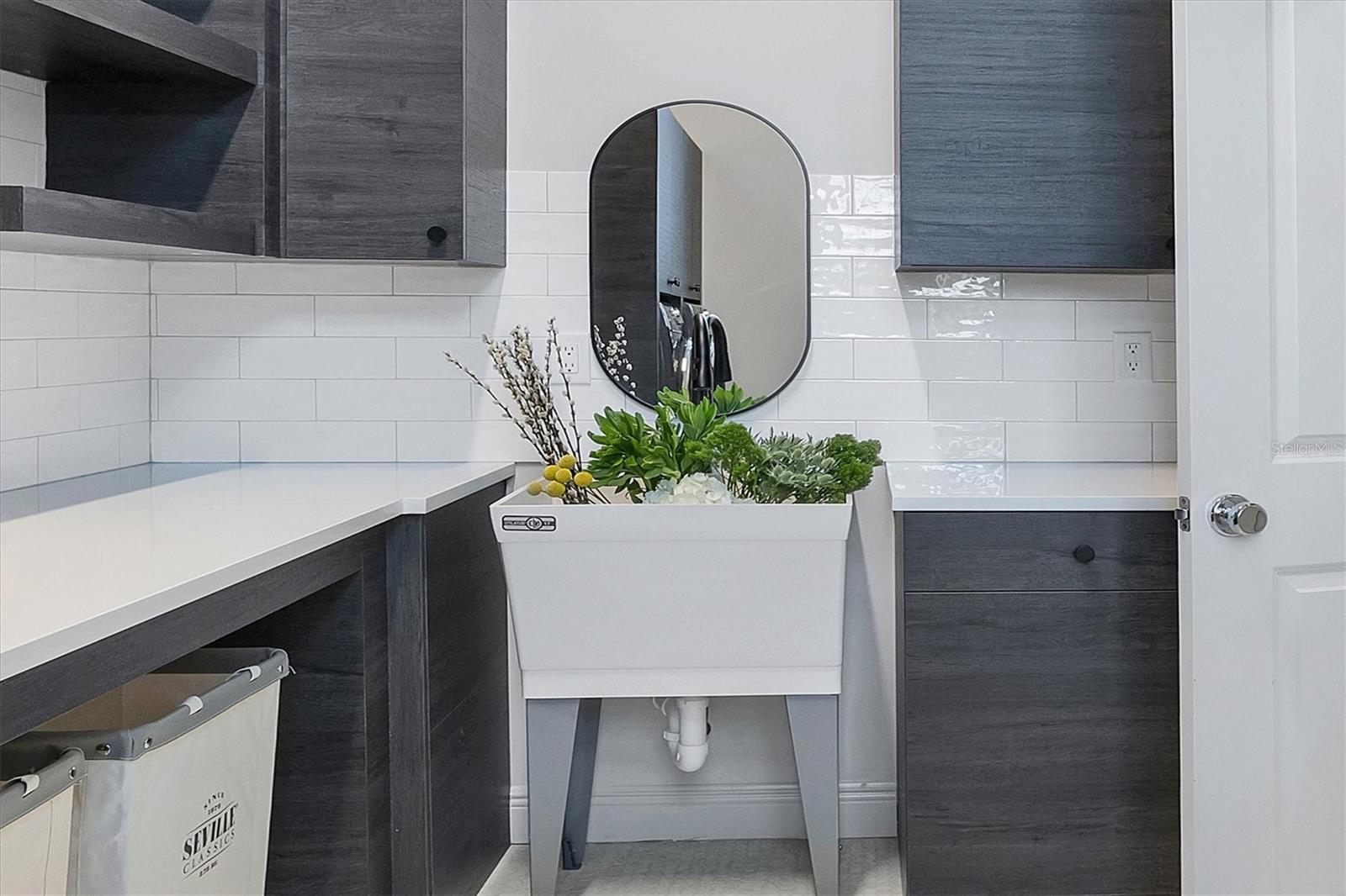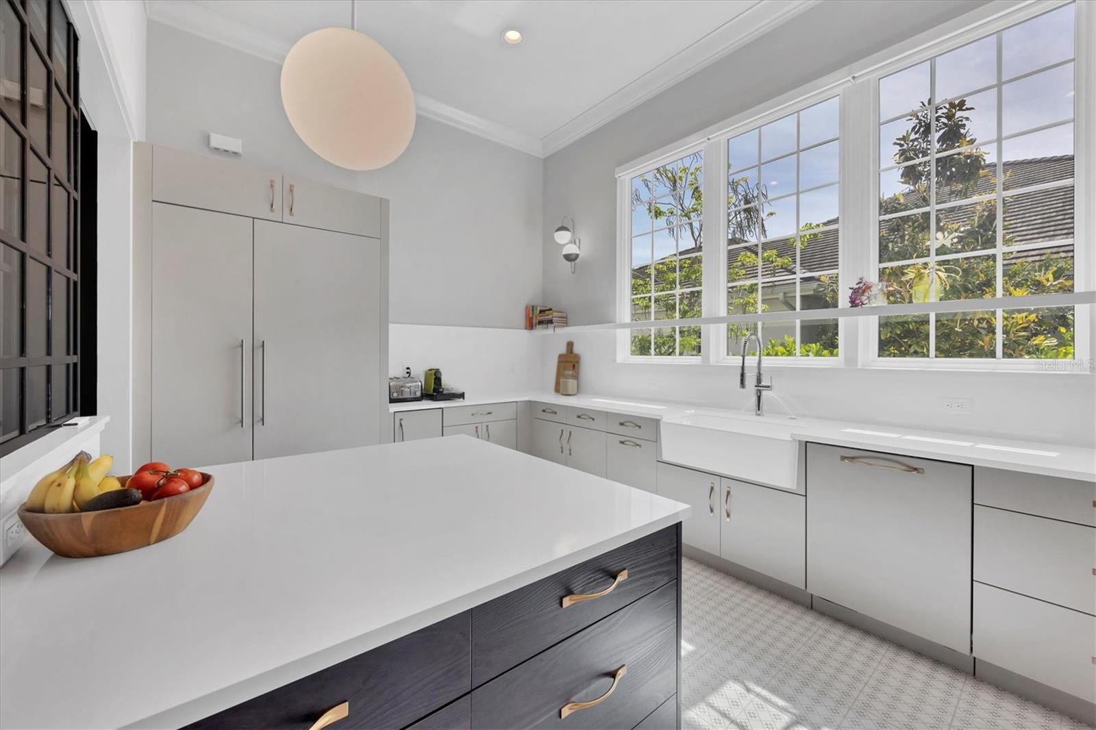 On a quiet preserve in the exclusive gated enclave of Country Club East, this exceptional John Cannon residence showcases refined craftsmanship, modern luxury, and seamless indoor-outdoor living. Designed for comfort and impact, the home features impact-rated windows and doors, a full-house generator, and an open layout that’s as functional as it is beautiful. Enter through 10-foot iron and glass double doors into a dramatic great room with whitewashed European oak flooring, soaring 13-foot ceilings with chevron wood detail, and a striking natural gas fireplace framed by Basalt volcanic tile and reclaimed wood mantle. A custom Whisperkool wine wall holds up to 130 bottles, accented by a chevron Stickwood backdrop. The main foyer features a hidden closet for bags and shoes. The chef’s kitchen boasts Sub-Zero and Wolf appliances, a six-burner range, built-in oven and microwave, quartz countertops, a prep island outfitted with pullout drawers, two for spices, a farmhouse sink and a standalone ice maker. An entertaining-sized island outside the kitchen features Sub-Zero beverage and wine coolers, an additional microwave and ample hidden storage. A spacious walk-in pantry is nearby and includes a built-in tall closet. The great room’s 10-foot sliders fold back into a disappearing corner and lead to the expansive lanai with a PebbleTec infinity-edge heated saltwater pool and spa, panoramic screen enclosure, Shell Lock pavers and a fully outfitted summer kitchen with Alfresco grill, Trailwinds hood, True ice machine, Uline refrigerator and Blanco sink. The private owner’s wing includes two walk-in closets, tray ceiling with crown molding, lanai access, and a spa-style bath with radiant heated floors and a steam shower. Two guest suites are positioned in separate wings, each with its full bath and walk-in closet, one with a private entrance and drop zone, the other with pool bath access. Additional living spaces include a bonus room with 10-foot sliders as a second disappearing corner as well as a study/exercise room with 15-foot ceilings. The laundry room features abundant cabinet storage, designer tile, sink and an additional 60 square feet of dedicated storage carved out behind two double doors. Adding even more value, the home is equipped with a whole-house water filtration system, designer lighting, automatic blinds and an oversized three-car garage. Every detail of this home has been thoughtfully curated for elevated living in one of Lakewood Ranch’s prestigious communities.