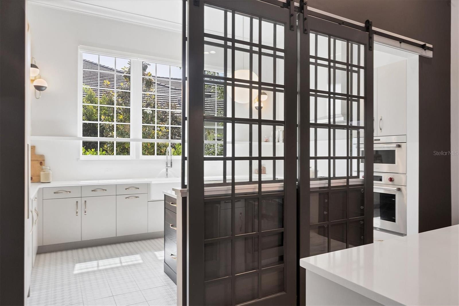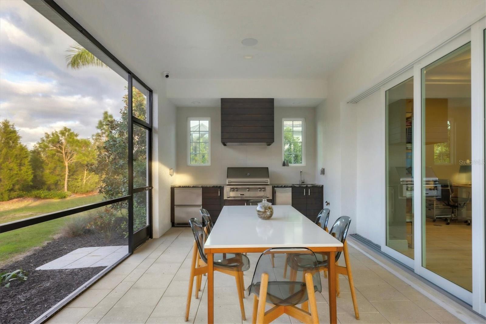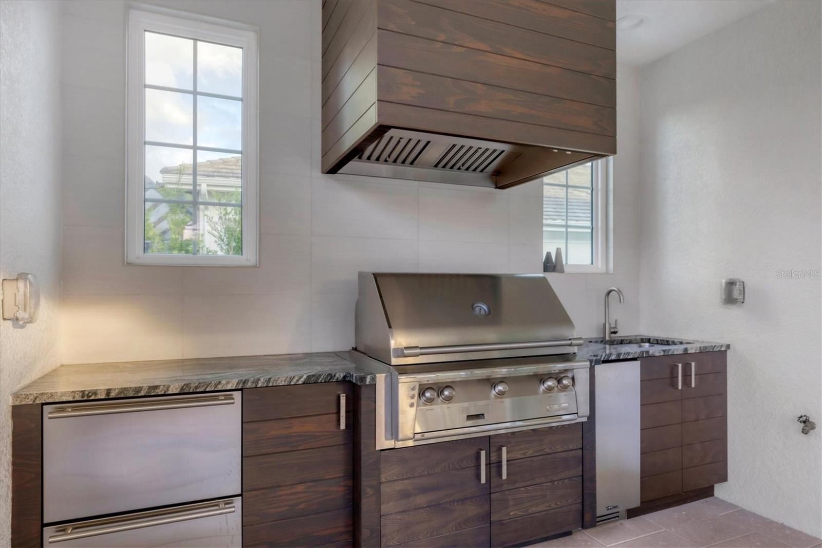 - Lighting, Outdoor Grill, Outdoor Kitchen, Sidewalk, Sliding Doors