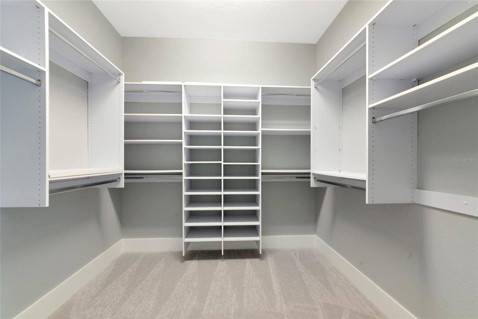 - High Ceilings, Open Floorplan, Primary Bedroom Main Floor, Solid Surface Counters, Solid Wood Cabinets, Split Bedroom, Stone Counters, Thermostat, Walk-In Closet(s), Window Treatments