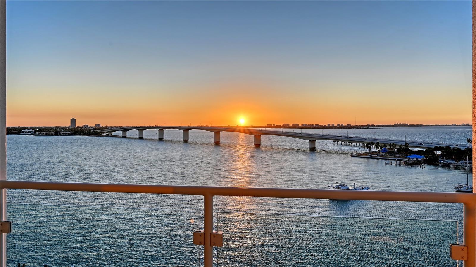 Occupying the entire eighth floor at Majestic Bay Sarasota, this rare three-bedroom plus media room residence defines the art of modern coastal living. Here, panoramic Sarasota Bay views, refined interiors, and the vibrancy of downtown come together in effortless harmony. Set within the exclusive Golden Gate Point neighborhood—just moments from downtown Sarasota, Bayfront Park, and St. Armands Circle—this home spans over 3,000 square feet of light-filled luxury. Walls of glass showcase sweeping vistas of the John Ringling Bridge, the shimmering bay, and Sarasota’s evolving skyline. Every room offers a front-row seat to the city’s natural beauty—from sunrise over the water to golden evening sunsets and the twinkle of downtown lights. A secure elevator opens directly into the residence foyer, where travertine floors, high ceilings, and soft neutral finishes set a tone of understated elegance. The open-concept great room connects seamlessly to the dining area and a bay-view terrace, creating an ideal layout for both relaxed living and sophisticated entertaining. The chef’s kitchen is appointed with rich wood cabinetry, granite countertops, a Wolf gas range, Sub-Zero refrigeration, built-in ovens, and an extended breakfast bar. A cozy morning nook with built-in workspace and east-facing windows captures gentle daylight—perfect for coffee and quiet starts. The primary suite anchors the northwest corner, offering privacy and stunning water views. French doors open to a private bayfront terrace, while the spacious walk-in closet and spa-inspired bath—with dual vanities, soaking tub, and glass-enclosed shower—create a true retreat. Two additional guest suites, each with en-suite baths, provide inviting accommodations, and a separate media room or office offers flexibility for today’s lifestyle. North- and south-facing terraces embrace Sarasota’s indoor-outdoor spirit, framing ever-changing bay and skyline views. The residence includes a private two-car garage and a deep-water dock with a 10,000-lb lift—ideal for exploring the Intracoastal Waterway or venturing into the Gulf of Mexico. Majestic Bay is an intimate, ten-residence community celebrated for its privacy and boutique lifestyle. Amenities include a heated bayfront pool and spa, fitness center, club room, and outdoor kitchen for complete peace of mind. Outside your door, experience the best of downtown Sarasota living: stroll to the Marina Jack waterfront, Selby Gardens, and The Bay Park, or bike across the Ringling Bridge to St. Armands Circle for shopping, dining, and beach days on Lido Key. The Van Wezel Performing Arts Hall, Sarasota Opera House, and world-class galleries are minutes away, while Siesta Key Beach and the Gulf’s turquoise waters await just beyond. This full-floor Majestic Bay residence offers an unparalleled combination of space, privacy, and panoramic views—a rare opportunity to own one of Sarasota’s most distinctive addresses and live immersed in the beauty of the bay.
