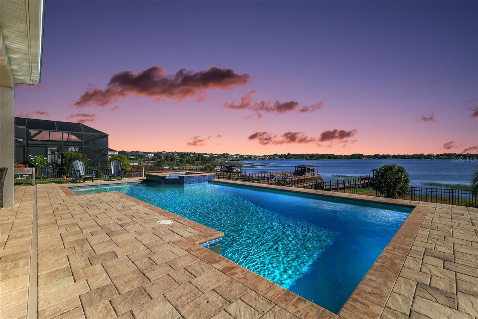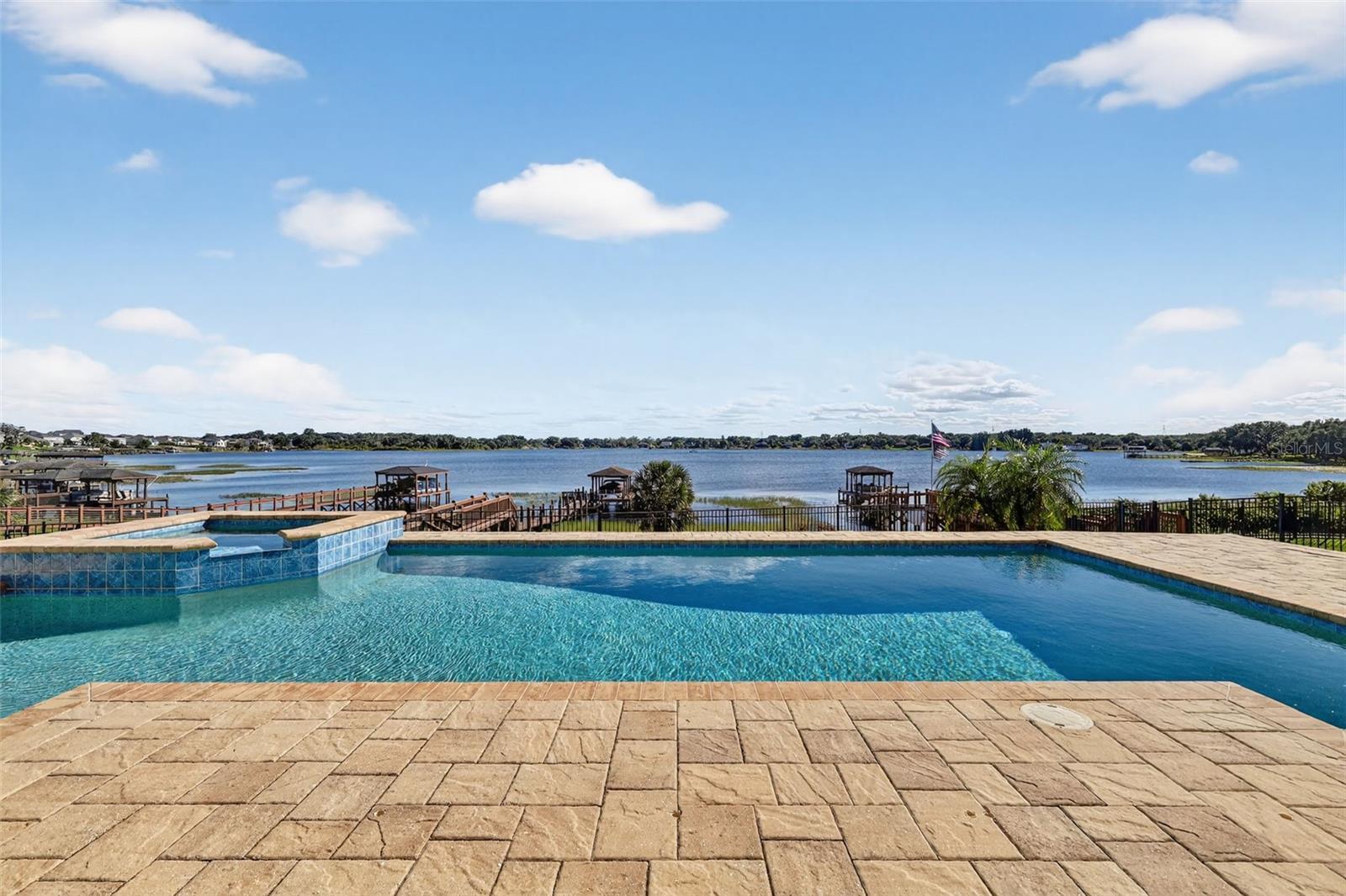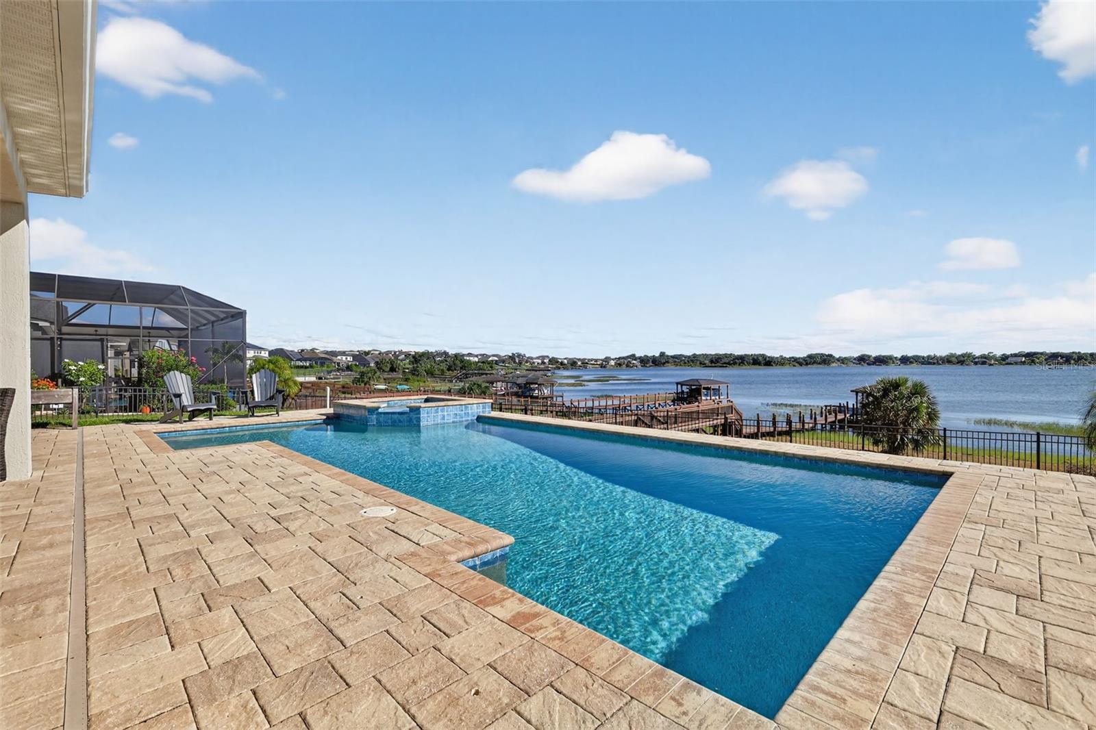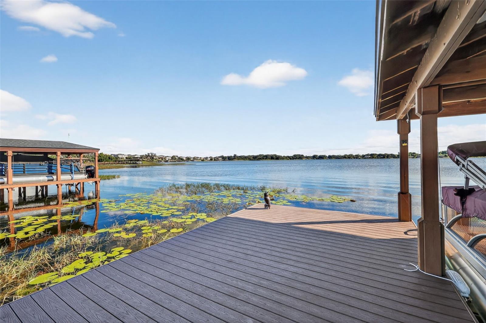 Luxury Lakefront Living Awaits! 5-Bedroom Home on John's Lake. Welcome to your dream home in the highly sought-after John's Lake Landing community. This beautifully maintained 5-bedroom, 5-bathroom David Weekley Wayland Model offers the perfect blend of luxury, comfort, and breathtaking lakefront living. From the moment you step inside, you'll be captivated by soaring ceilings, wood flooring, and a elegant warm and inviting atmosphere. The spacious living flows effortlessly into the gourmet eat-in kitchen, where stone countertops, stainless steel appliances, and panoramic lake views make everyday living and entertaining a joy. Enjoy the serenity of waterfront living with your own private pool, private dock and boat lift, perfect for sunset cruises or early morning fishing on John's Lake. The first-floor Primary Suite is a true retreat, featuring stunning lake views, an oversized walk-in closet, and a spa-inspired bathroom with a luxurious walk-in shower. Upstairs, you'll find four additional bedrooms, two full baths, and a large bonus/theater room, offering plenty of space for family, guests, or a home office setup. As part of this vibrant community, residents enjoy access to a resort-style pool, playground, and scenic lake frontage, all while being just minutes from downtown Clermont, Winter Garden, shopping, dining, and major roadways. You're also a short drive to Orlando's world-famous theme parks. Don't miss this rare opportunity to own a slice of paradise on John's Lake. Schedule your private showing today and experience lakefront luxury at its finest.