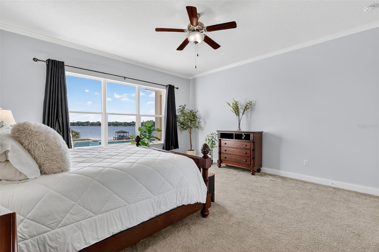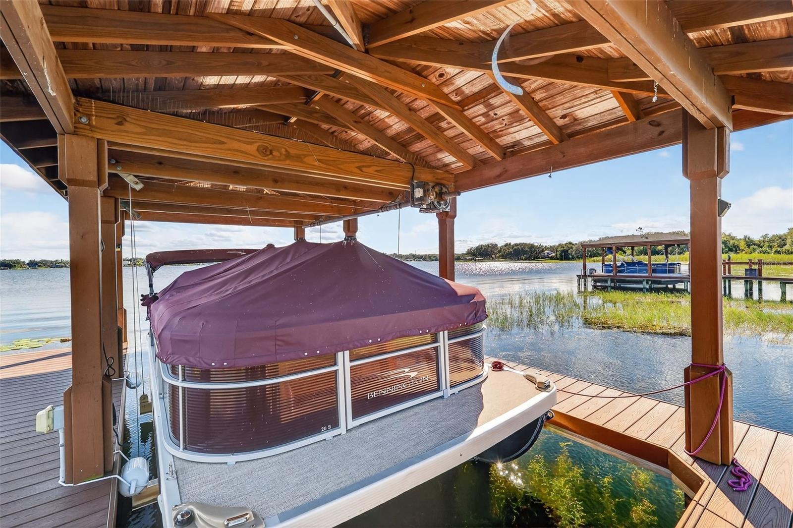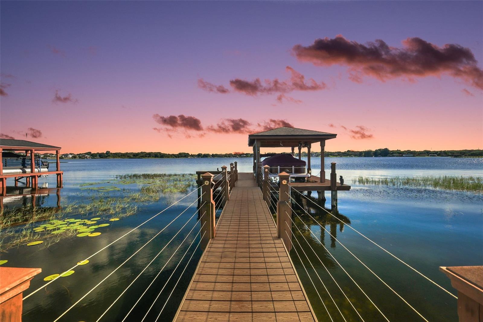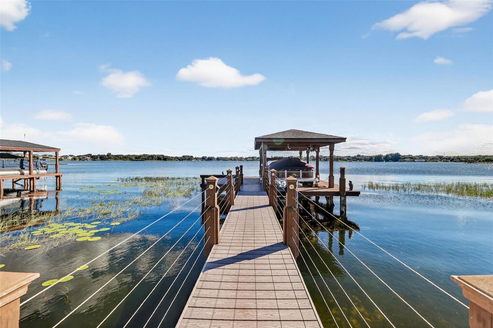 Luxury Lakefront Living Awaits! 5-Bedroom Home on John's Lake. Welcome to your dream home in the highly sought-after John's Lake Landing community. This beautifully maintained 5-bedroom, 5-bathroom David Weekley Wayland Model offers the perfect blend of luxury, comfort, and breathtaking lakefront living. From the moment you step inside, you'll be captivated by soaring ceilings, wood flooring, and a elegant warm and inviting atmosphere. The spacious living flows effortlessly into the gourmet eat-in kitchen, where stone countertops, stainless steel appliances, and panoramic lake views make everyday living and entertaining a joy. Enjoy the serenity of waterfront living with your own private pool, private dock and boat lift, perfect for sunset cruises or early morning fishing on John's Lake. The first-floor Primary Suite is a true retreat, featuring stunning lake views, an oversized walk-in closet, and a spa-inspired bathroom with a luxurious walk-in shower. Upstairs, you'll find four additional bedrooms, two full baths, and a large bonus/theater room, offering plenty of space for family, guests, or a home office setup. As part of this vibrant community, residents enjoy access to a resort-style pool, playground, and scenic lake frontage, all while being just minutes from downtown Clermont, Winter Garden, shopping, dining, and major roadways. You're also a short drive to Orlando's world-famous theme parks. Don't miss this rare opportunity to own a slice of paradise on John's Lake. Schedule your private showing today and experience lakefront luxury at its finest.