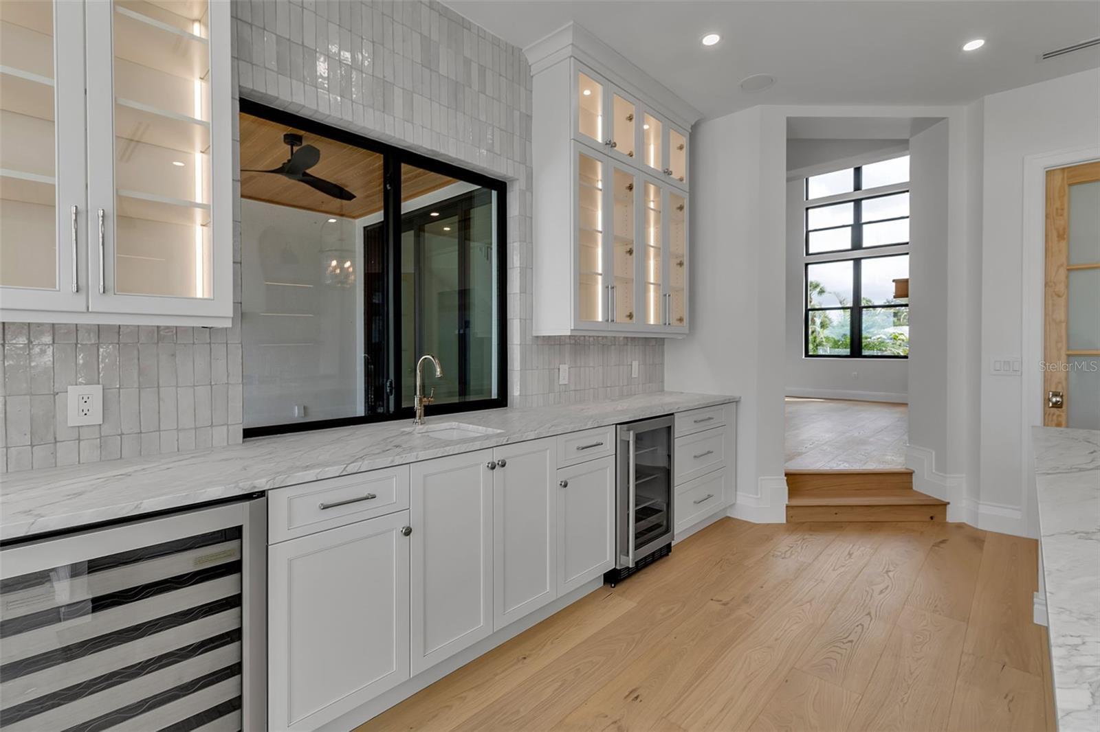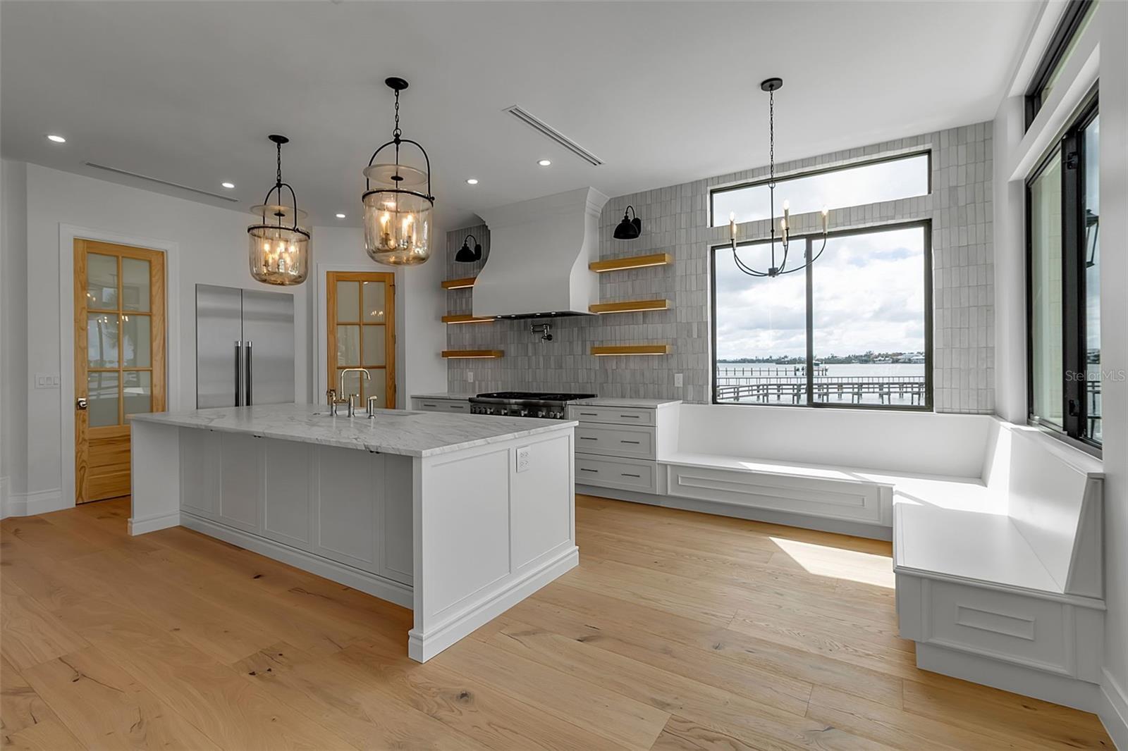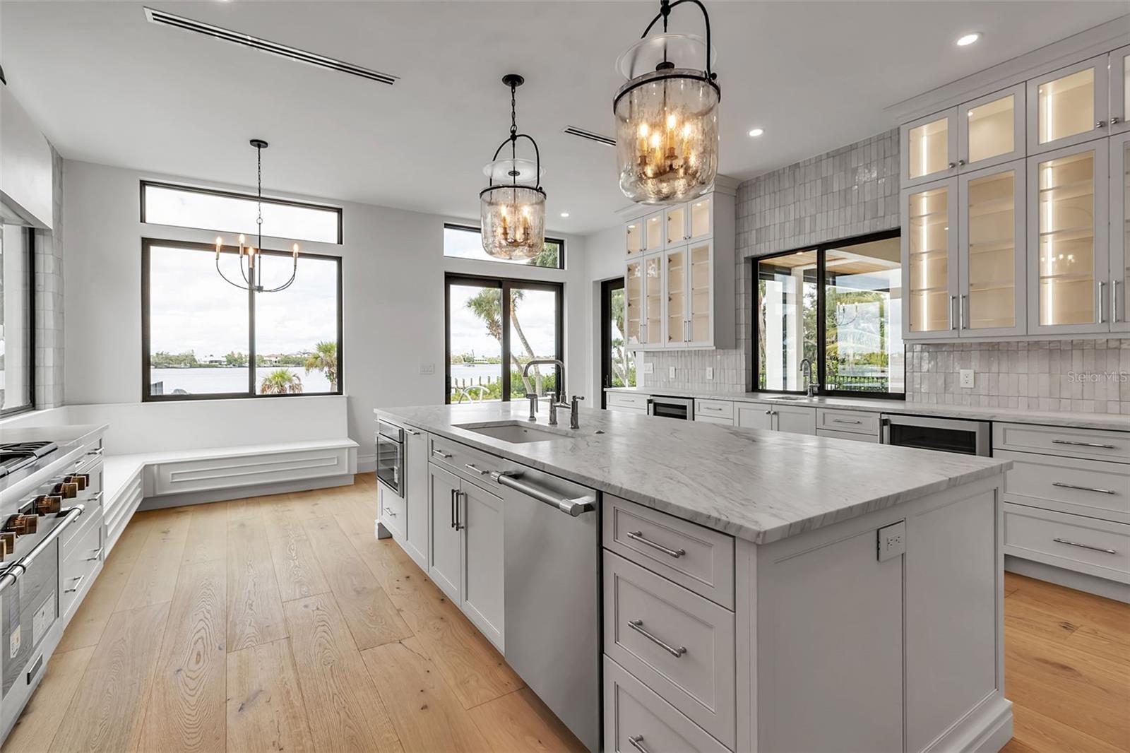 Newly Remodeled Waterfront Estate | 6 Beds | 5 Baths | Guest House | New Pool & Dock Experience refined coastal luxury in this gated, totally redesigned waterfront estate offering breathtaking, unobstructed views of Blackburn Bay. The main residence features 4 bedrooms and 3 baths, complemented by a 2-bedroom, 2-bath guest house—fully turnkey and beautifully furnished, complete with full kitchen, laundry, and carport with workspace. Every detail was thoughtfully curated throughout the redesign. The chef’s kitchen is a showpiece with Thermador premium appliances, 48-inch 6-burner range, custom range hood, two wine and beverage refrigerators, elegant banquette, and handmade tile backsplash. Interior highlights include a soaring 20-foot stone fireplace wall, curved staircase with custom railings, and light oak flooring throughout. The home showcases handcrafted natural stone finishes—marble, dolomite, quartzite, and travertine—in every room. Outdoors, enjoy resort-style living with a new 48-foot lap pool and spa, porcelain Tabby Oyster deck, lush landscaping, and a new 16,000-lb lift and dock with water, electric, and solar lighting—engineered for all tides and storms. Additional features include nine remote-controlled roll-down screens, a well-fed irrigation system, marine-grade exterior lighting, custom Kynar railings, and wood porch ceilings. This extraordinary property blends timeless design, top-quality materials, and unmatched waterfront living—ideally located near the world-class dining, shopping, and culture of downtown Sarasota and the charming coastal town of Venice. The perfect spot to enjoy breathtaking sunsets over Casey Key.