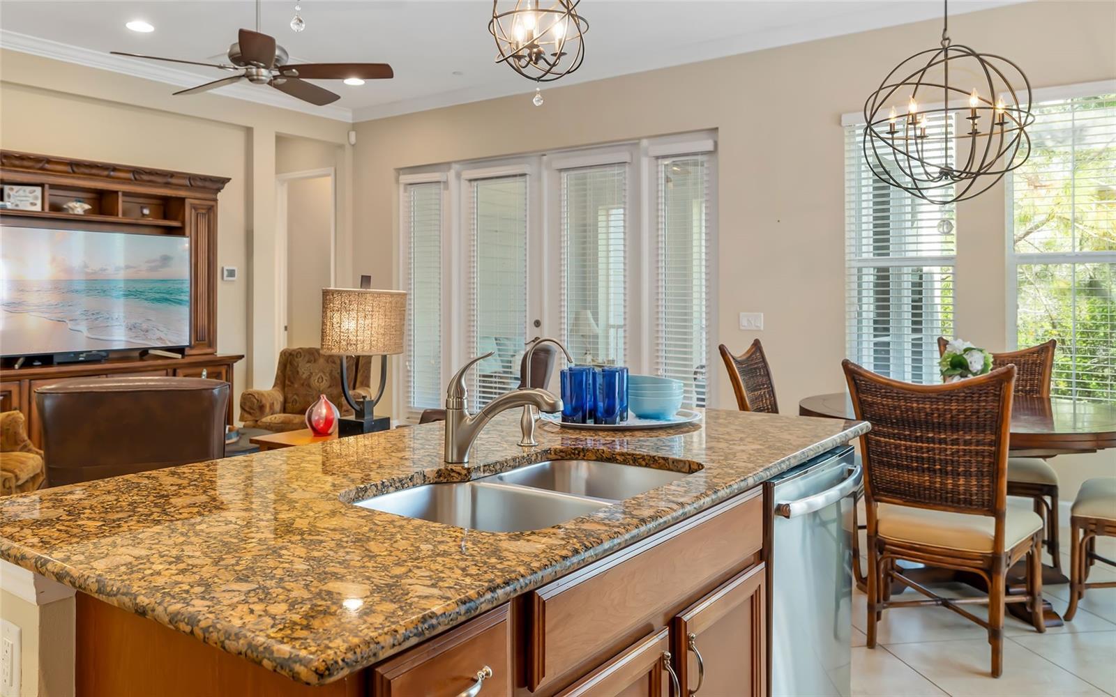 - Ceiling Fans(s), Crown Molding, Eat-in Kitchen, High Ceilings, Open Floorplan, Split Bedroom, Stone Counters, Walk-In Closet(s)