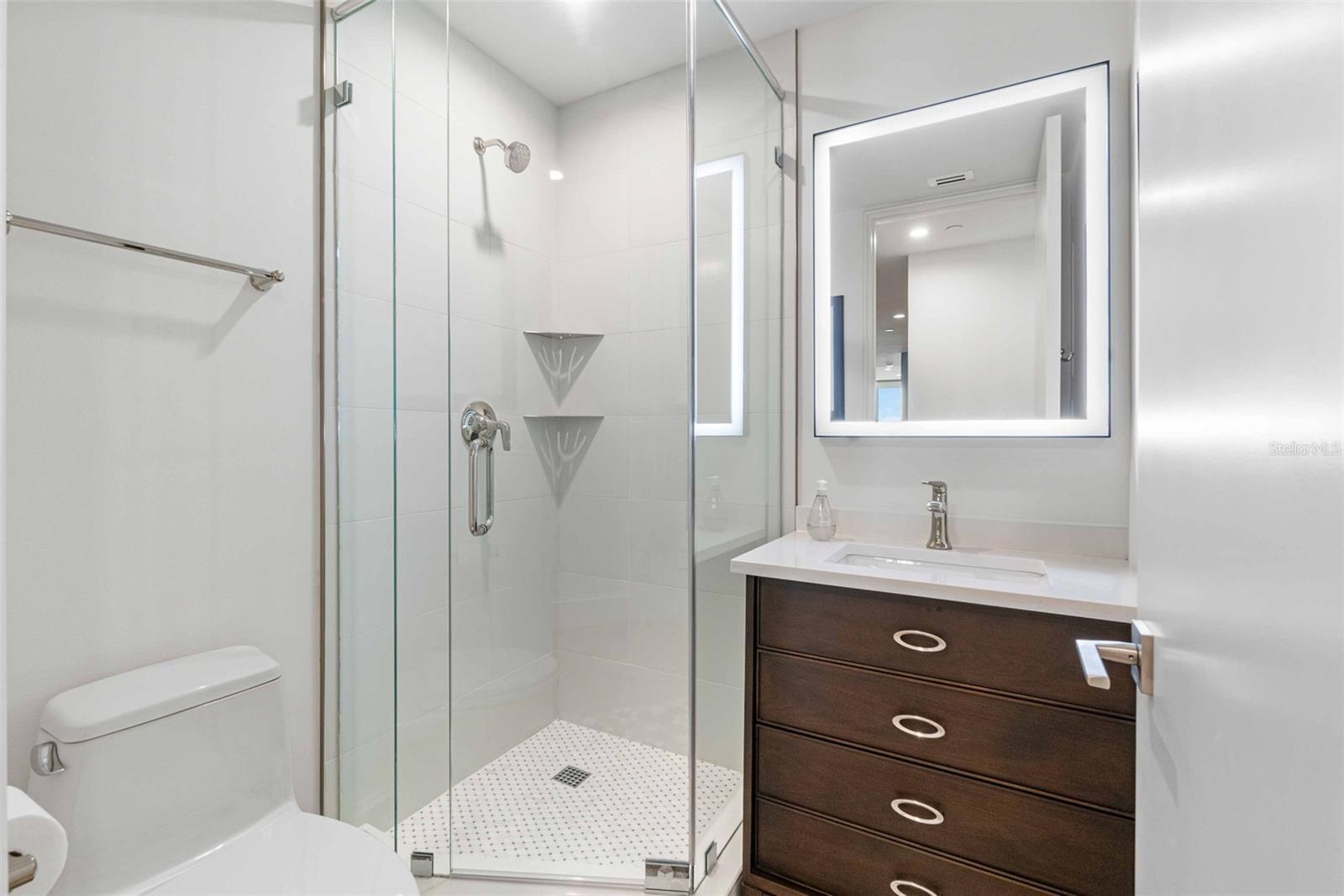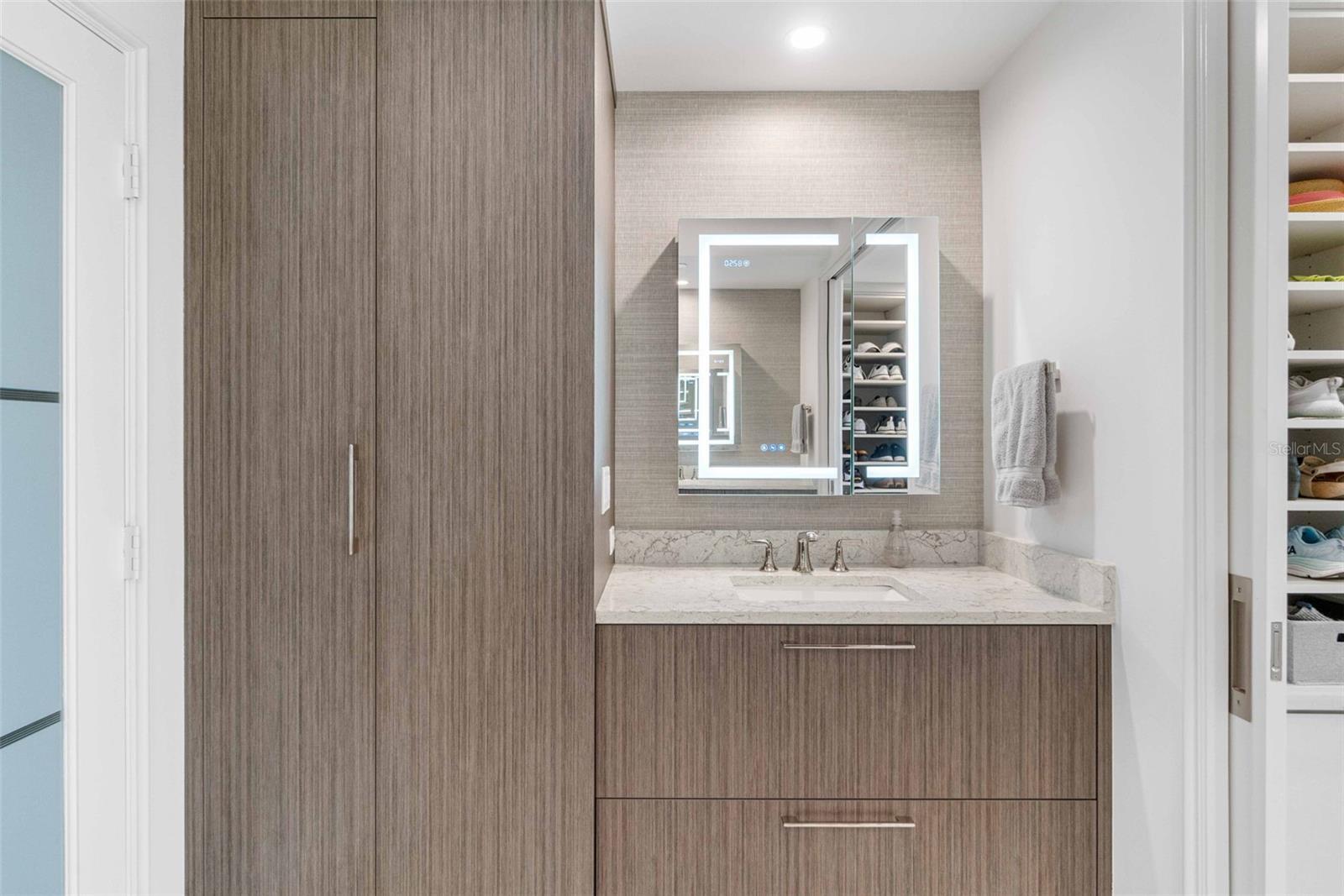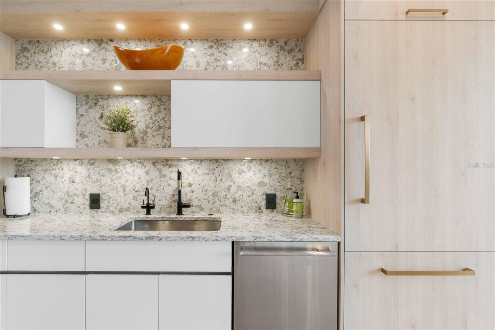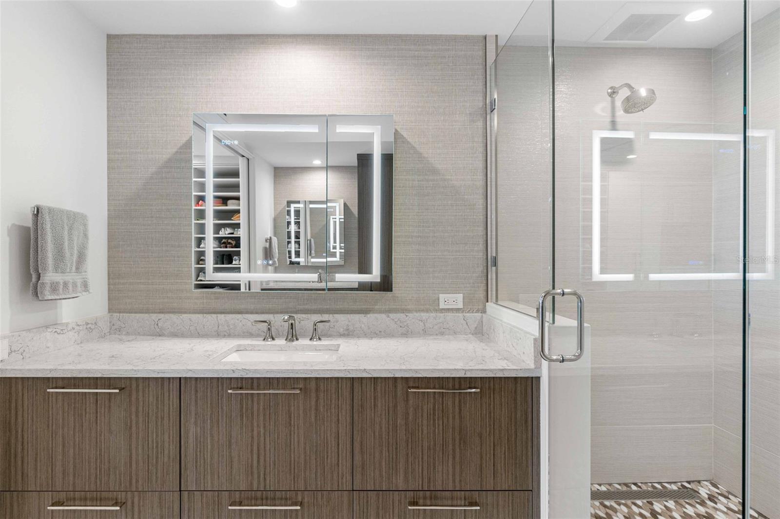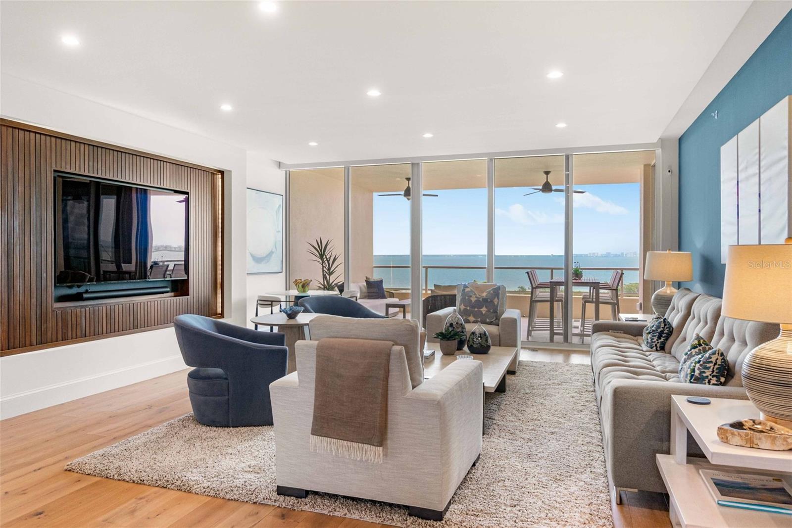 Be wowed by the $800,000 renovation of this stunning Cayman unit in coveted building 3 of the desirable gated Grand Bay community in Bay Isles on Longboat Key. Savor the mesmerizing full Sarasota Bay views, highlighted by boats arriving in the Marina, the manicured grounds of the Longboat Key Club Blue course 9th hole, and downtown Sarasota in the distance. Discerning buyers will appreciate the quality, attention to detail and expense evident in this must-see renovation by Renovation SRQ. Demolished to the studs in 2021, this re-designed home offers an open floor plan, where kitchen and dining areas flowing seamlessly. The new design, coupled with artful use of captivating color choices, creates a wonderful, soothing space on trend with modern lifestyle. Included in the renovation are hardwood composite floors in all rooms (aside from bedrooms); a relocated kitchen with new cabinetry, counters, back splash, Thermador appliances, plumbing/piping/ and electric wiring; a new Wet Bar with sink/fridge and freezer; Lutron Caseta lighting with cove lighting in the dining room, gorgeous lighting fixtures and lighting scenes throughout. Lutron Shades on East side of the unit and black out shades in the primary bedroom provide privacy and comfort throughout the day. The stylish dressing area in the primary bedroom has been substantially enlarged and intelligently outfitted with new cabinetry, opening into a spacious bath, with dual vanities, shower and filtered outside light. Extra sound-absorbing insulation was installed in the walls abutting neighbors. The 3rd bedroom presently is used as the office/den with glass doors and privacy shades. Balcony doors were completely rebuilt with new screens that slide easily and seal tightly. New beautiful contemporary floor tiles were installed on both balconies. One parking space is conveniently located next to elevator access and has no neighboring car. This 2nd floor unit allows for easy access for pets and to the street. Residents of Grand Bay are invited to enjoy an exciting host of amenities, including 24/7 guard gates as you enter both Bay Isles and Grand Bay, a clubhouse, two community pools and spas, a large fitness center with saunas and Har-Tru tennis courts. Enjoy the conveniences of Bay Isles, with its miles of walking paths, and nearby shopping. And relax at the private, gated Bay Isles Beach Club directly on the Gulf of Mexico, with its locker rooms, barbecues, volleyball nets, covered picnic areas and an expanse of sandy white beach shared only with other Bay Isles owners. Do not miss this opportunity --begin your Longboat lifestyle today.