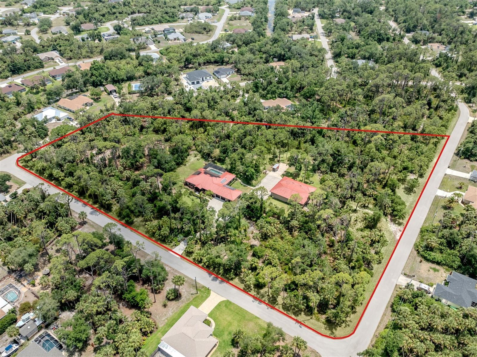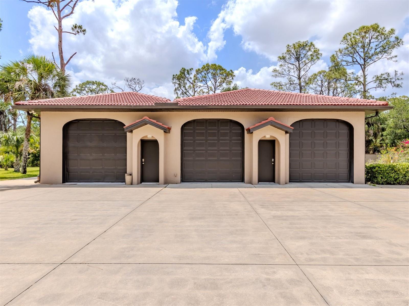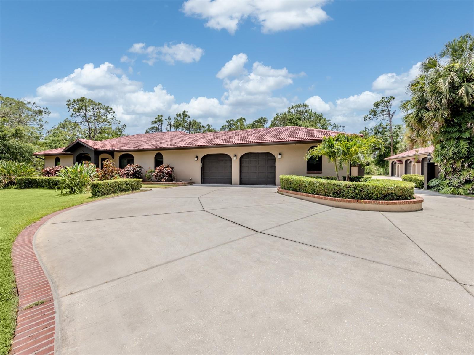Under contract-accepting backup offers. BRING YOUR RV, BOATS, BIG TOYS, CLASSIC CARS and more! You have room for it all on this amazing 5+ acre property. THE ULTIMATE LIFESTYLE ESTATE in the heart of North Port, Florida! One of the most incredible properties in North Port, Florida is now waiting for you! Splendid privacy and park like 5.24 acres surrounds this wonderful home and amazing 50' x 60', 3 bay garage & shop with RV height doors, car lift and 400 AMP service. Weather you are an automobile enthusiast, contractor looking for a huge shop and garage with room to expand, RV owners, nature/garden lovers or just want extra space and privacy that is convenient to the heart of North Port, this is a one-of-a-kind property you will want to see for yourself! Let's start with the nearly 3,000 sq.ft. beautifully update home showcasing 3 bedrooms, gourmet kitchen, dinette and separate formal dining area. An enormous great room/family room is the heart of activities from tv lounge to game room and bar. A lovely sitting area is off the kitchen with a wonderful office/library with custom built-ins. The owner's retreat with on suite and walk-in closet offers french doors to the pool area. The attached 2 plus car garage is air conditioned as is the attached bonus room perfect for a home gym, teen game room, office and more. The property offers an array of incredible extras from a full 50 AMP RV hookup plus water station all built on a large 6" thick concrete pad. The entire property has water stations with hose hookups for gardening, citrus tree plantings and horticultural pursuits. The wonderful private yard offers irrigation throughout. New fencing on the side-yard is great for pets and children at play. The large and very private pool area has an outdoor kitchen, plus outdoor TV and relaxation area under roof. All of this area is enhanced by pull down storm shutters that compliment the home's nearly new hurricane impact windows and doors! Including sliders! A full house Kohler generator completes the peace of mind during inclement weather. Top it off with a freshly painted exterior for both the house, garage, plus yard walls! A great list of upgrades is available through your realtor upon request. Take time to see this gorgeous property today.