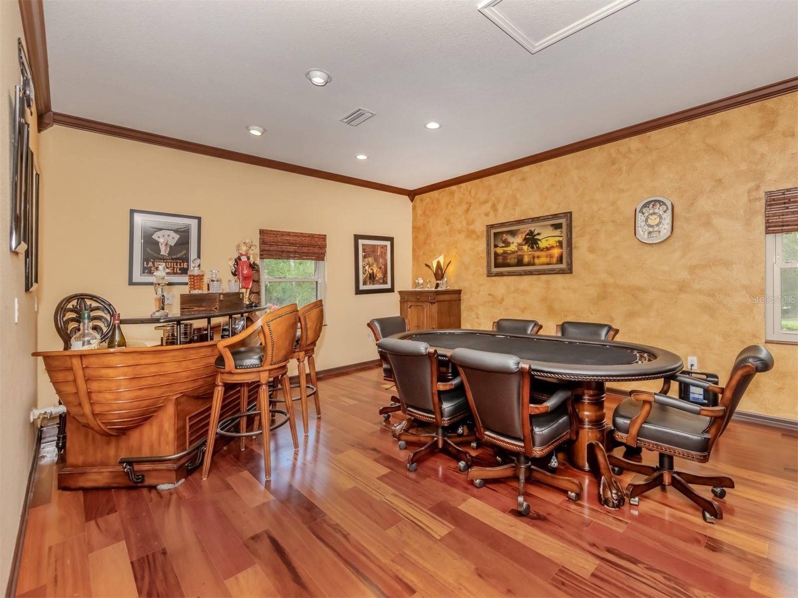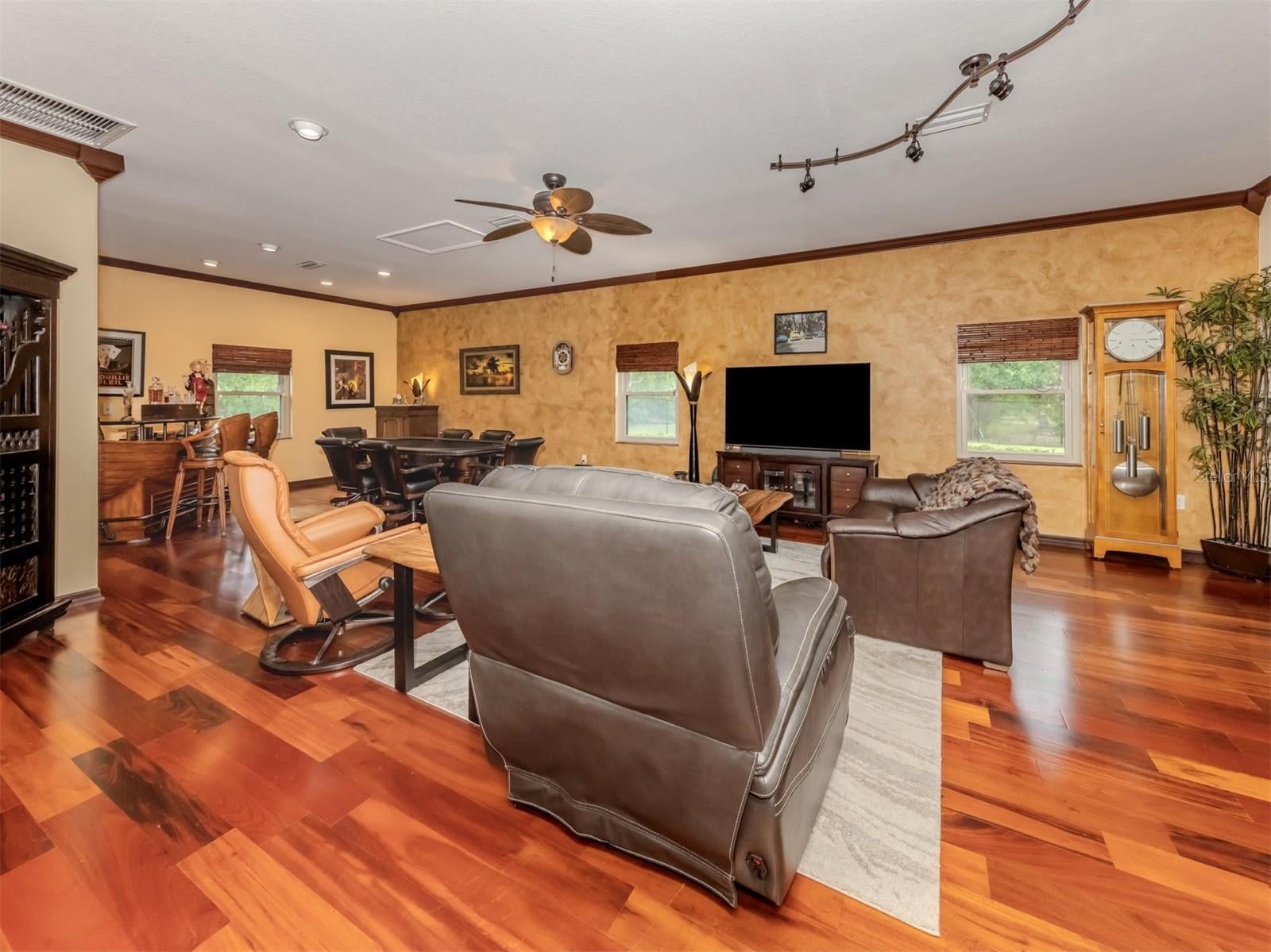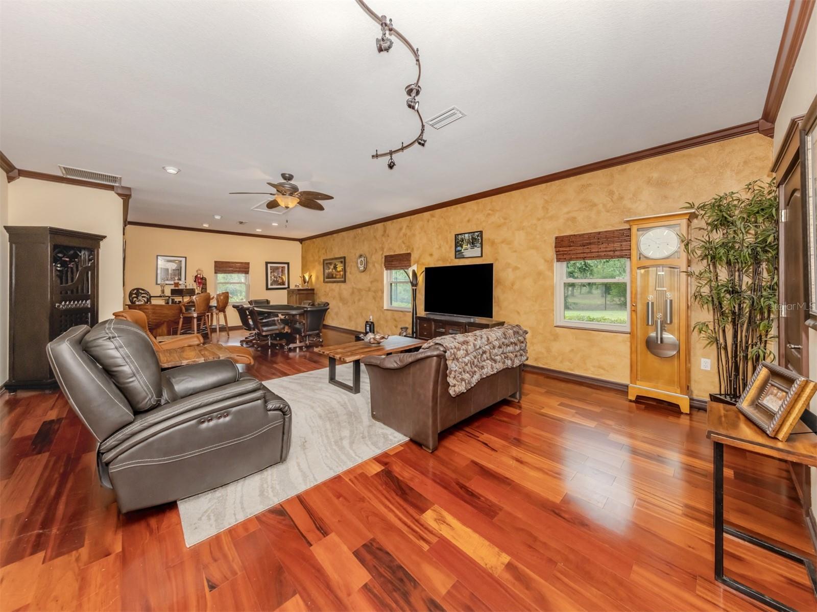 - Ceiling Fans(s), Crown Molding, Eat-in Kitchen, Primary Bedroom Main Floor, Solid Surface Counters, Solid Wood Cabinets, Walk-In Closet(s), Window Treatments