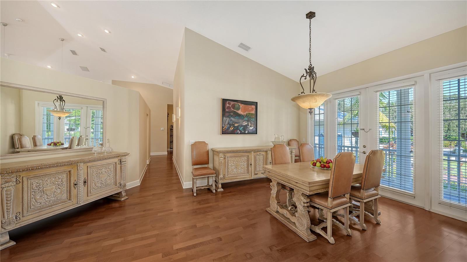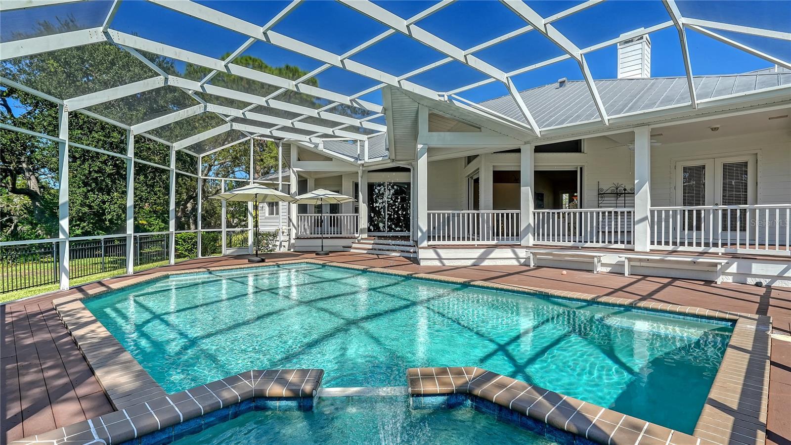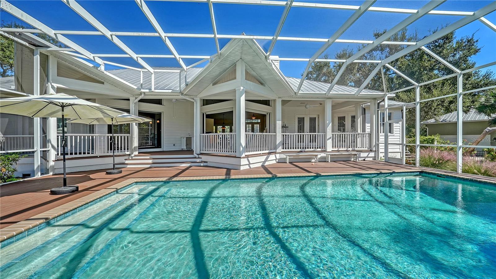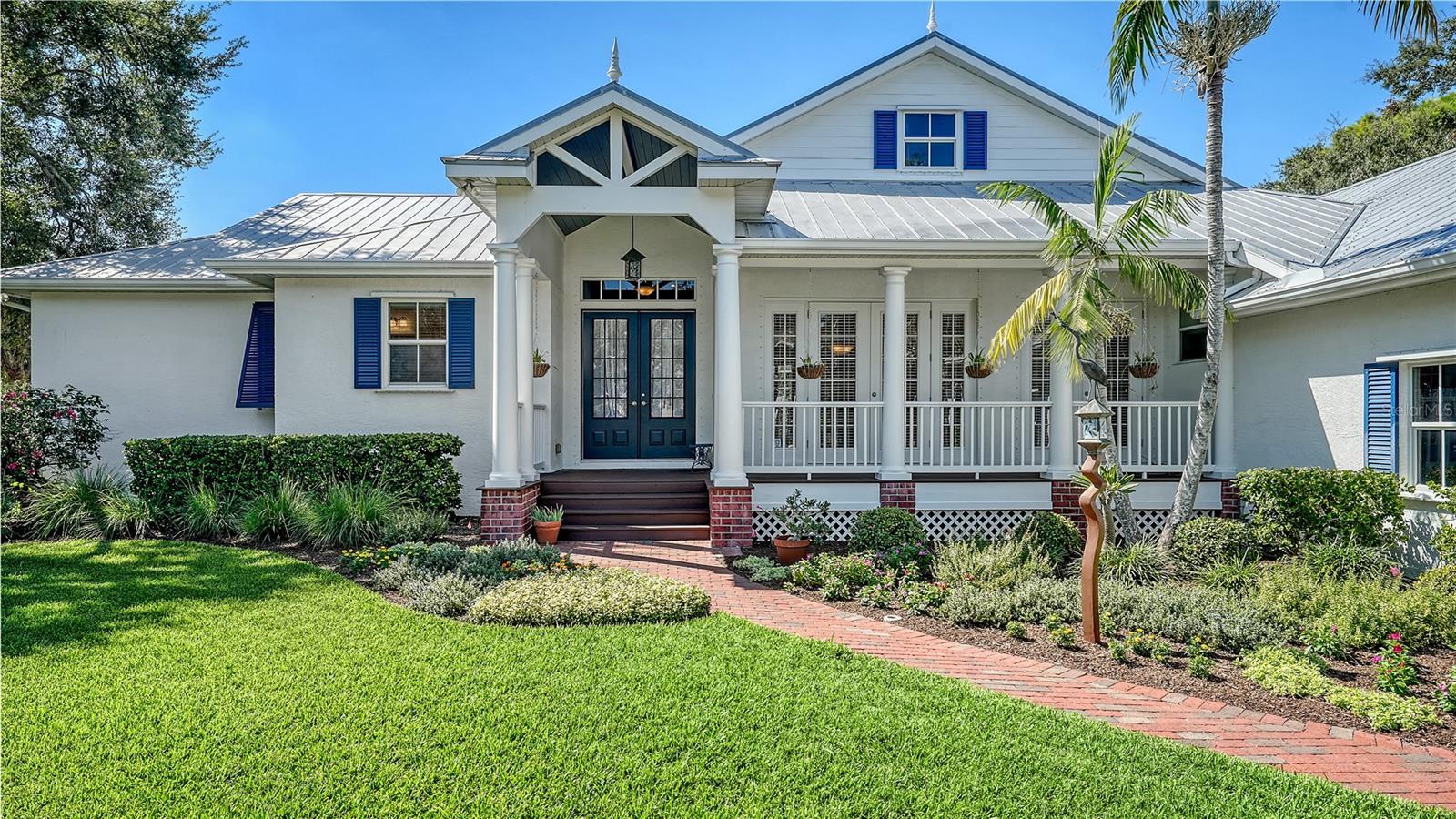 Coastal Elegance on Phillippi Creek! Custom-built by Coachman Homes, this exceptional waterfront residence blends timeless architecture, privacy, and an ideal Sarasota location. Set within an intimate gated enclave of just nine homes, the property spans nearly three-quarters of an acre and offers over 190 feet of private frontage on the scenic Phillippi Creek—an idyllic backdrop for daily living and entertaining. Notably, this house structure has had no history of water intrusion from any storm or hurricane. Inside, approximately 3,500 square feet of living space unfolds in an open, light-filled layout with four bedrooms, a family room, and a dedicated office. A columned front porch and double-door entry lead into a grand living room featuring vaulted ceilings, a cultured stone fireplace, and a wall of glass doors that open to the screened lanai and pool. The adjacent dining room creates an elegant setting for gatherings, while the open-concept kitchen connects seamlessly to the family and casual dining areas—each overlooking the outdoor living space. The chef’s kitchen features custom cabinetry with under-cabinet lighting, granite countertops, tile backsplash, breakfast bar, and stainless-steel appliances. A split-bedroom plan ensures privacy. The primary suite is a serene retreat with French doors to the deck, a large walk-in closet, and a spa-style bathroom complete with dual vanities, walk-in shower, soaking tub, and private water closet. A flexible office adjoins the suite, ideal for working from home or quiet reading. On the opposite wing, three guest bedrooms share two full baths, offering comfort for family and visitors alike. Additional features include Lauzon hardwood floors throughout, recessed lighting, plantation blinds, hurricane shutters, two-zone A/C, re-screened pool cage (2024), a spacious laundry with newer washer and dryer, and a three-car garage with abundant storage. Outdoor living takes full advantage of Sarasota’s year-round sunshine. A large, screened lanai with swimming pool, spa, and waterfall fountain invites relaxation, while the full-length covered deck—with outdoor kitchen—encourages al fresco dining. Lush tropical landscaping guarantees privacy, and the large fenced portion of the backyard offers space for pets and play. A brick walkway leads to the private dock, equipped with water and electric. With only two bridges to Roberts Bay, boaters enjoy quick access to the Intracoastal Waterway and Gulf of Mexico. This residence combines the serenity of a secluded estate with unmatched convenience—just minutes to Siesta Key Beach, Downtown Sarasota, and The Bay Park. Fine dining, boutique shopping, cultural venues, and waterfront recreation are all within easy reach. In this rare nine-home community, you’ll experience the perfect balance of coastal tranquility and city sophistication—a true Sarasota lifestyle.