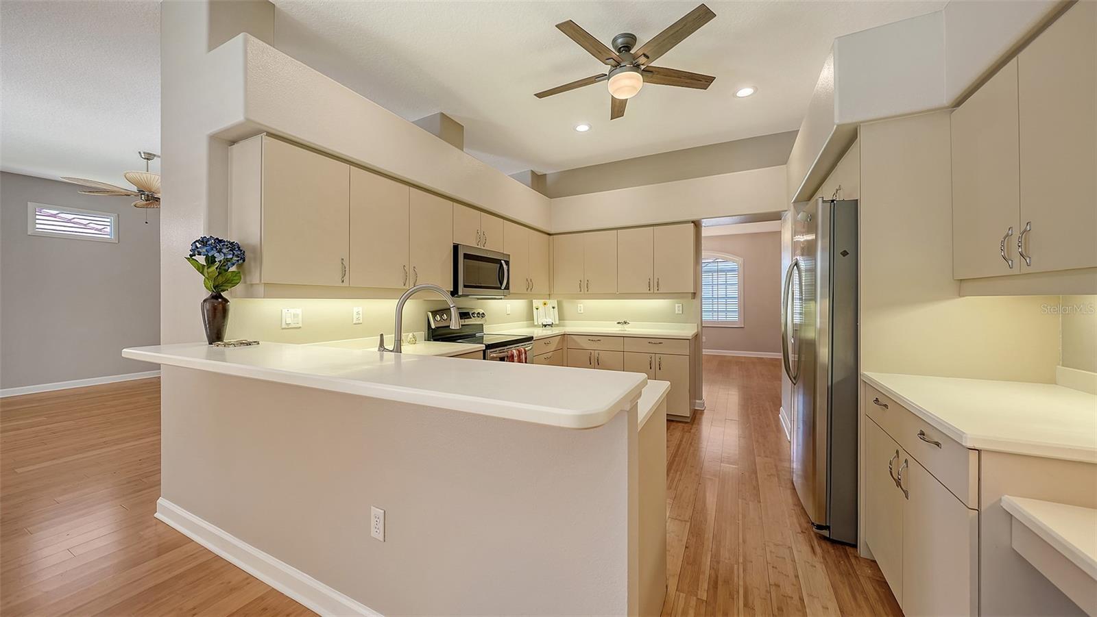 This beautifully maintained two-bedroom two bath home with a large den offers style, comfort and exceptional value at $789900 - the best in the community! Inside you will find bamboo flooring throughout, plantation shutters, and fresh neutral paint, creating a light and timeless feel. The spacious open floor plan is ideal for both relaxing and entertaining, while the large den offers flexibility for a home office, media room or guest space. Step outside to enjoy your screened lanai and private pool, perfect for year-round Florida living. The oversized two car garage includes extended space for extra storage or a small workshop area. Flood insurance not required. Located in Laurel Oak Estates a prestigious 813-acre gated community with 405 homes 24/7 security and on-site management. Residents enjoy both peace of mind and resort-style surroundings. The community's convenient location provides easy access to I-75, shopping, dining, hospitals, downtown Sarasota, the beaches and the airport. This home is vacant and move-in ready-just bring your personal touches and start enjoying the Laurel Oak lifestyle right away! Laurel Oak Golf and Country Club membership is Optional.