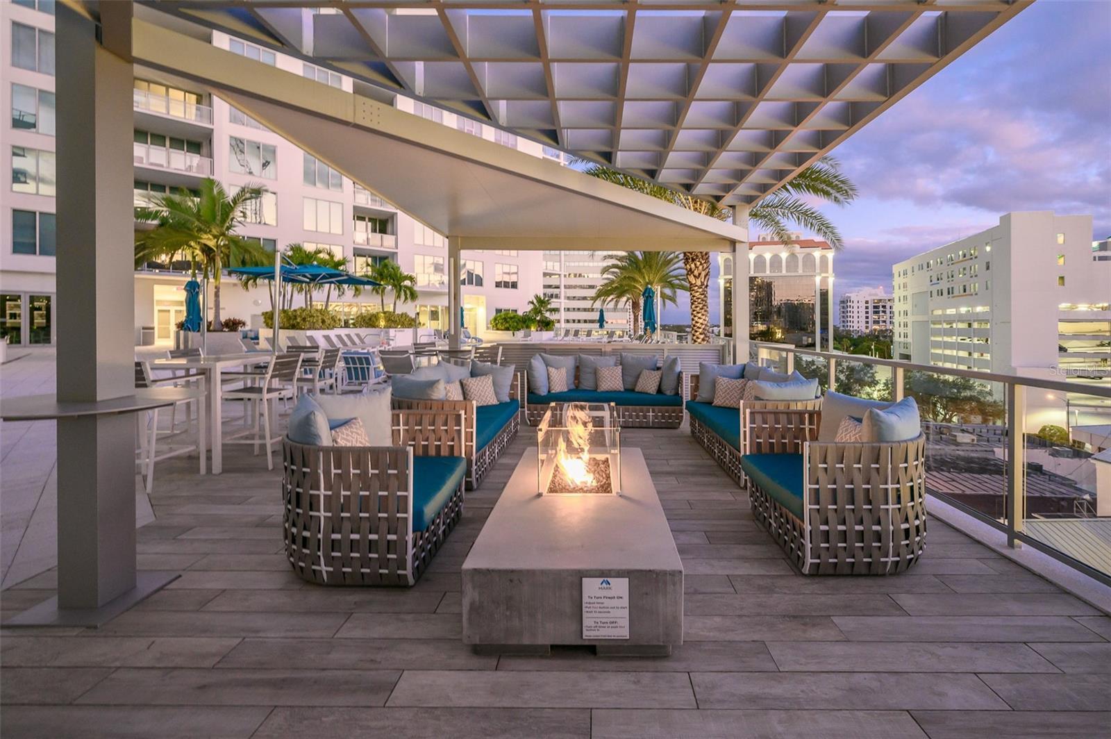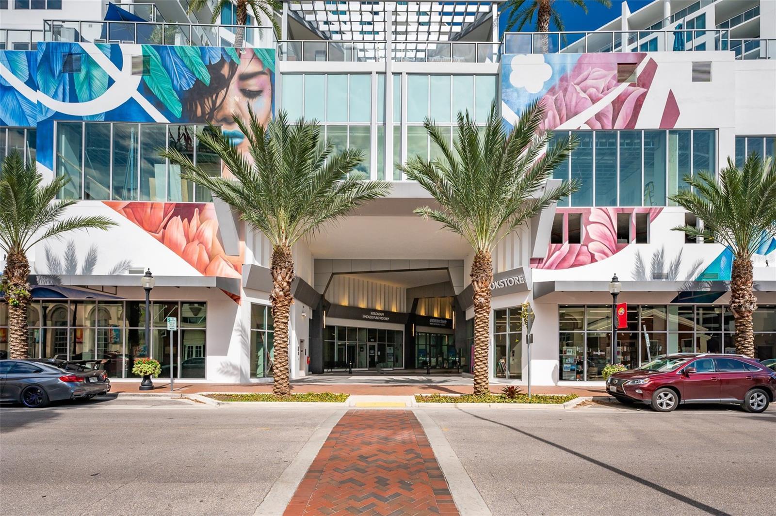 Experience an elevated expression of downtown Sarasota luxury at Residence 1013 in Mark Sarasota, where contemporary elegance meets resort-style sophistication. Positioned on the sought-after 10th floor, regarded as one of the building’s most distinguished residential levels, this residence offers a refined sense of exclusivity shared by its discerning residents. In the heart of Sarasota’s dynamic cultural and coastal district, this exceptional home embodies modern design, subtle comfort, and the vibrant convenience of downtown living. The split floor plan features two bedrooms plus a den and two-and-a-half baths, spanning 1,577 heated square feet and 1,711 total square feet, including a covered terrace, optimally square in design, providing defined depth and width. The expansive outdoor living space feels secluded yet connected, among lush treetops with park-like views of Smithsonian-registered Mermaid Fountain in nearby Paul Thorpe Park, formerly known as Pineapple Park, offering shaded seating. Enjoy distant southern city vistas, westerly views of the tropical pool deck and glowing Sarasota Bay sunsets. The open-concept layout highlights soaring ceilings, floor-to-ceiling glass, 10-foot ceilings, distinctive, architectural grand-format porcelain tile flooring with a textured finish and exquisite designer finishes. A gourmet kitchen showcases an upgraded induction cooktop for fast, energy efficient cooking, imported custom cabinetry, stone countertops, a bespoke backsplash and premium stainless steel appliances, flowing effortlessly into radiant living and dining areas ideal for entertaining or quiet reflection. The southern-facing living room enjoys tranquil natural light without the need for shades and each bedroom adorns top-tier Silhouette blinds. The south and southwest orientation provides privacy, protection from wind and rain, as well as a quiet and serene ambiance. The primary en suite serves as a peaceful sanctuary with a spa-inspired bath, electrified mirrors with custom lighting, a spacious walk-in closet and a door that opens to direct terrace access. Two deeded VIP parking spaces, fully covered, centrally located, protected from the elements and are located just steps from the elevator. A generous climate-controlled storage unit in a secure room, where packages are safely held, adds exceptional convenience only steps down the hall. The fifth-floor amenity deck crowns Mark Sarasota with resort-style indulgence: a heated saltwater infinity pool, spa, fire-pit lounge, grilling pavilion, bar, club room with catering kitchen, billiards, newsroom, and a premier fitness center with yoga and spin studios equipped for virtual workouts. Beyond your door, experience the best of downtown Sarasota, from fine dining at Hyde Park Steakhouse, State Street Eating House, for more casual fare, Boca or Besos for tapas, to evenings at Sugar, Sarasota’s glamorous piano and champagne bar. Explore nearby luxury car dealership, galleries, salons, smoothies at Toastique, Bodybar Pilates and Ride Cycling Studio. Cultural treasures such as the Sarasota Opera House, Florida Studio Theatre, and Sarasota Art Museum are walking distance, while boaters will enjoy Marina Jack. Lido Beach is over the Ringling Bridge. With 24-hour concierge service, secure access, on-site management and a pet-friendly atmosphere, effortless grandeur unites luxury, convenience and Sarasota’s signature coastal charm in one unforgettable downtown address.