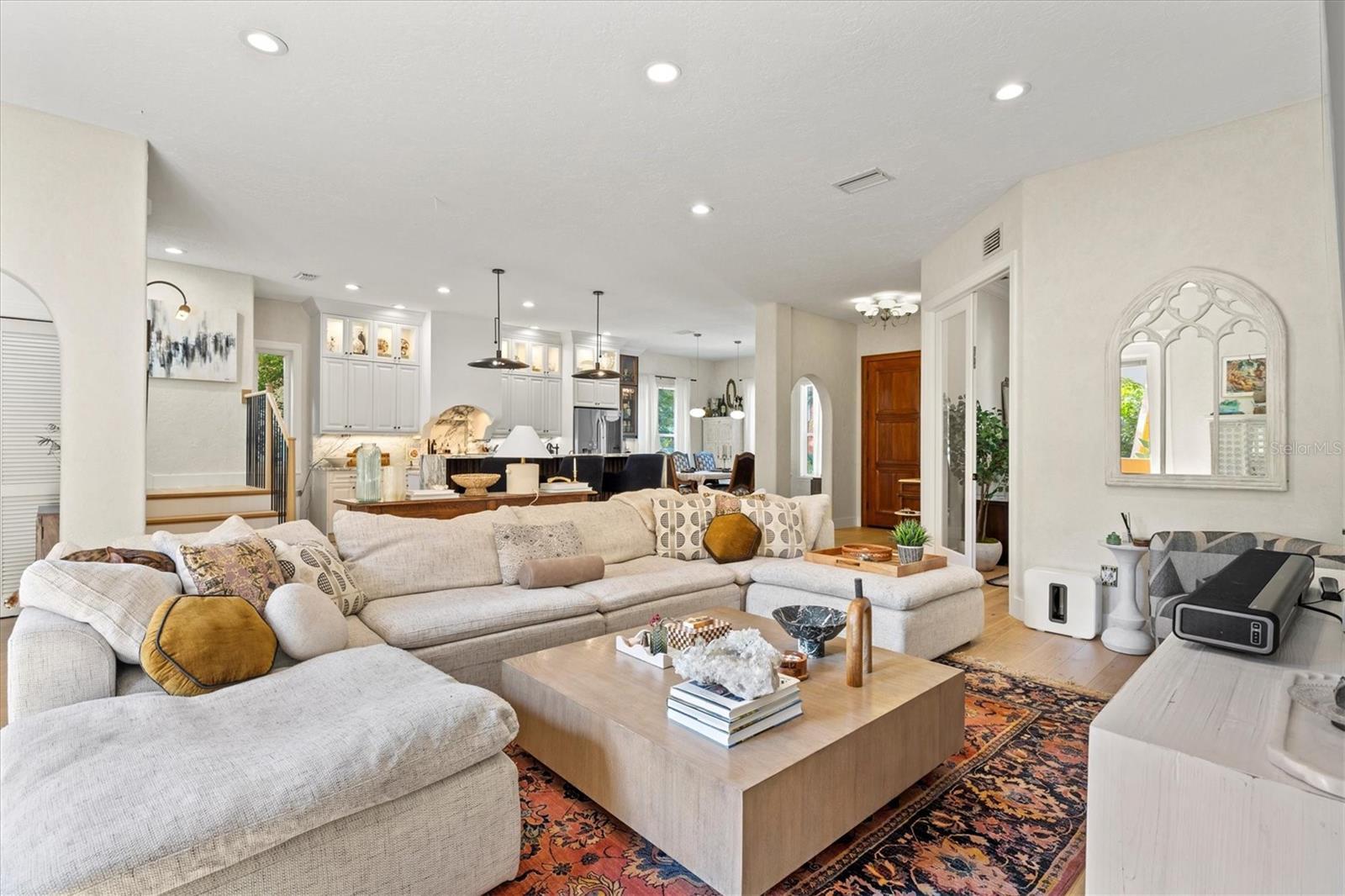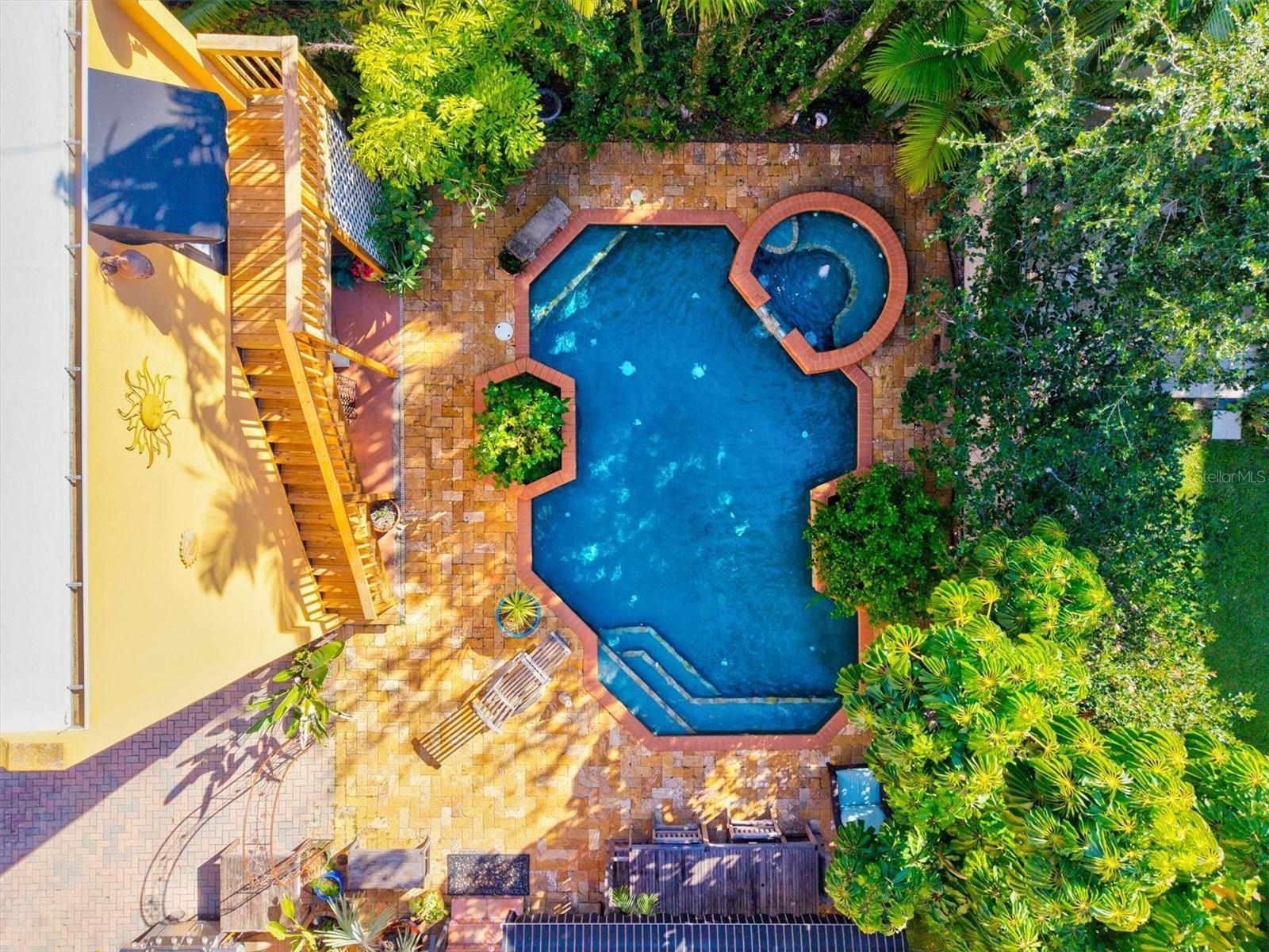 Welcome to your own private Spanish-Mediterranean-inspired sanctuary, perfectly nestled in the heart of Sarasota’s historical Laurel Park. This rare exquisitely updated 4-bedroom, 3.5-bath residence blends timeless charm with modern sophistication offering a dynamic combination of style, comfort, and versatility. This private gated home offers a separate guest or in-law suite with a full kitchen and en-suite bath ideal for extended family, visitors, or potential rental income. Step outside into a lush, resort-style backyard, where tropical landscaping frames a shimmering turquoise saltwater pool/spa and a retractable awning to enjoy your personal oasis for relaxing afternoons or elegant entertaining. Inside, the main home's fully renovated first level boasts European white oak flooring, a thoughtfully designed chef’s kitchen, and bespoke finishes throughout. Unique touches include a custom ventilated cat retreat tucked playfully beneath the staircase, blending charm and creativity. The newly crafted white oak staircase leads to the upper level, where the white oak floors continue and lime-washed plaster walls create a soft, elevated ambiance that’s both serene and stylish. All of this, just steps away from the vibrant lifestyle of downtown Sarasota; including Burns Court, Selby Gardens, and an abundance of dining, arts, and cultural attractions. There is also a kayak launch around the corner, so you're able to venture out via Hudson Bayou to the bay or to the neighborhood's "pocket park" on Laurel Street. With unmatched walkability and a one-of-a-kind design, this home offers a rare opportunity to live beautifully in one of Sarasota’s most beloved neighborhoods.