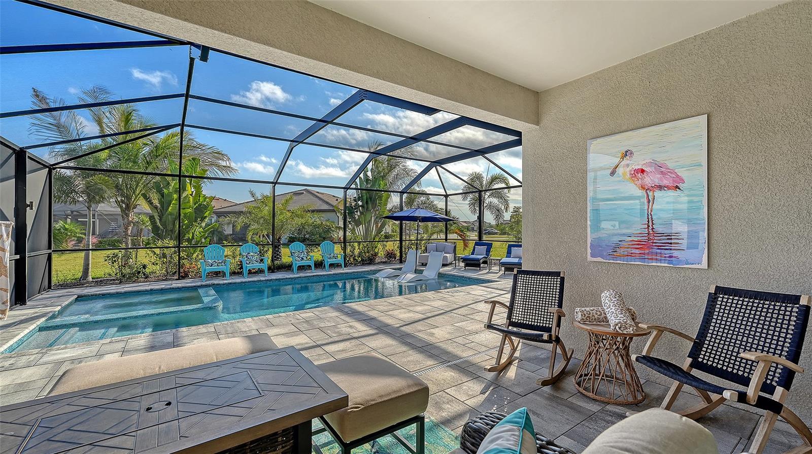 Welcome to Casa De Bleu, a luxurious 3-bedroom, 3-bathroom retreat in the coveted Lorraine Lakes community. This turnkey home combines high-end decor with thoughtful design to deliver an effortless living experience from the moment you step inside. The primary suite is a true sanctuary featuring a king-size bed, a large flat-screen TV, and an attached bathroom with a dual vanity and a walk-in shower. The second bedroom offers a queen-size bed, its own TV, and a private bathroom with a shower/tub combo for comfort and privacy. The third bedroom is perfect for guests or family, with two twin beds, a TV, and easy access to the third bathroom, also equipped with a shower/tub combo.The living room beckons with plush furnishings and a premium entertainment setup, including a sound bar with bass and speakers and a large TV for movie nights or downtime. The chef’s kitchen is fully equipped with stainless-steel appliances and substantial counter space for culinary adventures. Adjacent, the dining area features chic decor and a stylish light fixture, creating an inviting atmosphere for every meal. Step outside to the private pool—an ideal spot to soak up the sun or unwind after a day of exploration. This beautiful home offers an exceptional living experience with every detail carefully considered. Residents of the Clubhouse enjoy a state-of-the-art fitness center, including a High-Intensity Exercise room, punching bag, TRX stand, large tire flip, and rope whip. The resort-style community pool, splash park, playground, and sports facilities—basketball, tennis, and volleyball courts—provide ample recreation. Bocce ball courts sit near the Town Center pools, with pools open dawn to dusk in accordance with health regulations. The fitness center is available 24/7, and nighttime tennis is illuminated for players. Please note: pickleball play is allowed 7:30 AM–9:00 PM and courts are not lit. Parking is available in the driveway for 2–3 vehicles; (garage unavailable)street parking is allowed but not overnight. The home includes beach chairs, umbrellas, plus pickleball, tennis, putting clubs, and various sports balls. A pack & play and a wheeled crib are provided for families, and blackout curtains are installed in every room. The property features a whole-house water softener and filtration system.Please be aware that reservations may require completion of a Homeowners Association application. This home is booked through April. May 1st is the first available date. Call today!!!