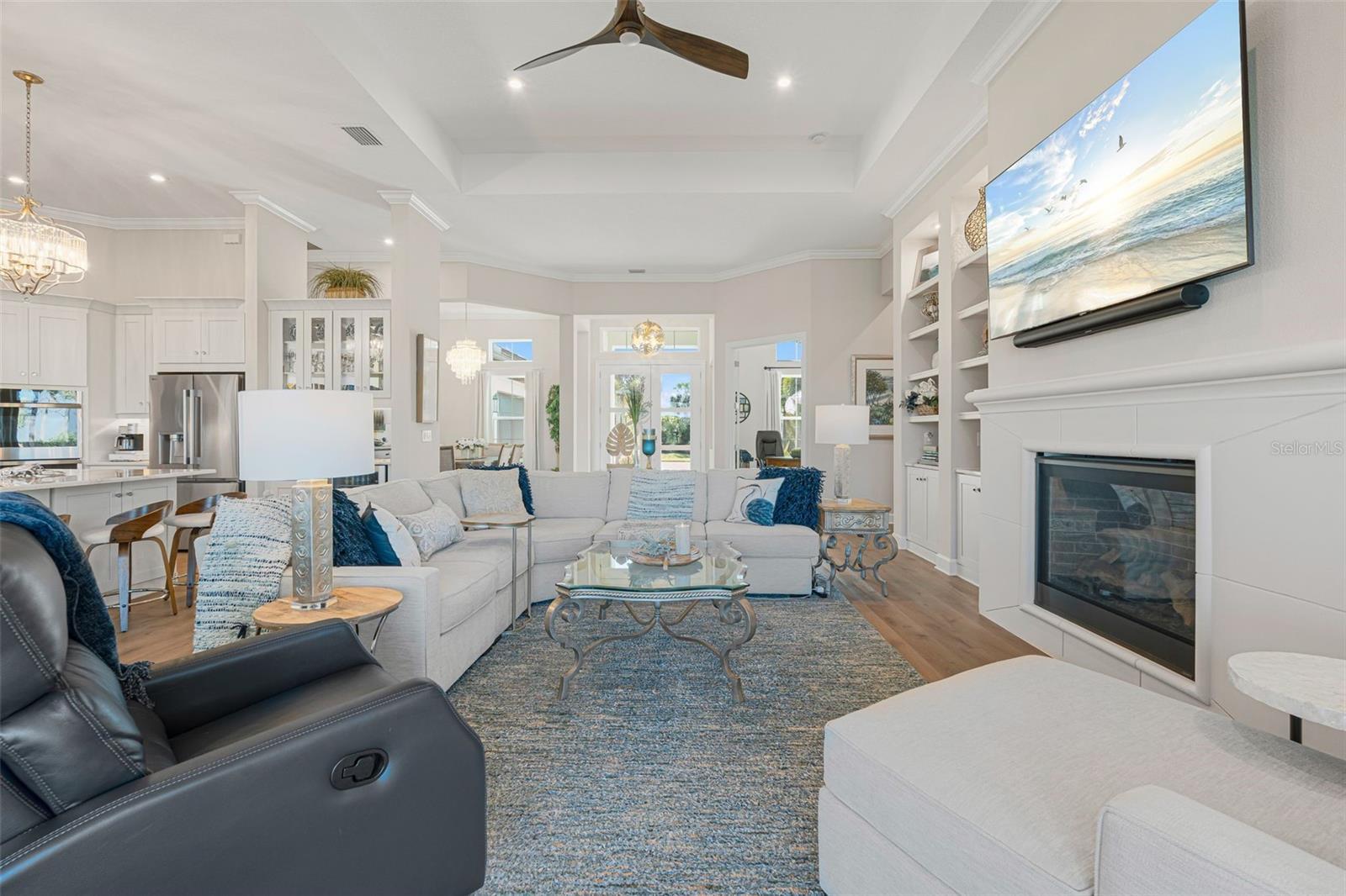 - Built-in Features, Ceiling Fans(s), Crown Molding, High Ceilings, Kitchen/Family Room Combo, Open Floorplan, Primary Bedroom Main Floor, Smart Home, Split Bedroom, Thermostat, Tray Ceiling(s), Walk-In Closet(s), Window Treatments