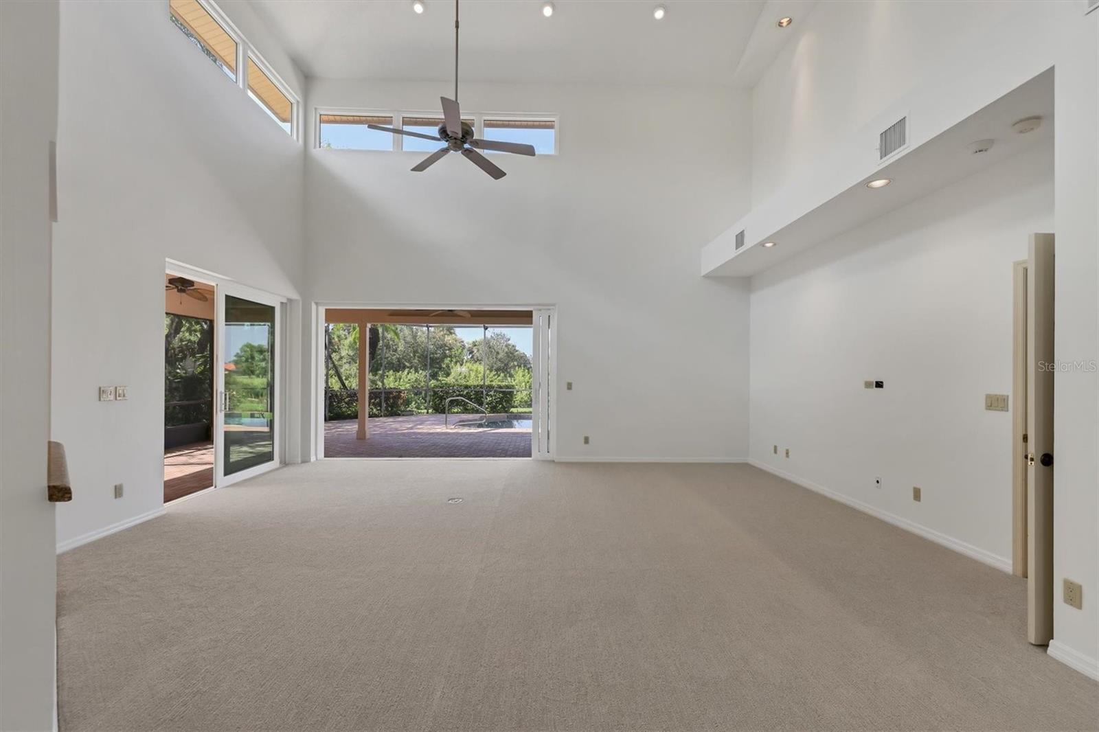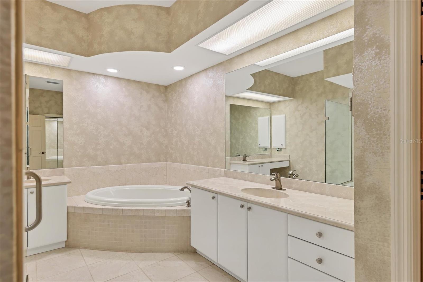 Experience the ease of refined living in this beautiful La Vista single-family villa, nestled within one of Prestancia’s most sought-after maintenance-free enclaves. Perfectly situated within walking distance of the TPC Clubhouse, this residence offers an ideal blend of comfort, elegance, and convenience. Recently refreshed with new interior paint and carpeting, the home exudes understated sophistication and provides an inviting canvas for your personal style. Soaring vaulted ceilings and expansive windows fill the interiors with natural light, creating a warm and open ambiance—ideal for showcasing art and entertaining in effortless style. The spacious living room flows seamlessly to the outdoors through pocketing sliding glass doors that open to an L-shaped covered patio and screened lanai—perfect for enjoying Florida’s signature indoor-outdoor lifestyle. The thoughtfully designed kitchen features a large center island with seating, abundant counter space, wall oven and microwave with warming drawer, dual sinks, and a charming breakfast nook surrounded by sliding glass doors. A formal dining room offers an elegant space for gatherings and celebrations. The primary suite serves as a tranquil retreat with direct lanai access, plantation shutters, a generous closet, and a spa-inspired bath with dual vanities, a soaking tub, and a glass-enclosed shower. A guest suite with a private bath, a powder room, and a laundry room complete the main level. Upstairs, two additional bedrooms share a full bath—each offering privacy and ample closet space. Hurricane-impact glass throughout provides comfort and peace of mind. The lanai is an outdoor sanctuary featuring both covered and open seating areas, a sparkling solar-heated pool, and serene views that encompass a lush preserve, peaceful water, and TPC Prestancia’s 18th fairway beyond. Residents of Prestancia enjoy 24-hour guard-gated security, beautifully manicured grounds, and the option to join the prestigious TPC Prestancia Golf Club—home to two championship 18-hole courses and a vibrant social community. Ideally located near Siesta Key’s world-renowned beaches, The Legacy Trail, and Sarasota’s acclaimed shopping, dining, and arts scene. Discover the best of Florida living in this lovely home and community—you won’t be disappointed.