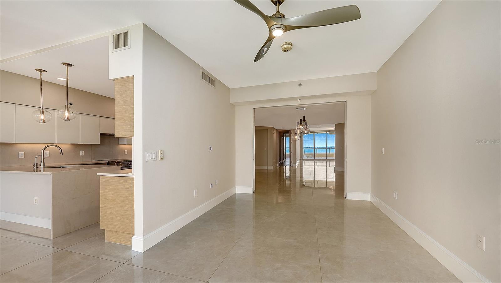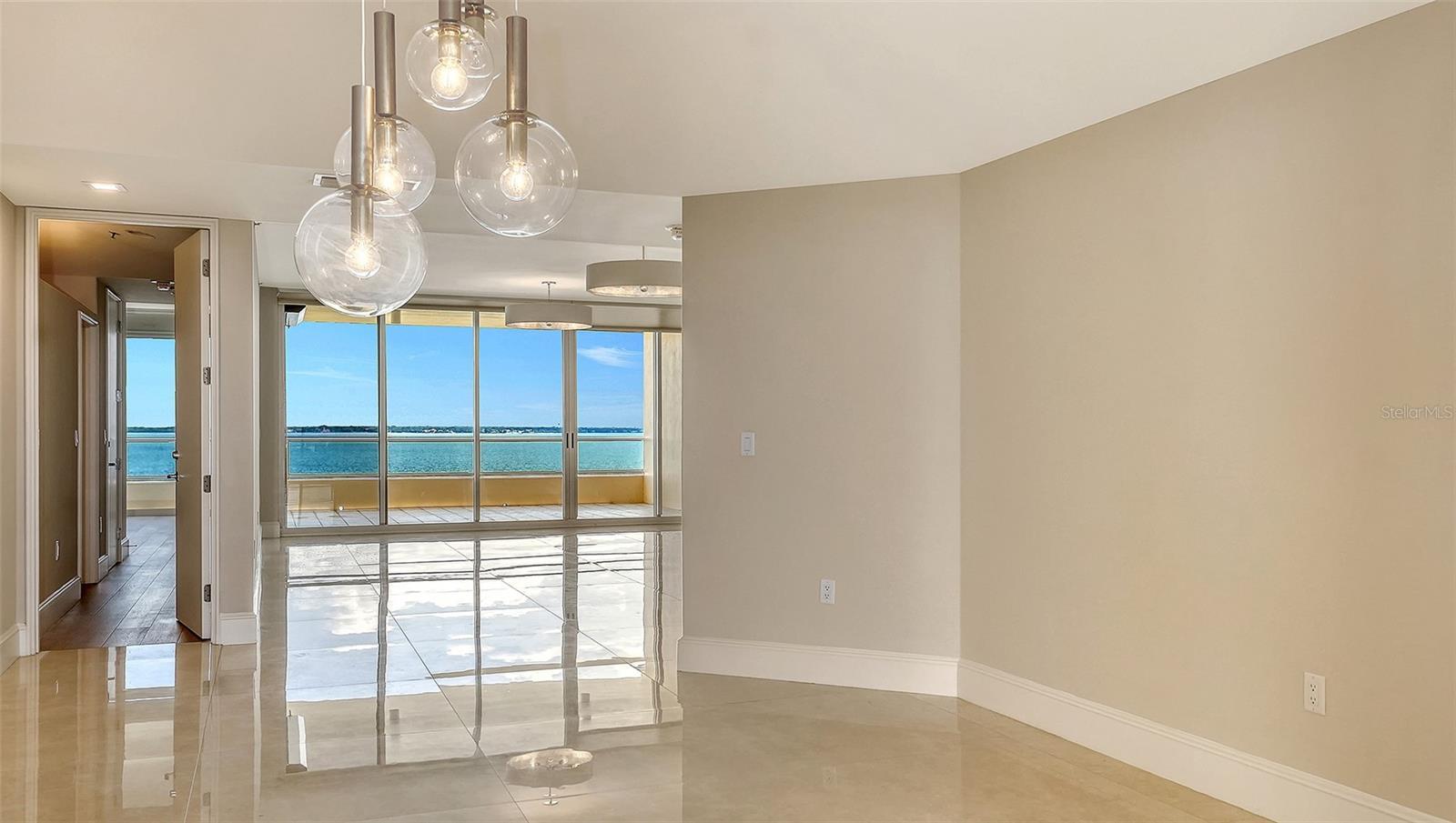 One or more photo(s) has been virtually staged. Welcome to Grand Bay. Experience the essence of refined coastal living, where breathtaking panoramic water and city views take center stage. Awaken to the sunrise over Sarasota Bay’s skyline with limitless views of the bay and golf course, and unwind with stunning sunsets over the Gulf, an ever-changing display of beauty from every room. Perfectly situated on the 8th floor, this elegant home welcomes you through a private-access, controlled elevator leading to a stunning foyer framed by contemporary glass double doors. The Cayman open floor plan immediately reveals sweeping vistas, while large porcelain tile flooring flows seamlessly through the living areas and onto two outdoor terraces ideal for quiet relaxation. The stunning updated kitchen features two-toned cabinetry, Wolf and Sub-Zero appliances, under-cabinet lighting, quartz countertops, and an inviting breakfast bar. An adjacent eat-in area with floor-to-ceiling sliders opens to a private covered terrace, a perfect setting for entertaining guests and boundless vistas. The primary suite is a lavish retreat, complete with white oak floors, two walk-in closets and a spa-inspired bath showcasing, a soaking tub, glass shower, and dual vanities. The guest suite offers private terrace access for stunning sunset views, complemented by white oak floors and an en-suite bath. Discover versatility with a den/office that doubles as an occasional guest room, providing privacy with elegant pocket doors that separate it from the formal dining room, and a 3rd full bath just steps away. A well thought out conversion has added a built-in office area adding functionality to round out the interior. Residents enjoy various first-rate amenities, including 24-hour guard gates, a clubhouse, two community pools and spas, a large fitness center with saunas, and tennis courts. Stroll the neighborhood’s scenic walking paths or enjoy deeded access to the exclusive gated Bay Isles Beach Club offering locker rooms, barbecues, volleyball nets, covered picnic areas and a sandy white beach. Located behind the Bay Isles secure gates, this secluded neighborhood rests on the rolling greens of the Longboat Key Club’s golf course. Grand Bay residents find it hard to leave this special community. This residence truly captures the best refined Bay and beach lifestyle – sophisticated, exclusive, and ready to be enjoyed.