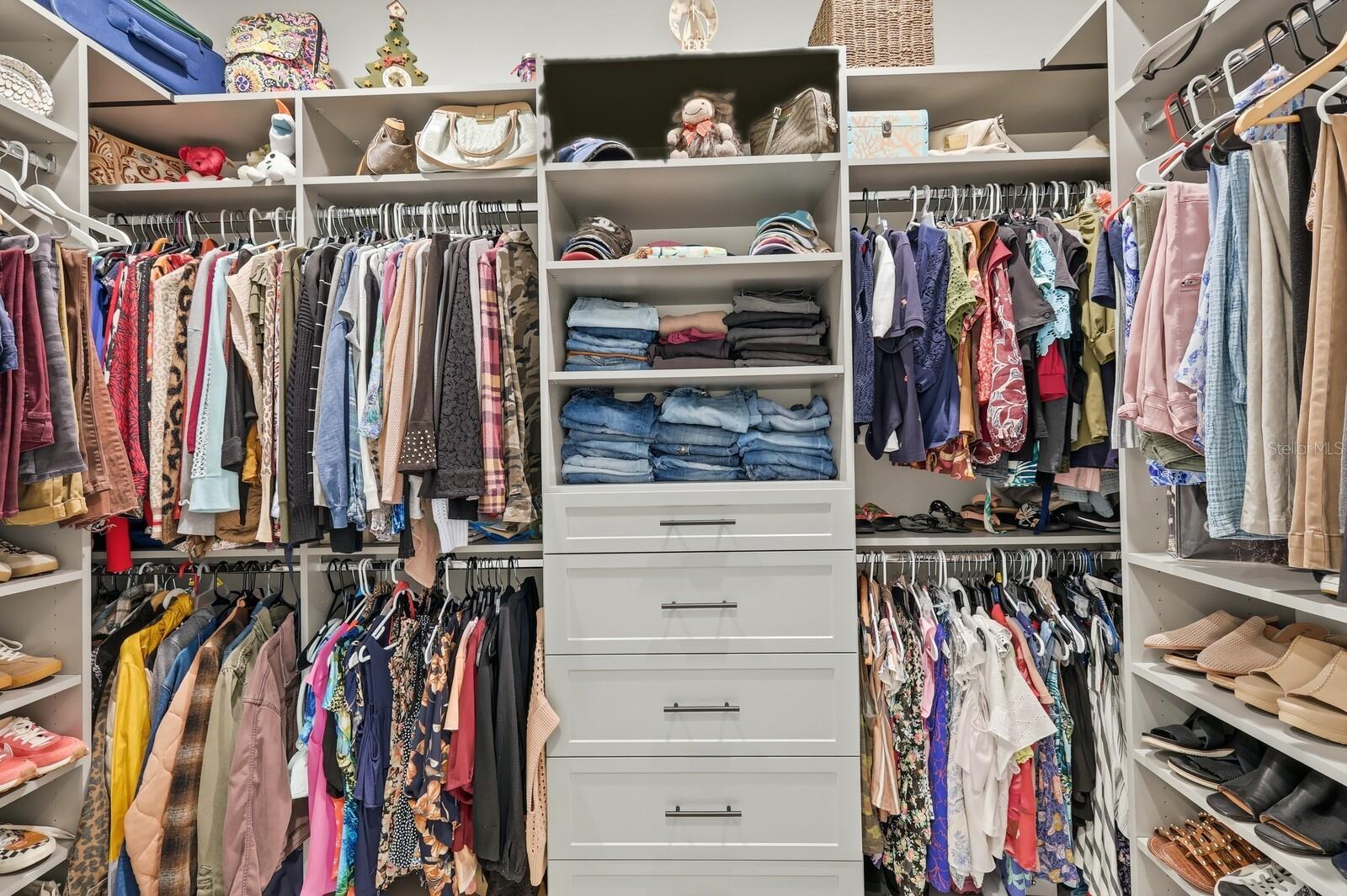- Ceiling Fans(s), Crown Molding, Eat-in Kitchen, High Ceilings, In Wall Pest System, Kitchen/Family Room Combo, Open Floorplan, Primary Bedroom Main Floor, Smart Home, Solid Wood Cabinets, Split Bedroom, Stone Counters, Thermostat, Tray Ceiling(s), Walk-In Closet(s), Window Treatments