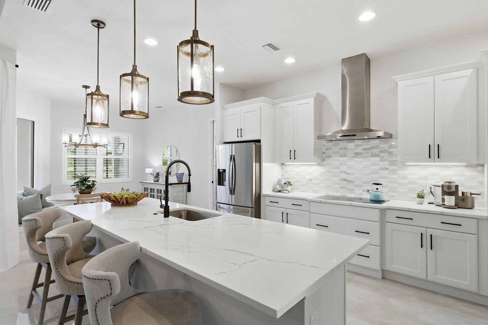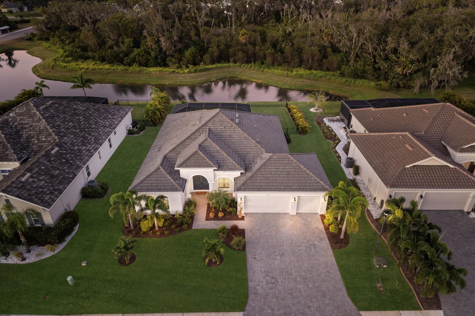 Under contract-accepting backup offers. IMPACT-RESISTANT WINDOW & DOORS, TILE ROOF (NOT SHINGLE) along with over $50,000 in after-closing-upgrades including a water softener & filtration system, a Clear-View pool cage, partial fenced yard, elegant lighting/ceiling fans throughout, window plantation shutters, custom wall details, custom closets/pantry, and more ador this EXTENDED Aruba by Medallion Home, an exquisitely designed 2023-built residence within a GATED COMMUNITY. This 3-bedroom, 3-bath home WITH a large den/office has a 5-ft extended bedroom and an added full bath that is also accessible to the pool. This stunning open-concept layout blends modern design with functional living. The heart of the home — a spacious great room — flows seamlessly into the gourmet kitchen, where stainless steel appliances, quartz countertops, upgraded solid wood Kraftmaid cabinets, and an oversized island with seating invite both culinary creativity and conversation. Enjoy your morning coffee while watching for the local deer in the bright breakfast nook, highlighted by an aquarium window that bathes the space in natural light. The owner’s suite is a private retreat occupying one full wing of the home, featuring a 14' x 15' den, dual walk-in closets, and a spa-inspired ensuite with an oversized walk-in shower, dual vanities, and a private water closet. From the owner's suite you can step through French door to your private pool and spa, overlooking a tranquil pond AND preserve — a forever view, with no homes ever to be built behind you. The extended covered lanai, pre-plumbed and wired for an outdoor kitchen, is perfect for alfresco dining and entertaining. Situated on an 85-foot-wide homesite, this property offers space, privacy, and a true sense of sanctuary. Beyond beauty, this home delivers performance and peace of mind: impact-resistant windows and sliders provide storm protection, energy efficiency, and lower insurance costs. Residents of the gated community of The Reserve at Twin Rivers enjoy low HOA fees with no CDD fees, covering front gate access, internet, basic cable, irrigation water, private road maintenance, and community preserve care. Perfectly located for convenience and lifestyle with 3 Publix Super Markets within 10 minutes, UTC shopping/dining center and Ellenton Outlets within 15 minutes, I-75 and I-275 access within 15 minutes, 3 international airports within less than an hour, Major League sports (Rays, Bucs, Lightning), and a new Parrish Hospital only 15 minutes away. Don’t miss your chance to experience the best of Florida living — where modern luxury meets natural tranquility.