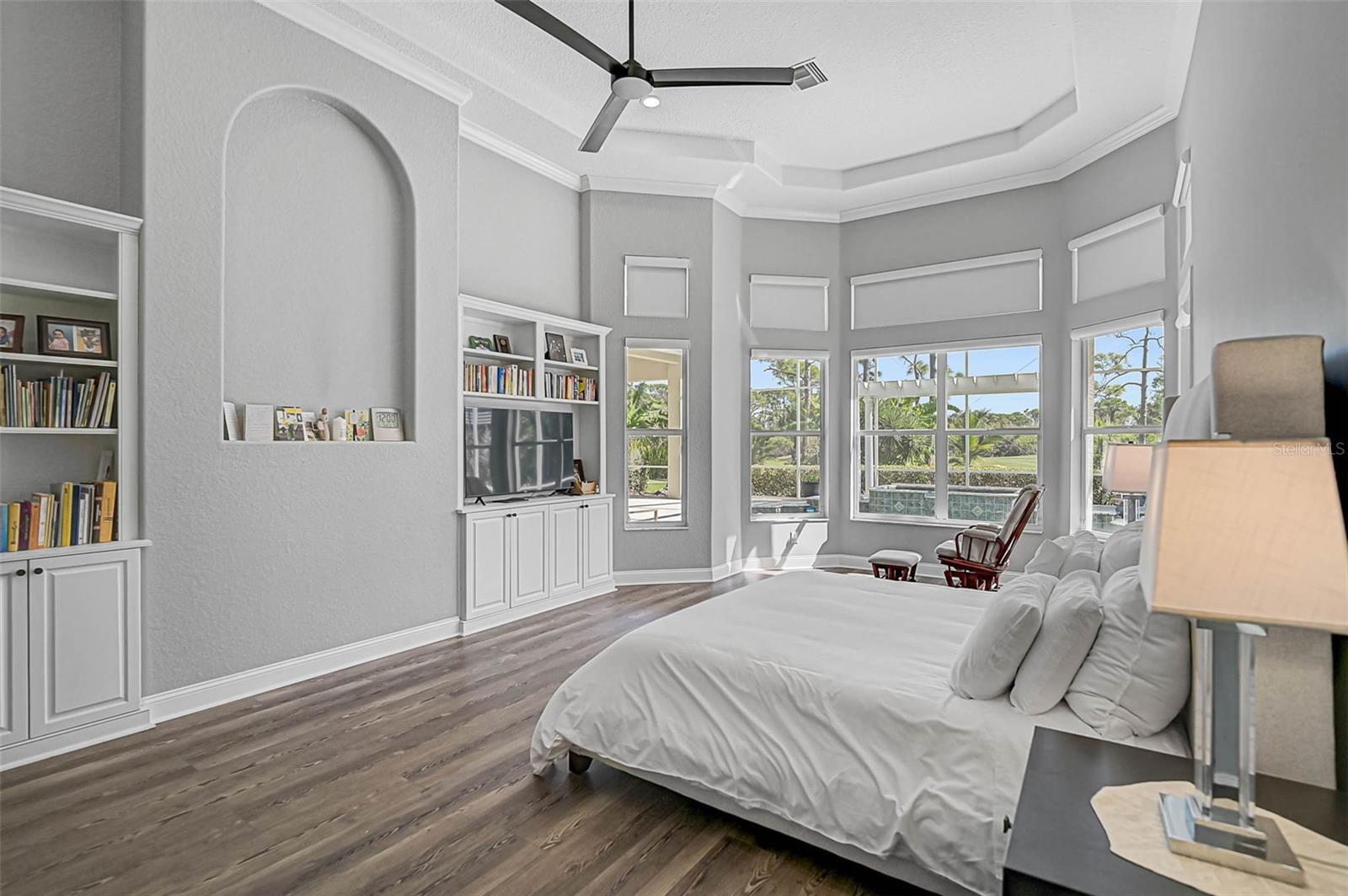 - Built-in Features, Ceiling Fans(s), Central Vaccum, Coffered Ceiling(s), Crown Molding, Eat-in Kitchen, High Ceilings, Kitchen/Family Room Combo, Living Room/Dining Room Combo, Open Floorplan, Primary Bedroom Main Floor, Solid Wood Cabinets, Split Bedroom, Stone Counters, Thermostat, Tray Ceiling(s), Walk-In Closet(s), Wet Bar, Window Treatments