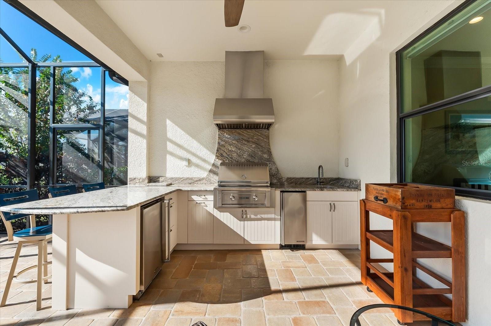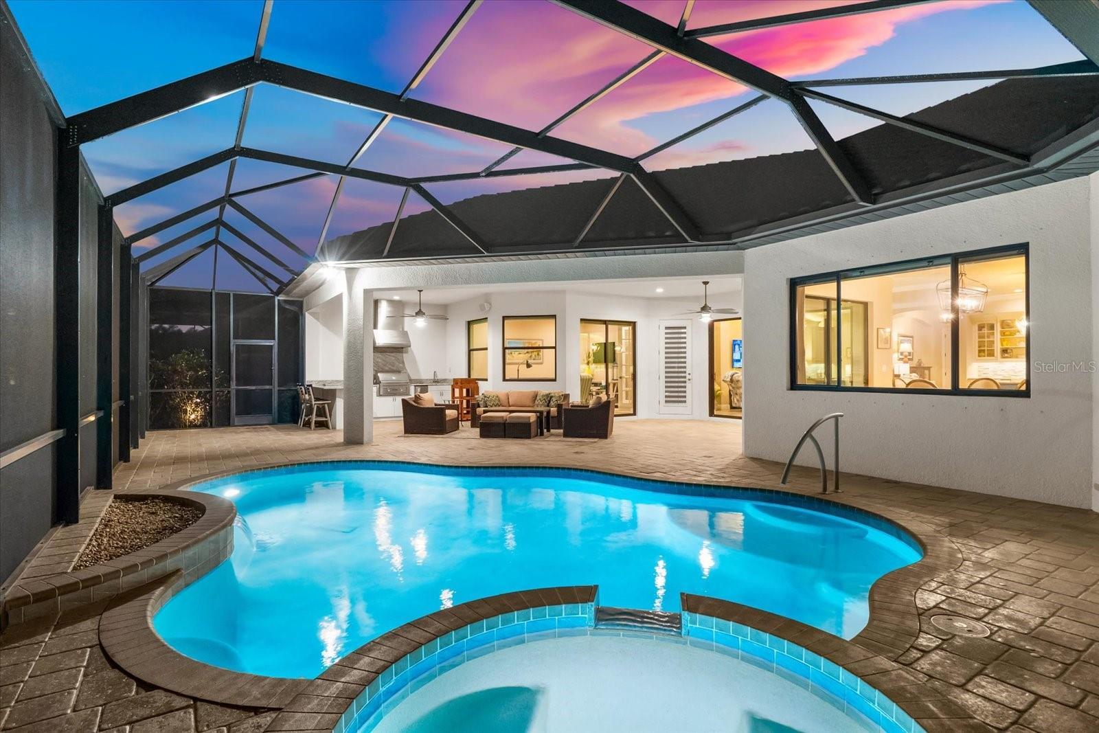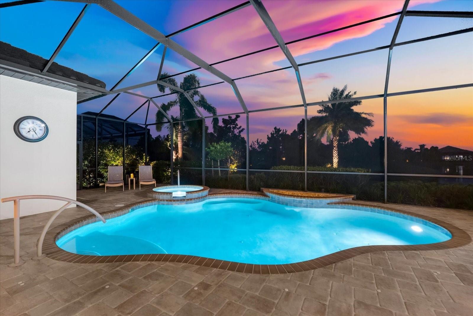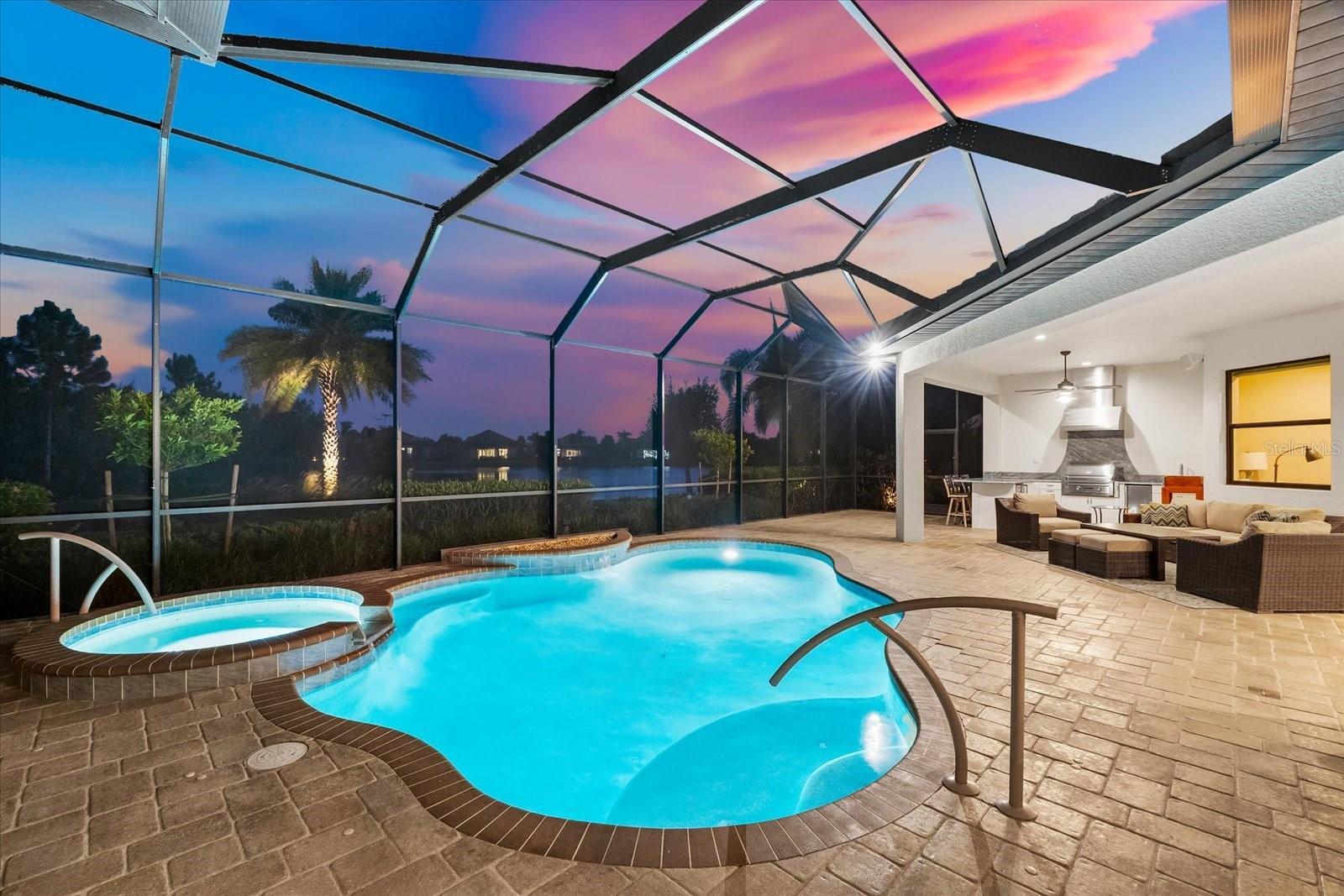 Under contract-accepting backup offers. Welcome to the epitome of luxury living in Country Club East! Nestled in the gated Prestbury neighborhood of Country Club East within Lakewood Ranch, the nation’s #1 multi-generational master-planned community---this custom 2,852 sq.ft. Baypointe Model is a true one-of-a-kind masterpiece. Built by the award-winning Lee Wetherington Homes, this residence sits on an expansive, beautifully landscaped 11,663 sq.ft. homesite, offering sophistication, privacy, and breathtaking water views. Designed exclusively for the current homeowners, this unique home features a custom elevation and thoughtful interior modifications, making it truly unparalleled in the community. The residence offers 3 bedrooms, 3 bathrooms, a den, a bonus room, and a split 3-car garage creating a perfect blend of luxury and livability. Step through the grand double-door entry and be greeted by an open- concept great room showcasing tranquil water views through expansive sliding glass doors that seamlessly connect the indoors with an exceptional outdoor living area. The lanai is an entertainer’s dream featuring a fully equipped outdoor kitchen with grill, refrigerator, ice maker, and sink, plus a heated, self-cleaning saltwater pool and spa with handrails for comfort and safety. Inside, every detail reflect refined craftsmanship---from coffered and tray ceilings, crown molding, and illuminated niches to wood-like ceramic tile, designer lighting, and custom window treatments. The home also features abundance storage with ventilated wood shelving, a built-in “drop zone, “and a climate-controlled storage room---your private “Florida basement.” The gourmet kitchen is a showpiece, featuring light wood cabinetry, soft-close drawers and pullouts, elegant granite countertops, a five-burner gas cooktop with stainless hood, and an oversized blue island with seating for four. A bar/coffee station with glass front cabinets and lighting adds both functionality and style, while the adjacent dining area provides serene views of the lanai and pool. The owner’s retreat is a sanctuary, enhanced with a seating area, private pool access, and two custom closets with soft-close drawers. The spa-like ensuite includes dual granite vanities, framed mirrors, porcelain sinks, and a luxurious walk-in shower with a unique drying area---plus plumbing in place for a future soaking tub. Two additional bedrooms and bathrooms provide privacy and comfort for guests, while the den provides flexibility for a home office or reading room. The bonus room overlooking the pool and spa completes this exceptional layout. Built for peace of mind, a whole-home generator, a comprehensive alarm system, whole-home water filtration and softener, in-wall pest control, and a 3-car split garage with epoxy flooring and attic access. Located within Country Club East, residents enjoy resort-style amenities including three sparkling pools, a fitness center, and clubhouse---all surrounded by lush, mature landscaping. Optional golf membership available. Conveniently located near Sarasota’s world-class beaches, fine dining, arts, and entertainment, as well as A+ rated schools and top medical facilities, this residence perfectly captures the essence of luxury Florida living. Don’t miss your opportunity to own this one-of-a-kind estate home in Country Club East---where elegance, comfort, and resort-style living await.