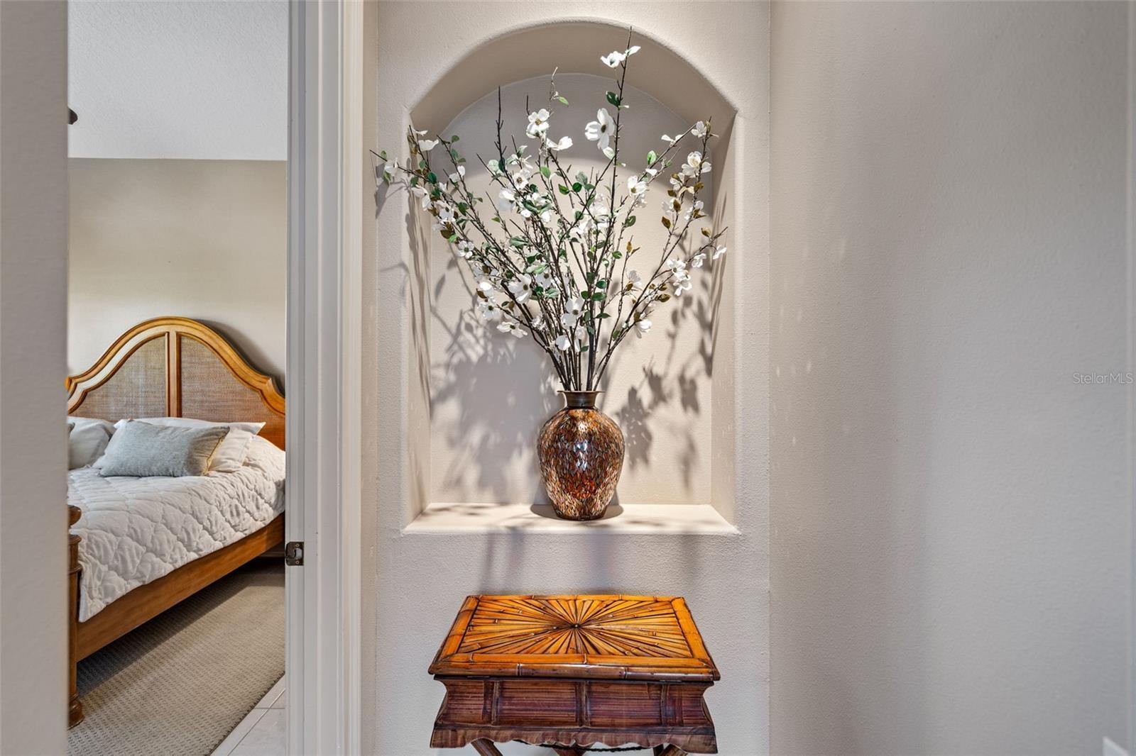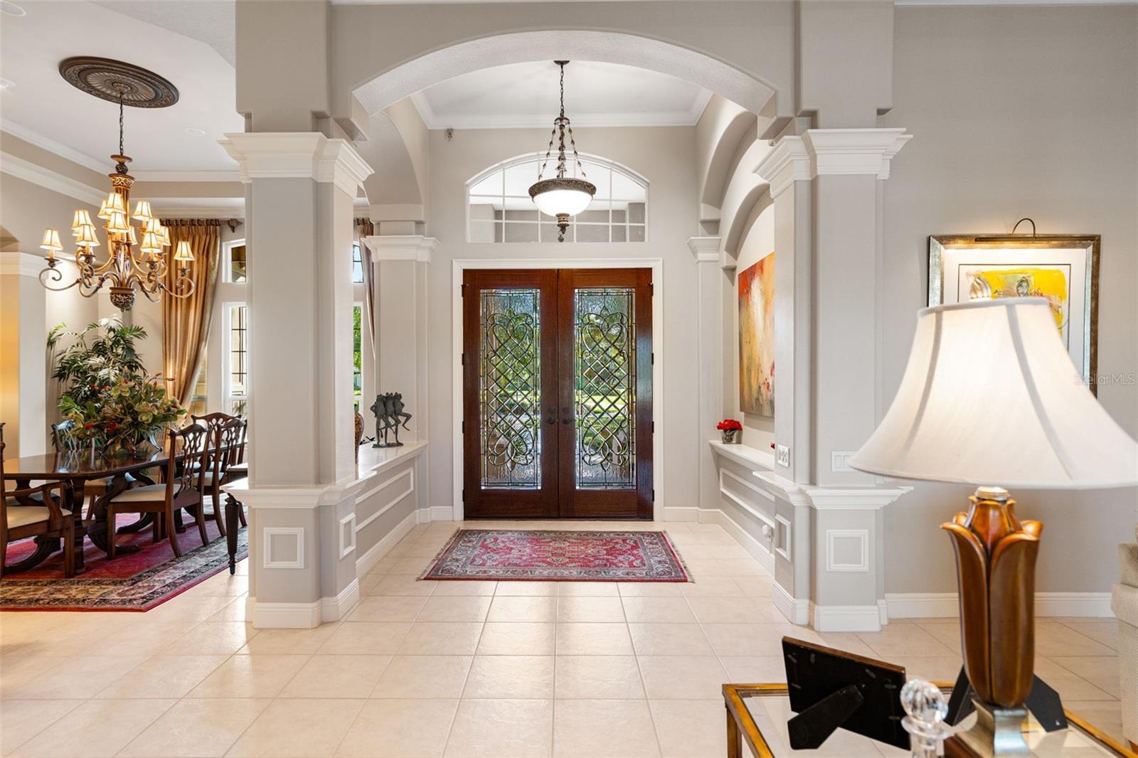 - Built-in Features, Crown Molding, Eat-in Kitchen, High Ceilings, Kitchen/Family Room Combo, Solid Wood Cabinets, Stone Counters, Thermostat, Walk-In Closet(s), Wet Bar