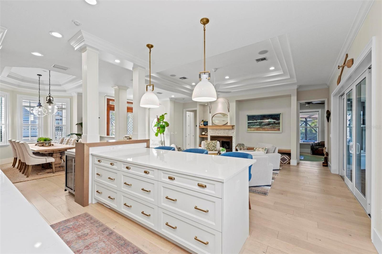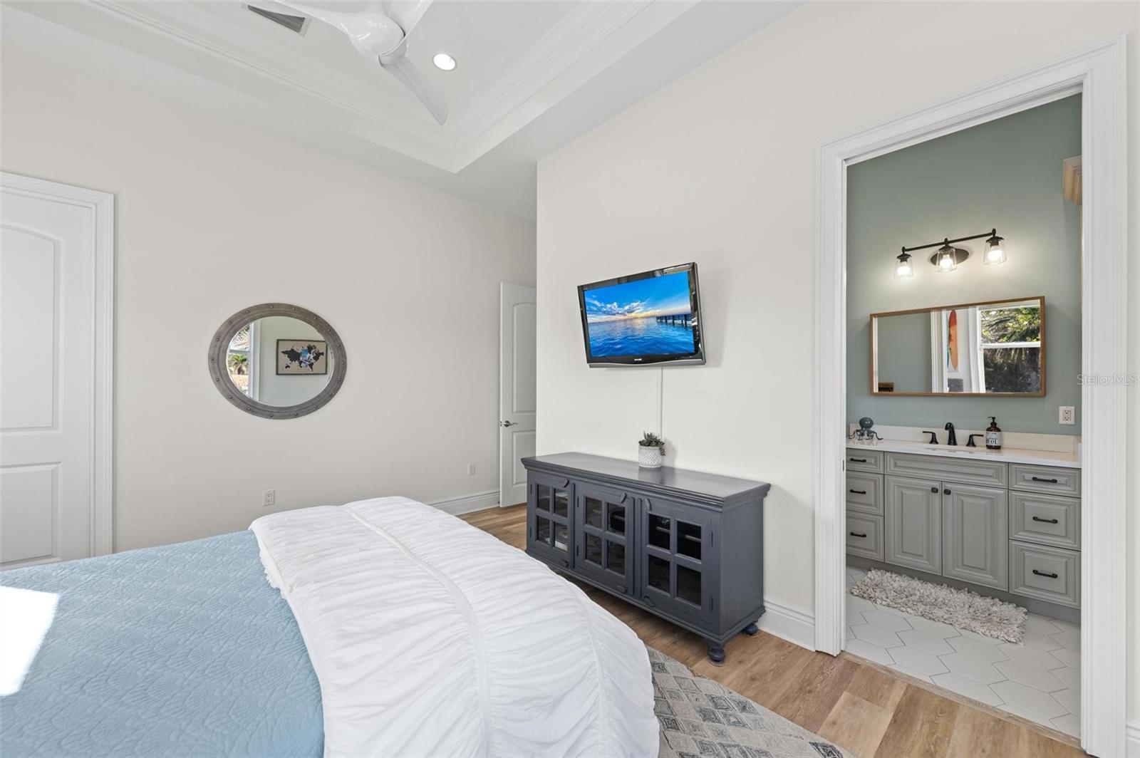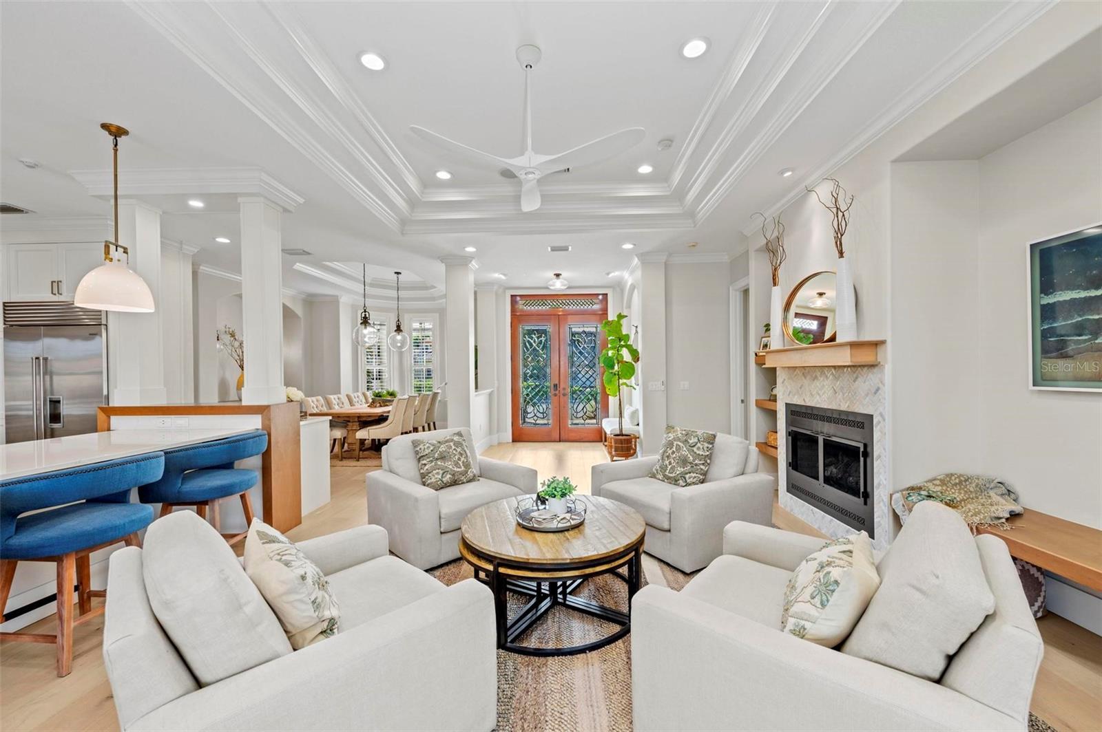 Under contract-accepting backup offers. Experience the ultimate boating lifestyle from this custom-built waterfront home on a peaceful cul-de-sac. Sitting high and dry at 12 feet, the home was fully renovated for it’s current owners in 2020. Built well after the 2002 Florida Building Code changes (which required structures to be engineered for improved hurricane resistance, including impact windows, elevated designs and a more stringent building code), gives you peace of mind and makes the home easier to insure than an older home. An elegant design featuring high ceilings and engineered hardwood floors leads to a stunning outdoor retreat. The home's extensive glass windows and sliding doors create a seamless transition to your oversized entertainment area and screened lanai. This outdoor oasis features a heated saltwater pool, outdoor kitchen with Alfresco built-in grill, built in speakers, propane fireplace and TV—ideal for entertaining against the canal backdrop. With 190 feet of waterfront, one house away from the intracoastal, and no fixed bridges to the Gulf, this property is a boater's paradise. Featuring a 10,000 lb primary boat lift, a 5,000 lb double jet ski lift, a fish station, and a 70-foot Trex dock equipped with water and power. Whether you prefer boating, kayaking, paddleboarding, fishing, or simply lounging by the pool, this outdoor space is designed for all-day enjoyment. The chef's dream kitchen was fully remodeled in 2020 with both serious cooks and entertaining in mind, showcasing double islands, quartz countertops, and top-of-the-line Wolf/Subzero appliances, including an induction cooktop, convection microwave, convection steam oven, wine fridge, and an oversized built-in refrigerator. A walk-in wet pantry with an ice maker and espresso machine hookup completes this culinary haven. The luxurious main floor primary suite features a spa-like bathroom with a double showerhead walk-through shower, a jetted soaker tub, double sinks, and three spacious walk-in closets. Enjoy the seamless transition to the pool area through French doors, or retreat to the connected office adorned with smart electric blinds and built-in desk and cabinetry. Upstairs you’ll find two oversized bedrooms, each with its own full ensuite and a loft area with vaulted ceilings and a wet bar. The upstairs provides complete privacy for your family or guests. Every detail has been carefully crafted, from the tray ceilings and crown molding to engineered hardwood floors and LED lighting. Even the 4 car garage has built in storage, a work bench, high ceilings, epoxy floors and 2 EV charging ports! Recent upgrades include exterior painting, a new flat tile roof at the end of 2023 (these upgrades alone were over $118,000). With all major updates already done, there is nothing left to do but move in and enjoy this exquisite waterfront retreat. Schedule your private tour today.