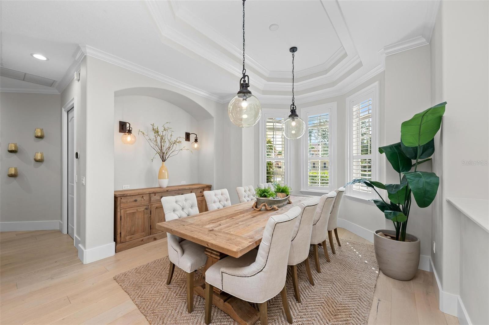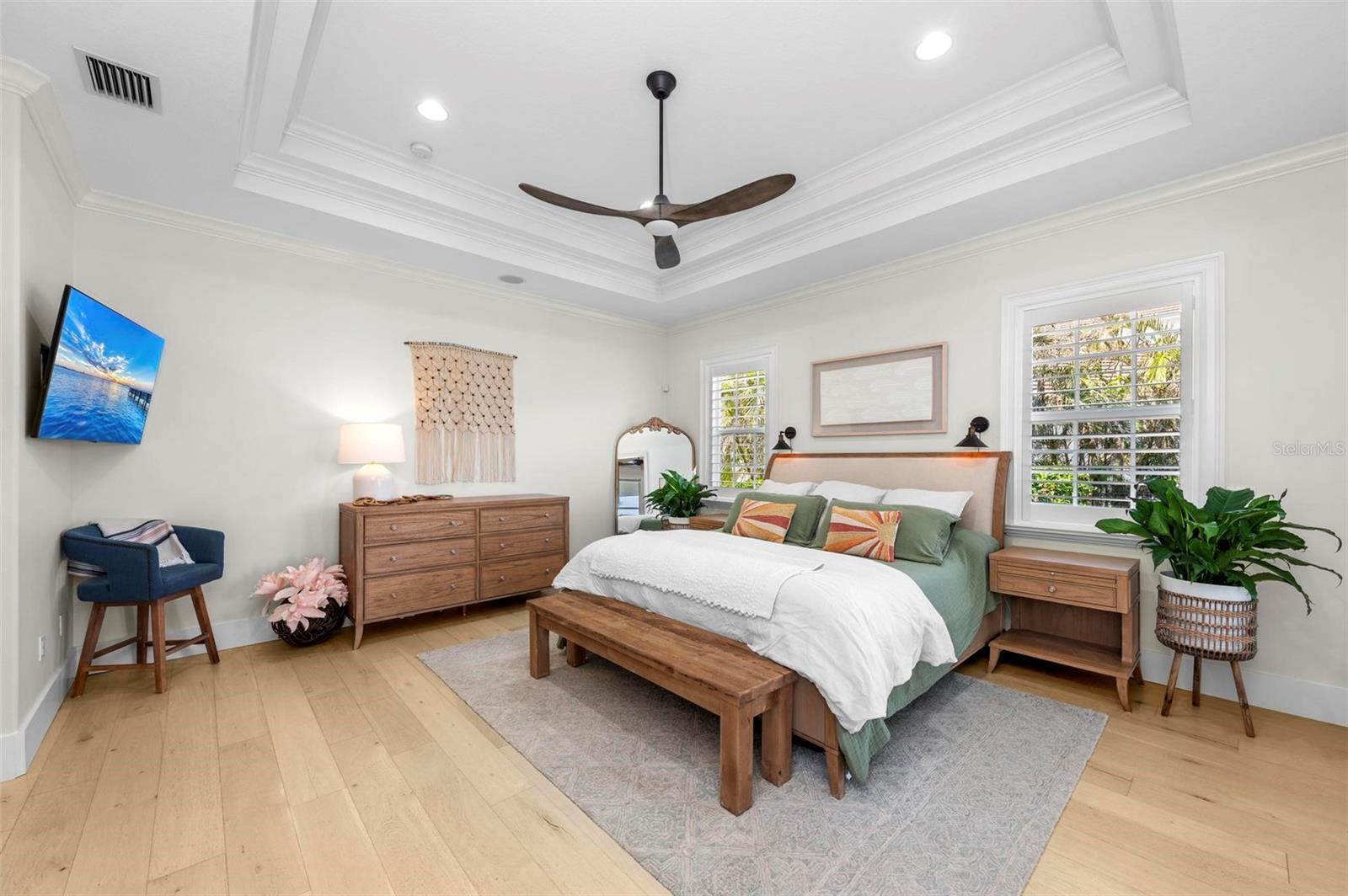 - Built-in Features, Ceiling Fans(s), Crown Molding, Eat-in Kitchen, High Ceilings, Kitchen/Family Room Combo, Open Floorplan, Primary Bedroom Main Floor, Smart Home, Solid Surface Counters, Solid Wood Cabinets, Split Bedroom, Tray Ceiling(s), Walk-In Closet(s), Window Treatments