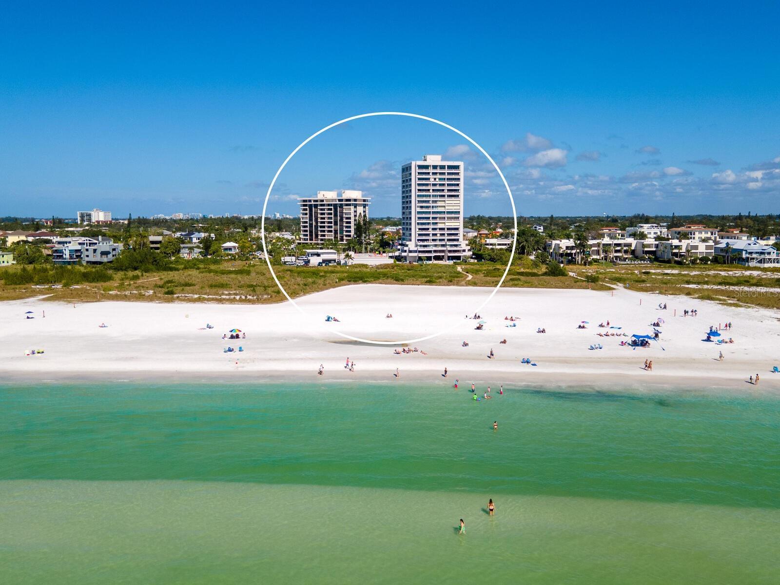 Experience the ultimate in Siesta Key beachfront living. Directly on world-renowned Siesta Beach, rated #1 in the U.S. and #4 worldwide by TripAdvisor, this stunning fifth-floor corner residence captures the essence of luxury coastal living. Recently renovated to perfection, this one-bedroom, 1.5-bath condominium offers a rare combination of modern sophistication, coastal elegance and sweeping Gulf views. Designed by the acclaimed architect Frank Folsom Smith, the iconic Beach Terrace building is an architectural gem. This residence is a standout, meticulously renovated by a designer whose impeccable taste and attention to detail elevate the home well beyond expectation, with a focus on efficient use of space. The result is a move-in-ready retreat where every inch reflects exceptional craftsmanship and thoughtful design. Go inside to discover two walls of wrap-around, floor-to-ceiling impact-rated sliding glass doors that open to three private balconies, expanding the total usable space to 1,284 square feet, immersing you in stunning views of the Gulf’s turquoise waters and legendary white quartz sand. The chef’s kitchen is a masterpiece, featuring Quartzite countertops, custom European cabinetry, high-end stainless steel appliances and an expansive island that anchors the open concept living area. The spacious great room, bathed in natural light, includes a custom Murphy bed for overnight guests and provides a setting to enjoy Siesta Key’s radiant sunsets. Every element of this home is designed for comfort and style, from the serene primary suite to the elegant finishes throughout. The primary bath reflects a flawless balance of form and function. Featuring European cabinetry, a glass-enclosed walk-in shower and spectacular floor-to-ceiling tilework, this serene space exudes modern elegance. Every detail, from the sleek fixtures to the artful tile patterns, has been thoughtfully curated to create a spa-like sanctuary that complements the residence’s sophisticated coastal aesthetic. Additional improvements include a new air conditioning system with updated ductwork, new electrical upgrades and a new water heater, ensuring comfort and peace of mind for years to come. Within Beach Terrace’s exclusive enclave, residents enjoy the security of a controlled-access lobby, the convenience of an on-site manager, and premium amenities including a heated saltwater pool overlooking the Gulf, fitness center and community lounge. Go outside and you’re just moments from Siesta Key Village, where you’ll find inviting boutiques, beachside cafés and vibrant local dining. With the beach at your doorstep, a car becomes optional. And when you crave a touch of city life, downtown Sarasota’s acclaimed cultural scene, restaurants, galleries, opera, ballet, and theaters, is just minutes away across the north bridge. This is more than a residence, it’s a rare opportunity to own a beautifully reimagined piece of paradise, where luxury, location and lifestyle converge to create an extraordinary beachfront experience on Siesta Key.