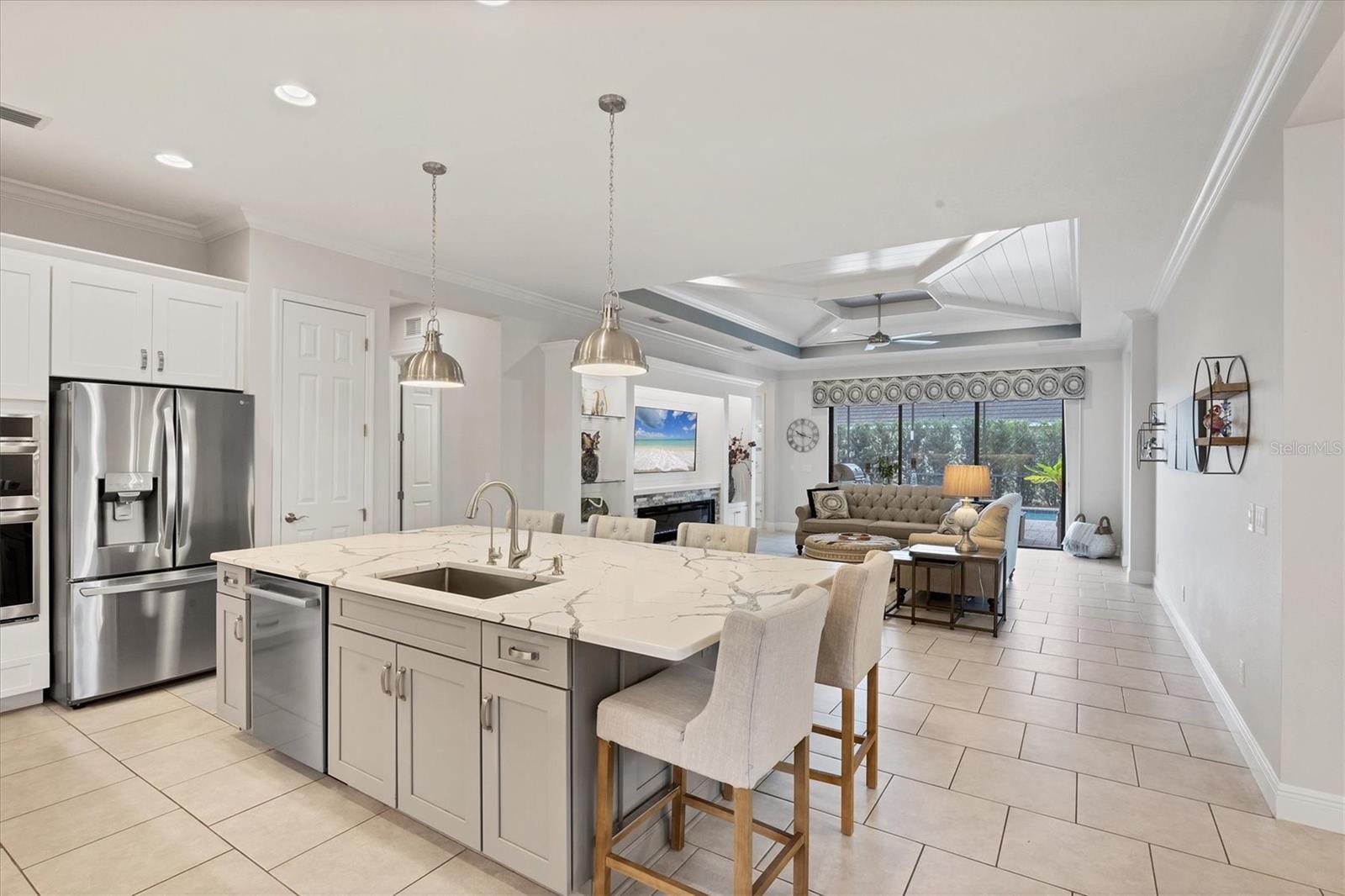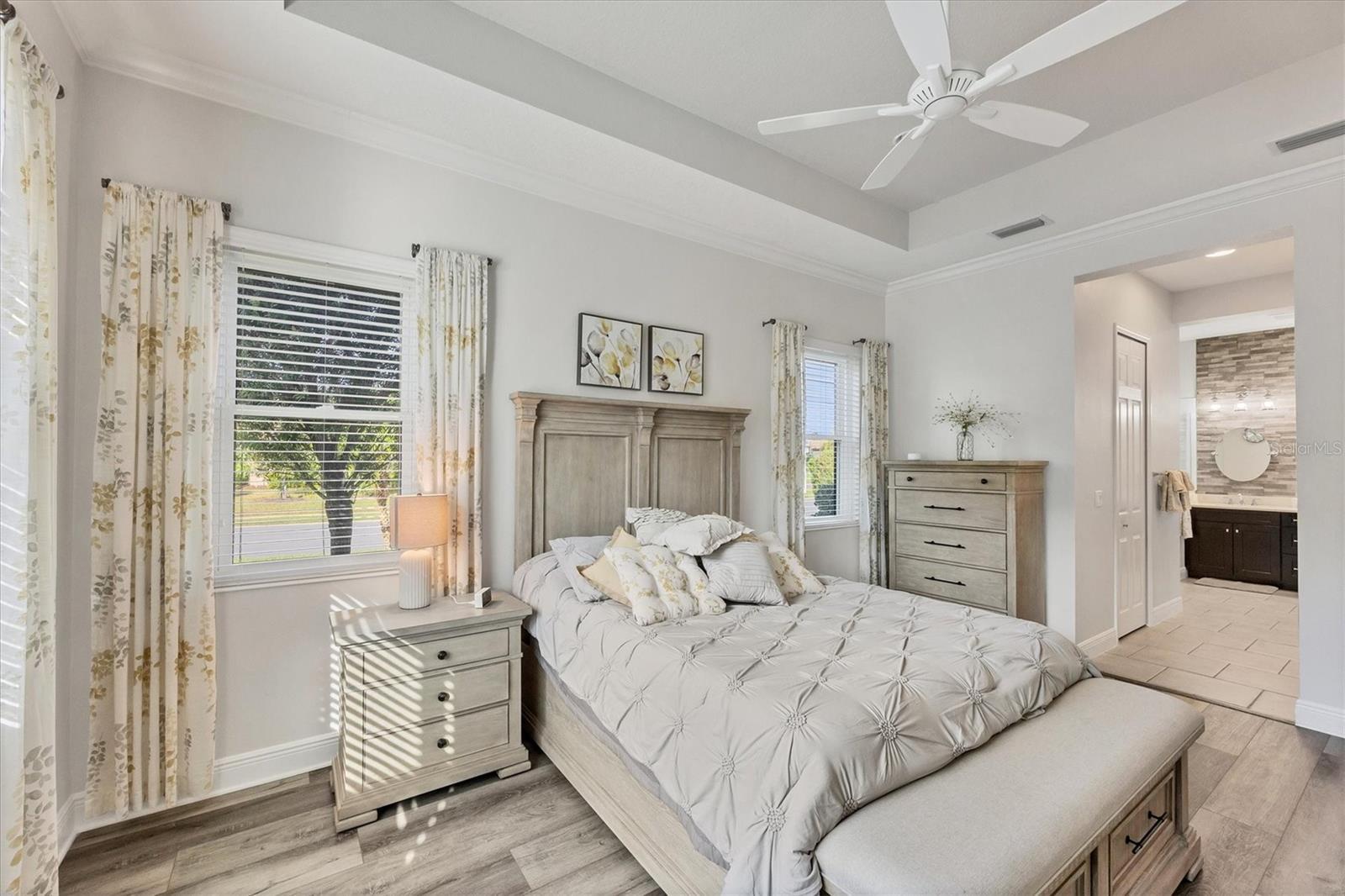 - Ceiling Fans(s), Crown Molding, Eat-in Kitchen, High Ceilings, Open Floorplan, Smart Home, Stone Counters, Thermostat, Tray Ceiling(s), Walk-In Closet(s), Window Treatments