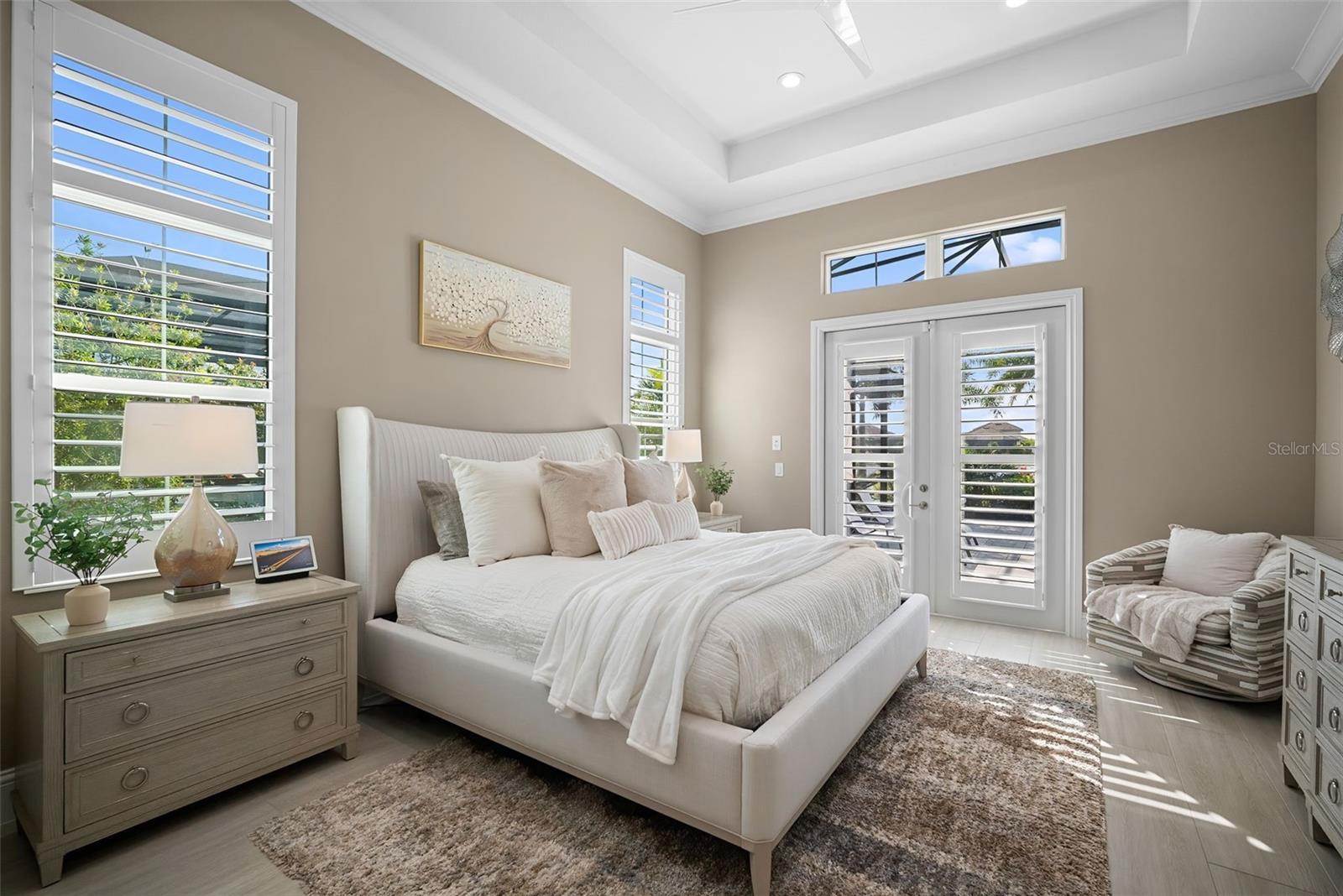 Welcome to luxury living at its finest in The Lake Club — Lakewood Ranch’s premier gated community. This exceptional residence offers a spacious 3 bedrooms, 3.5 bathrooms, a private office, and a 3-car garage across 2,638 square feet of beautifully designed living space. The open-concept kitchen, living, and dining areas are ideal for entertaining or relaxing in style, with high-end finishes including crown molding, tray ceilings, updated lighting, and electric blinds in the living, dining, and office areas. Step outside to your outdoor oasis — a sprawling ~1,400 sq ft screened lanai with a saltwater pool and spa, full outdoor kitchen featuring a Blaze grill, wet bar, dry bar, and TV cabinet. Enjoy west-facing water views and unforgettable sunsets over the tranquil lake and with no homes directly across the street you will enjoy the pleasing green space for added privacy and serenity. Every detail has been thoughtfully curated: built-in closets throughout, ceiling fans in all bedrooms, office, and lanai, a full home Generac generator, hurricane-rated windows and doors, and lanai hurricane screens to protect your outdoor living space, whole-home water purification and softener, alarm system with cameras, and a climate-controlled garage. The custom mature landscaping and exterior lighting elevate the curb-appeal and create a truly enchanting ambiance. Experience a lifestyle of comfort, security, and sophistication in this meticulously maintained home. Live life well at The Lake Club — where luxury, privacy, and sunset views await.