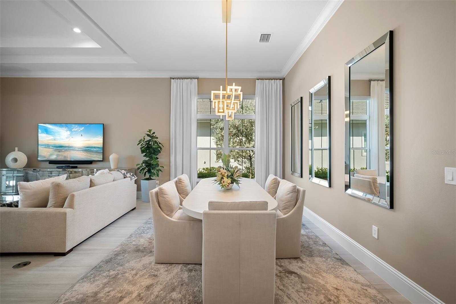 - Ceiling Fans(s), Crown Molding, High Ceilings, In Wall Pest System, Open Floorplan, Primary Bedroom Main Floor, Solid Surface Counters, Stone Counters, Thermostat, Tray Ceiling(s), Walk-In Closet(s), Window Treatments