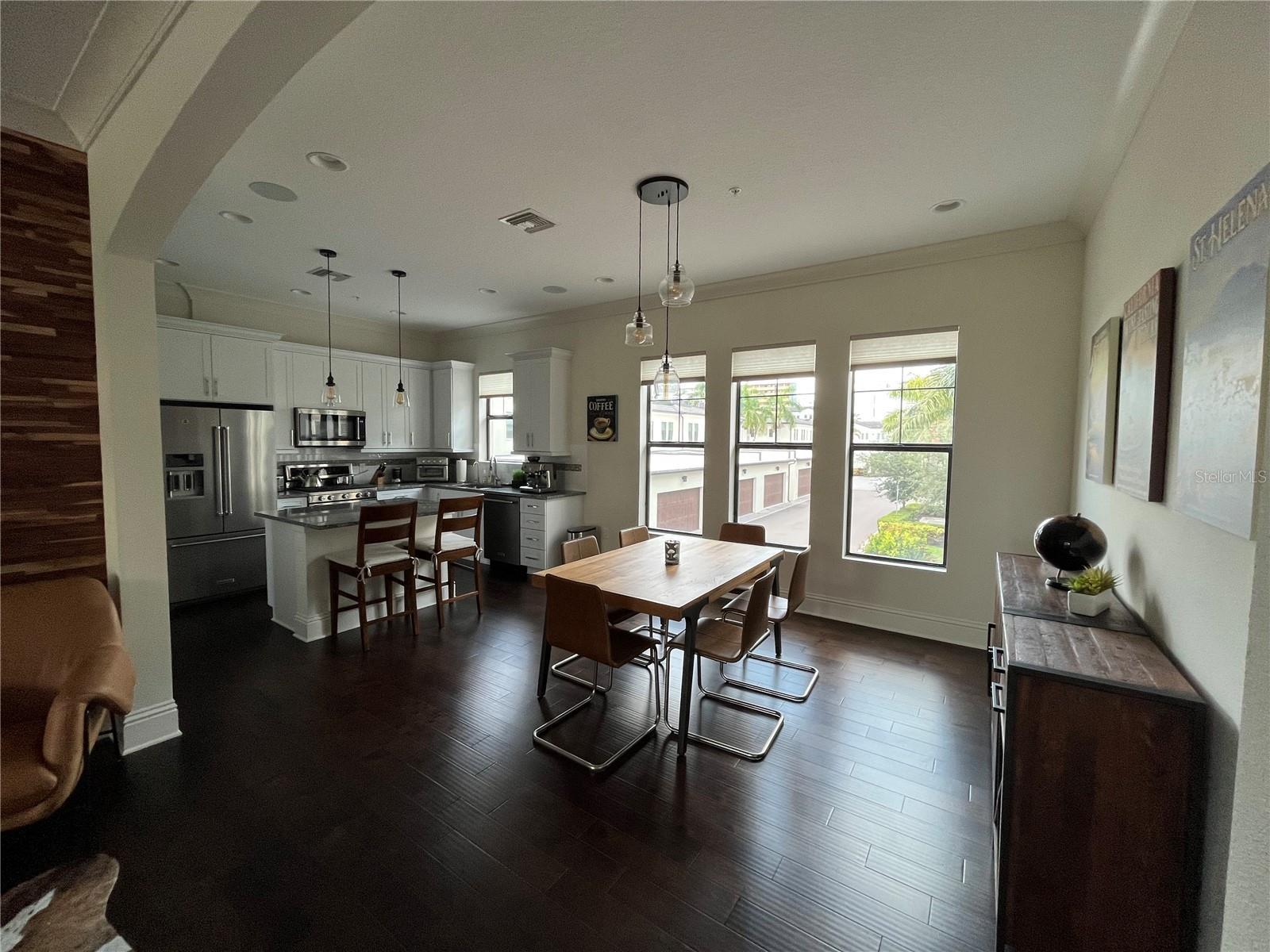 Rarely available ANNUAL FURNISHED RENTAL TOWNHOUSE in the heart of SARASOTA DOWNTOWN! This charming residence features almost 2,300 sq ft and a unique layout, including 3 bedrooms, 3.5 bathrooms, a formal dining area, and a two-car garage with updated epoxy flooring. Inside, comfort meets elegance with tall ceilings, arch elements, wide accent moldings and baseboards, granite countertops, and high-quality hardwood flooring throughout the house, with no carpet hassle. The spacious living room flows into the kitchen and dining area, creating a large, open space on the second floor. The powder room is also located on the second floor to enhance the comfort of living. At the center of the home is a generously sized kitchen, complete with a pantry, a kitchen island with a high-bar seating area, and stainless-steel appliances in like-new condition. The primary suite is located on the top floor and has an entrance to the private patio, offering beautiful city views. The primary bathroom is a true retreat, featuring a spacious walk-in closet, dual sinks, a shower, and a separate toilet room. The second suite has an enclosed full bathroom and conveniently located on the first floor. The third bedroom, which currently serves as a home office, is located on the same level as the master suite. A nicely sized laundry closet has a full-size washer and dryer. A superb LOCATION in Sarasota Downtown: about 10 minutes driving to Lido Beach, about 15 minutes driving to famous Siesta Key Beach. Van Wezel Performing Art Hall, Bayfront Park, Main Street and plenty of shopping, entertainment, and dining options within a 5-10 minutes driving and even walkable distance. This luxuriously furnished townhouse is designed with convenience and comfort in mind, making it the perfect place for you to start your next chapter.