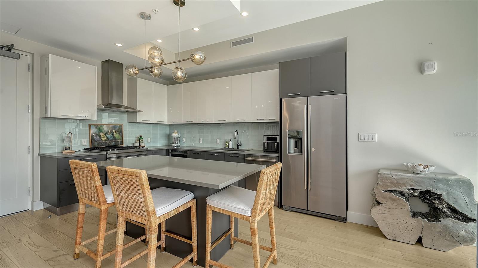 Welcome to The Orange Club #304 - Experience boutique urban living in the heart of Sarasota’s Historic Burns Court District, where modern design meets old Florida charm. This beautifully designed, contemporary-style three-bedroom, two-and-a-half-bath plus den condominium offers the perfect retreat for your Sarasota winter. Downtown is truly at your doorstep in this intimate, amenity-rich community built in 2017. With over 1,500 square feet of light-filled living space, this residence showcases a bright and spacious split-bedroom layout complemented by engineered wood floors, 10-foot ceilings, and floor-to-ceiling hurricane-impact windows and sliders with electric shades. The open-concept design creates a seamless flow between living, dining, and kitchen areas, ideal for entertaining or relaxing after a day by the beach. The chef-inspired kitchen is a stunning blend of form and function, featuring Jenn-Air appliances including a natural gas cooktop and refrigerator with in-door water dispenser, modern European-style cabinetry, gorgeous quartz countertops, and a large center island framed by glass tile backsplash. The primary suite offers a peaceful escape with a walk-in closet and a spa-inspired bath complete with dual vanities and a walk-in shower. The den provides the perfect flexible space for a home office or cozy reading nook. Step out onto your expansive private balcony to soak in Sarasota’s year-round sunshine. Overlooking the city and Laurel Park, it’s the perfect spot to sip your morning coffee or watch the sunset, complete with a tile floor, glass railing, and a gas hookup for grilling. Additional features include a laundry room with washer and dryer, private covered parking, and climate-controlled storage. Residents enjoy boutique amenities such as a heated community pool, electric car charging, and a state-of-the-art security system. Located just three miles from the white sands of Siesta Key Beach and surrounded by cafés, boutiques, art galleries, and theaters, The Orange Club combines downtown convenience with a relaxed coastal lifestyle. The Orange Club #304 is the ideal place to spend your winter—and to experience the very best of Sarasota living.