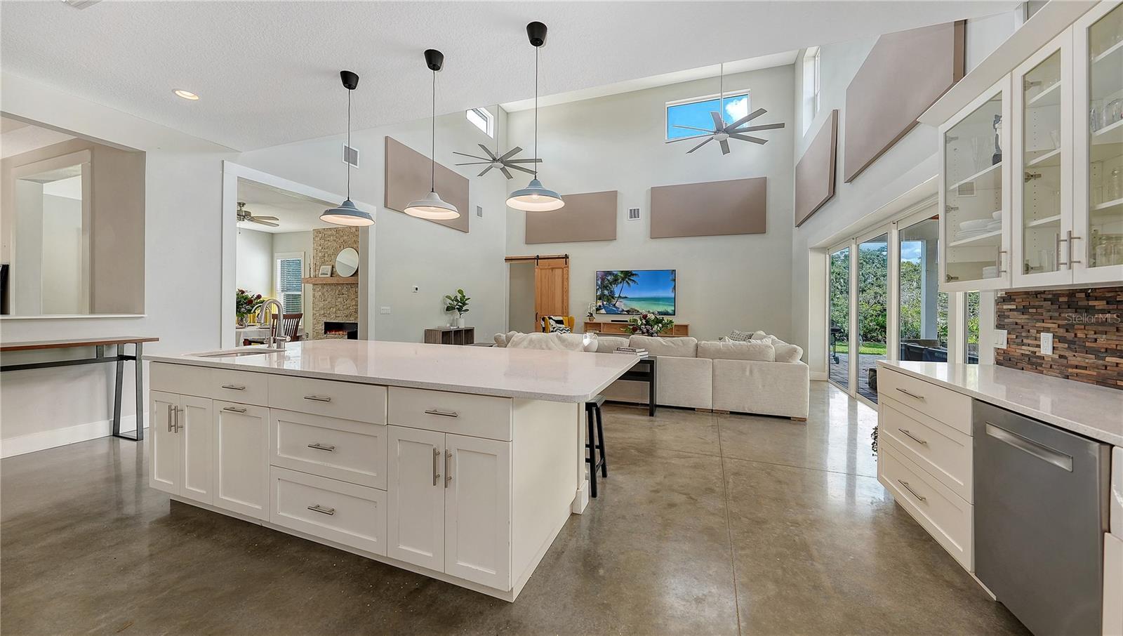 Welcome to this 2016 custom-built modern farmhouse set on over 5 peaceful acres, offering the perfect blend of refined design and relaxed country living. Surrounded by natural beauty and frequent wildlife sightings, this private Sarasota retreat features 4 bedrooms, 4 baths, and thoughtfully crafted spaces throughout. A grand entry through Therma Tru double doors leads to an inviting foyer and a spacious great room with soaring ceilings and abundant natural light. The chef’s kitchen is a standout with gas cooktop, pot filler, oversized quartz island, custom B&B shaker cabinetry, reverse osmosis system, pantry, and built-in features. The dining area centers around a beautiful gas stone fireplace for warm, elegant gatherings. A dedicated office/media room with double doors and a versatile loft offer ideal spaces for work, entertainment, or relaxation. The primary suite includes French doors to the pool area, a luxurious bath with double vanity, and a private water closet. This split plan provides two additional bedrooms and a full bath downstairs, while the upstairs includes a spacious loft and a large fourth bedroom/bonus room for added privacy and flexibility. A well-appointed laundry room and full pool bath add convenience. Stylish polished concrete floors run throughout the home, blending modern design with rustic warmth. Property features include hurricane-impact windows and sliders, a 10-foot-plus two-car garage suitable for a lift, three AC units, whole-house generator, water softener, tankless water heater (NR980D), operational well, septic system with 1,350-gallon tank and 84 sq. ft. drain field, and a 500-gallon buried propane tank. Outdoor living is exceptional with a sparkling saltwater pool, expansive paver deck, covered patio, and plumbing in place for an outdoor kitchen. The acreage offers ample room for an additional structure or barn, making it suitable for a homestead, equestrian use, or quiet nature retreat. Enjoy peaceful mornings and sunsets on the charming covered front porch, and experience the serenity of this one-of-a-kind Sarasota property.