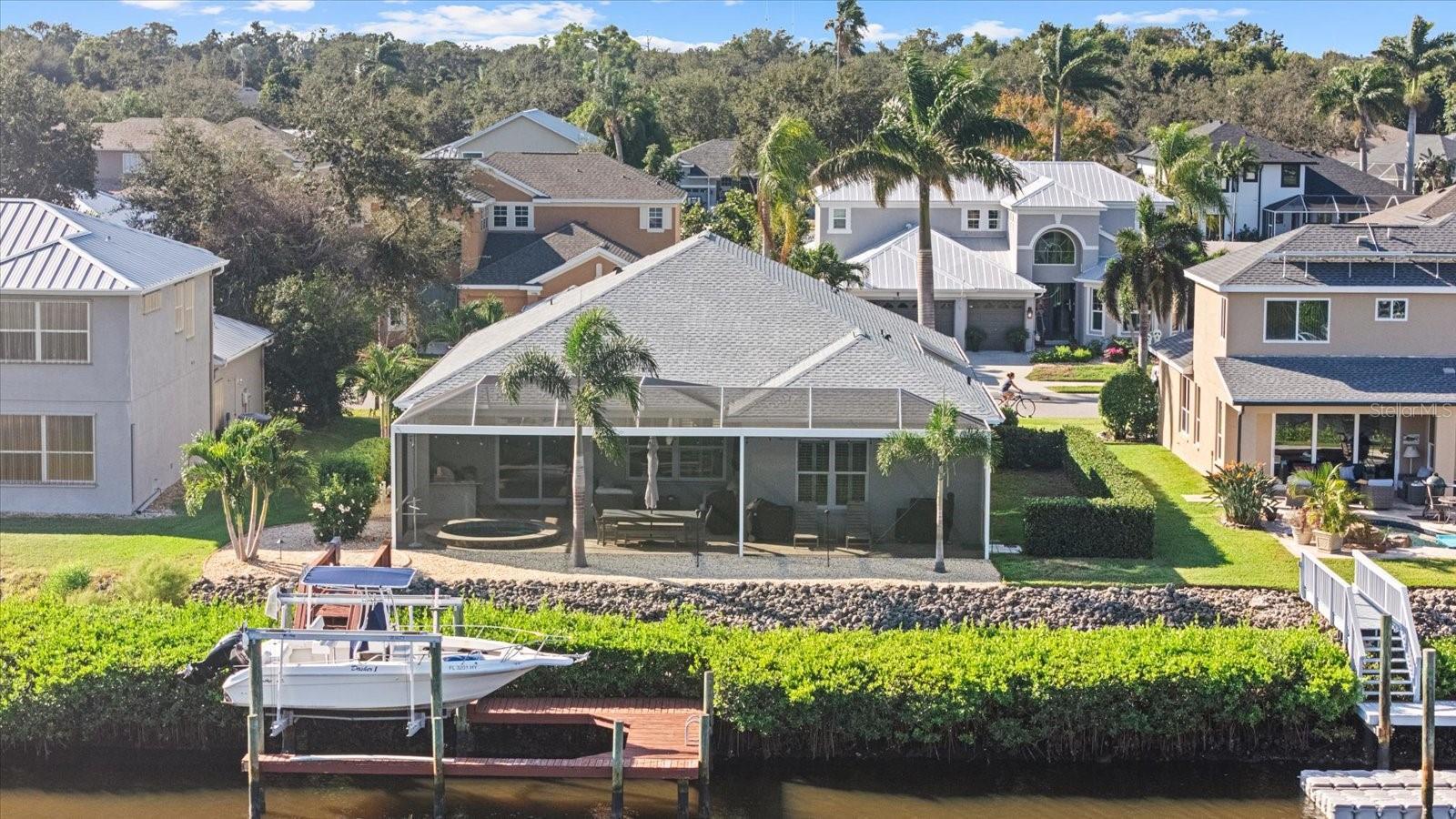 **Perfect home for the avid boater, great seasonal home and a great rental investment property with no leasing restrictions.** Experience the true Florida lifestyle in this luxurious, completely renovated waterfront home on a saltwater canal in the exclusive River Point community- a premier boating neighborhood offering direct Gulf access, no fixed bridges, and no restrictions. Nestled on a private, dead-end street at a high elevation, this property provides both tranquility and peace of mind, complete with a private saltwater dock and lift- perfect for boating, fishing, paddle-boarding, and endless waterfront adventures. Completely renovated in 2021, this home exudes sophistication and craftsmanship at every turn. The gourmet chef’s kitchen is a showpiece, featuring custom cabinetry, quartzite stone countertops, an oversized Sub-Zero refrigerator, a 36-inch Wolf gas stove, and an expansive island perfect for gathering and entertaining. The laundry room offers floor-to-ceiling custom cabinetry, adding both elegance and functionality. The primary suite provides a serene escape with direct lanai access, a spa-inspired ensuite adorned with marble finishes and high-end fixtures, and ample closet space. Throughout the home, impact-rated windows and sliding glass doors invite natural light and stunning views while ensuring security and energy efficiency. Step outside to a tropical oasis designed for relaxation and entertaining. The spacious lanai features a refinished spool (2022), an outdoor kitchen with a built-in gas grill and separate side burner (2022), and plenty of room to lounge or dine outdoors. The epoxy-coated garage floors add a polished touch, while the whole-house Generac generator (2021)-powered by gas, ensures uninterrupted comfort even during storms. A brand-new roof (Spring 2024) and new furnace (2021) offer additional peace of mind. Ideally located just minutes from I-75, this home provides quick access to Sarasota, St. Petersburg, and Tampa. You’re also a short drive from award-winning Gulf Coast beaches, historic Downtown Bradenton, fine dining, shopping, and top-rated schools. This is more than a home- it’s a lifestyle of luxury, comfort, and coastal elegance. Whether you’re unwinding in your spool, entertaining under the lanai, or setting out for a day on the water, this boater’s paradise captures the essence of Florida living at its finest.