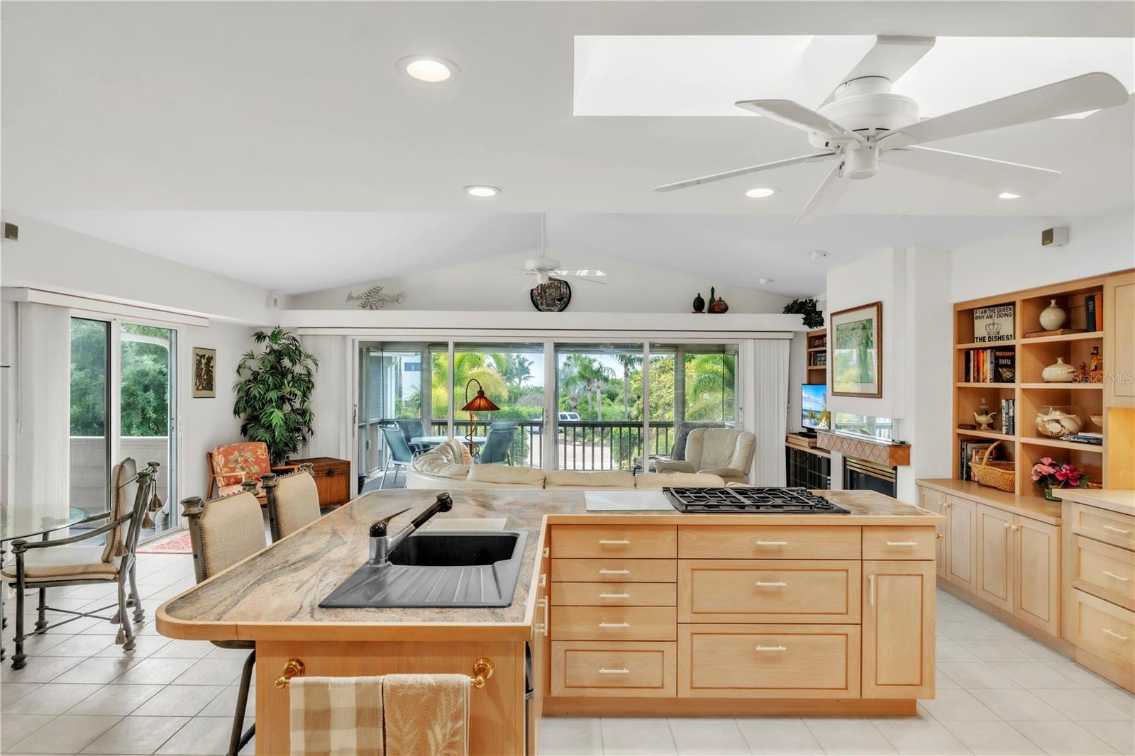 Tucked away at the end of a quiet cul-de-sac in Sunset Cove, this elevated beach home is all about location— just steps from the sugar-sand shoreline of Anna Maria with beach access just around the corner. Designed by architect H. Patterson Fletcher, the residence showcases Frank Lloyd Wright-inspired design elements, emphasizing harmony with nature, open living spaces, and abundant natural light. This elevated island home offers a rare opportunity set on an expansive lot providing ample space to add a pool and create a private outdoor oasis. The 3BD/2.5BA residence plus bonus room spans three levels, with a large garage below offering generous storage and foyer entry. Inside, soaring ceilings and a wall of sliding glass doors in the living room draw in soft natural light and frame tranquil views of the palms and gulf waters beyond. Sliders open onto a large screened porch—ideal for relaxing afternoons or breezy evenings. The open-concept kitchen and living area flow seamlessly, awaiting a modern reimagining to match the home’s timeless architectural character and prime location. The primary bedroom enjoys its own balcony, while the top level’s wraparound windows and deck showcase beautiful water and treetop vistas—perfect for sunrises, sunsets, or stargazing. While ready for cosmetic updates, this home’s solid structure, architectural pedigree, spacious lot, and unbeatable location make it a remarkable canvas for a luxury beach retreat.