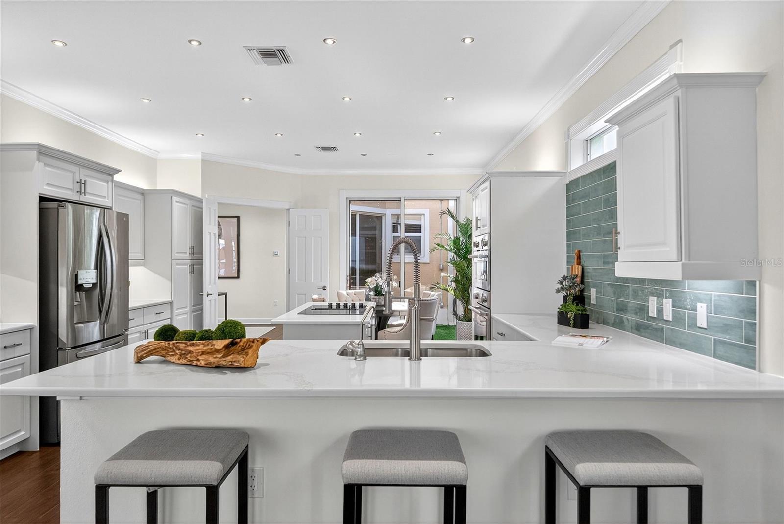 Discover an exceptional opportunity to live behind the gates of the Longboat Key Club in the highly coveted Corey’s Landing neighborhood — one of the island’s premier bayfront addresses. Set within an intimate, established enclave of just 61 single-family homes and villas, this free-standing residence welcomes you through double doors into a showplace of light, style, and space. Step outside to the expansive screened lanai — an inviting oasis for relaxing or entertaining by the pool while taking in mesmerizing bay views and the twinkling lights of downtown Sarasota. Enjoy immediate bay access with the private boat dock and lift. Inside, soaring transom windows, walls of glass, and rich wood floors enhance the open great-room design — a perfect setting for entertaining around the elegant fireplace. The updated kitchen connects seamlessly to the dining and living areas, showcasing sleek white cabinetry, a striking tile backsplash, solid-surface countertops, stainless steel appliances, and a generous breakfast bar ideal for casual gatherings. The first-floor primary suite is a private retreat with walls of glass, a cozy sitting area, custom built-ins, dual closets, and a luxurious remodeled bath featuring dual vanities, a large walk-in shower, and a separate water closet. Also on the main level are a private guest suite, second bedroom, full bathroom, a study/den, and a convenient outdoor dog space. Upstairs, a versatile loft provides the flexibility for a gym, library, or additional guest accommodations. The attached two-car garage offers ample storage, while Corey’s Landing residents enjoy access to a community pool, spa, Har-Tru tennis courts, and the private Bay Isles Beach Club. Ideally located near world-class shopping, dining, and the renowned St. Armands Circle, this residence captures the essence of the Longboat Key lifestyle — elegant, relaxed, and effortlessly connected to both land and sea.