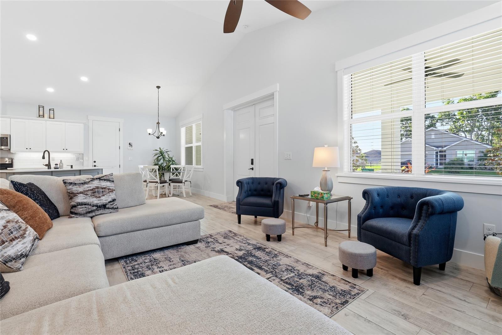 - High Ceilings, Living Room/Dining Room Combo, Open Floorplan, Primary Bedroom Main Floor, Solid Surface Counters, Stone Counters, Walk-In Closet(s)