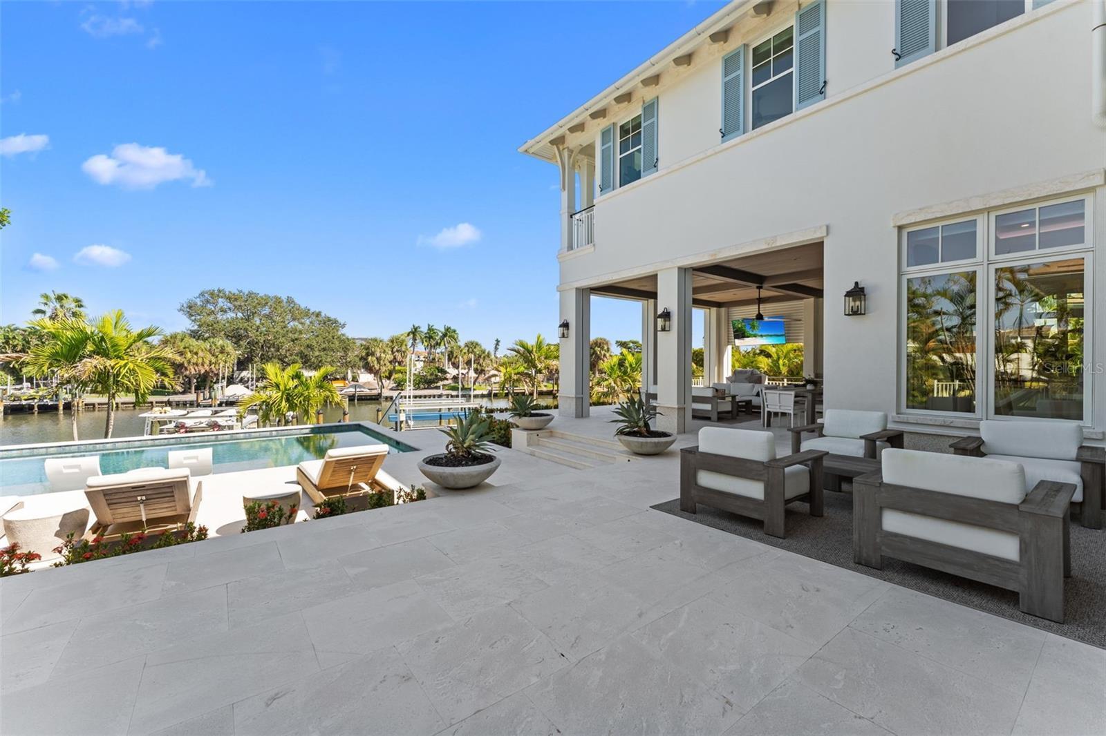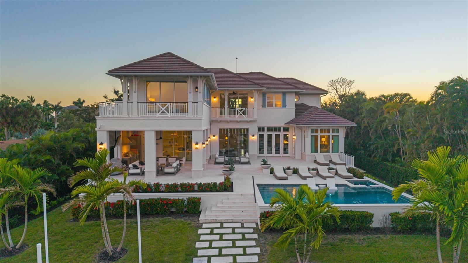 Longboat Key Waterfront Estate with Rare Beach and Boating Access. Designed by Stofft Cooney Architects and built in 2022 by Perrone Construction, one of the Gulf Coast’s premier luxury builders, this stunning coastal residence is a rare offering that blends modern design, structural integrity, and an exceptional location. Positioned on the desirable northern end of Longboat Key, the home offers a lifestyle few can match, with both deeded beach access directly across the street and canal frontage in the backyard. Where most homes require a choice between Gulf or Bay, this property offers the best of both. Step inside to discover a layout designed for both comfort and sophistication. The main level features a serene primary suite with a spa-inspired bathroom, a seated vanity, and a custom walk-in closet. A thoughtfully planned home office includes a custom built-in desk with dual workstations, offering dedicated space for both homeowners. The open-concept living area flows effortlessly into the designer kitchen, outfitted with quartz counters, Thermador appliances, a paneled refrigerator and freezer, wine fridge, and ice maker. A hidden walk-in pantry provides additional prep space and ample storage. Upstairs, a central family lounge connects three en-suite bedrooms, two with tranquil canal views where manatees are often spotted lingering at the water’s surface. The upper level is easily accessed by both a residential elevator and a beautifully crafted staircase with integrated storage. Every room has been carefully curated to reflect the home’s effortless luxury. For buyers seeking a fully realized, move-in-ready experience, furnishings can be negotiated separately. Outdoor living is elevated with a heated saltwater pool and spa, expansive lounging and dining terraces, and a fully equipped summer kitchen featuring stone counters, a Lynx grill, and built-in refrigeration, all protected by push-button retractable hurricane shutters. A dedicated pool bath adds convenience and keeps wet feet out of the house. The private dock includes a 16,000-pound boat lift, a 4,500-pound kayak or jet ski lift, plus additional space to dock a larger vessel in the water. The dock is fully outfitted with shore power, running water, integrated lighting, and a fish-cleaning station, ready for both adventure and convenience. Built high and dry, the home remained fully protected during recent storms, a true reflection of the enduring quality behind its construction. Combining beauty, function, and peace of mind, this is a rare opportunity to enjoy the very best of Longboat Key living, free from compromise.
