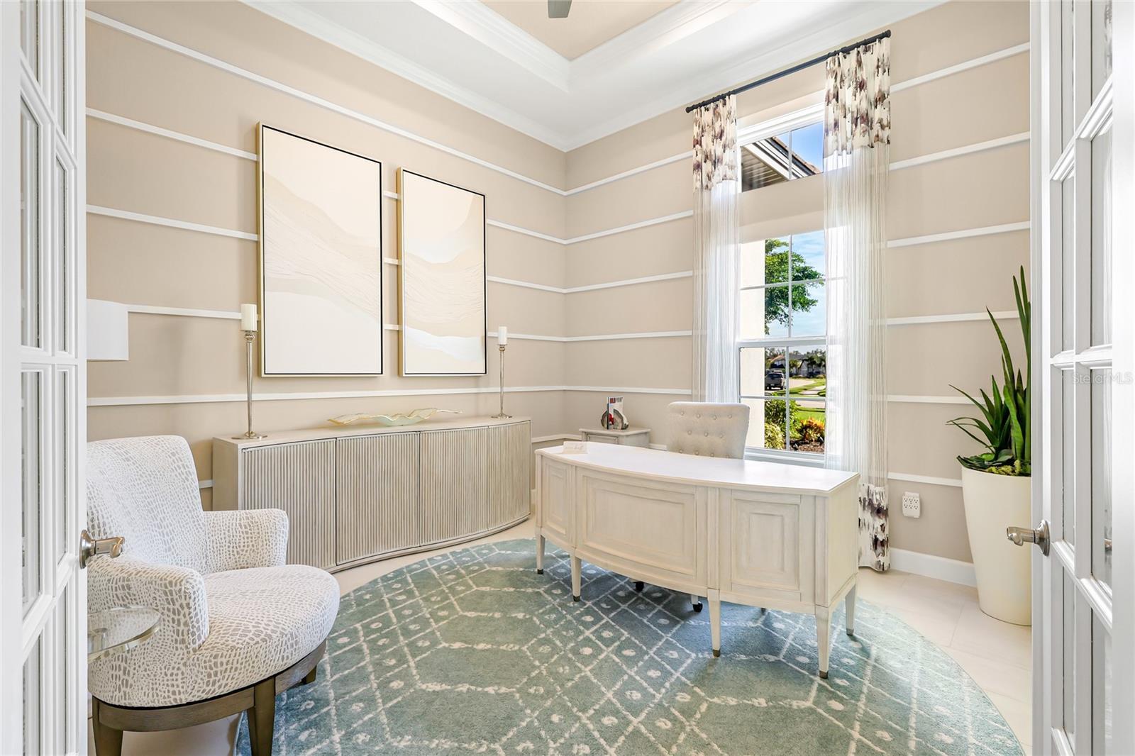 Perfection in Skye Ranch. This former Beacon model offers refined design and effortless indoor and outdoor living on a private preserve lot. Completed in 2020, the home features 4,541 square feet of thoughtfully curated space with soaring ceilings, a great room with custom built-ins and a fireplace, and an entertainer’s kitchen with an oversized island, built-in ovens, a walk-in pantry, and lit cabinetry. The main level includes a study, formal dining area, two en suite guest rooms, and an owner’s retreat with patio access, dual custom closets, and a spa bath with an oversized dual entry shower. Upstairs, a spacious game room with a wet bar and full bath adds flexibility for guests or recreation. Pocket sliders open to a resort-style lanai with pool, spa, and summer kitchen surrounded by peaceful preserve views. Features include impact windows, motorized shades, whole-home audio, three-zone HVAC, and a three-car garage. Located within the gated Cassia neighborhood, just minutes to top schools, Waterside, and Siesta Key.