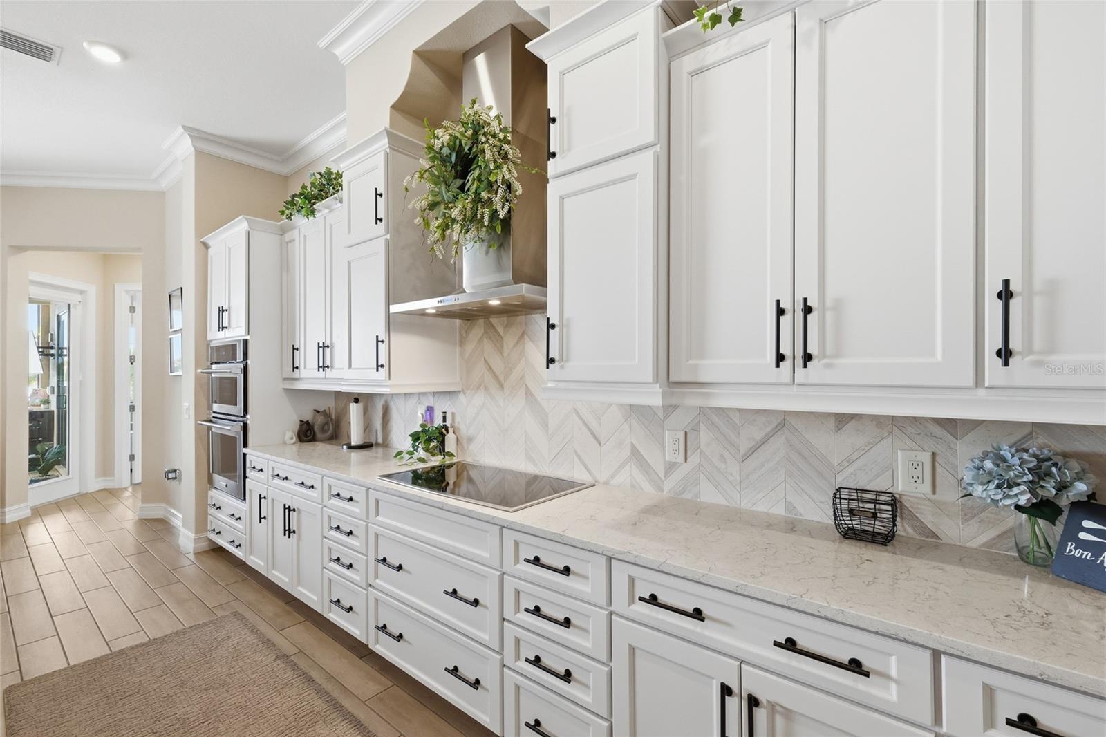 - Ceiling Fans(s), Coffered Ceiling(s), Crown Molding, Eat-in Kitchen, High Ceilings, Kitchen/Family Room Combo, Living Room/Dining Room Combo, Open Floorplan, Solid Surface Counters, Solid Wood Cabinets, Split Bedroom, Thermostat, Tray Ceiling(s), Walk-In Closet(s), Window Treatments