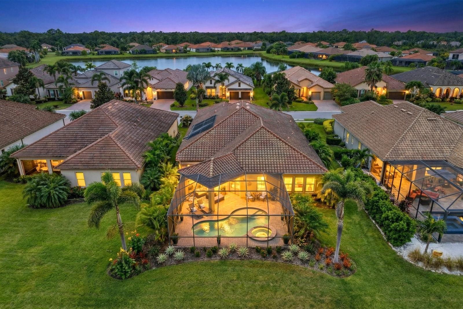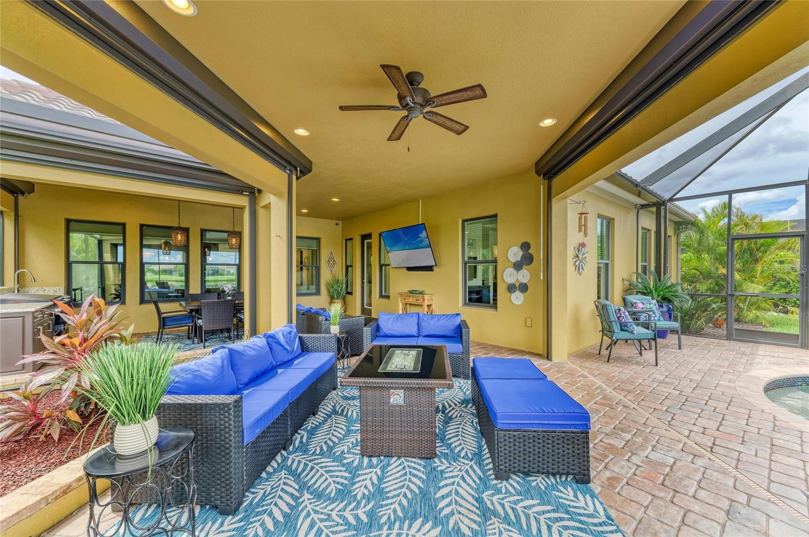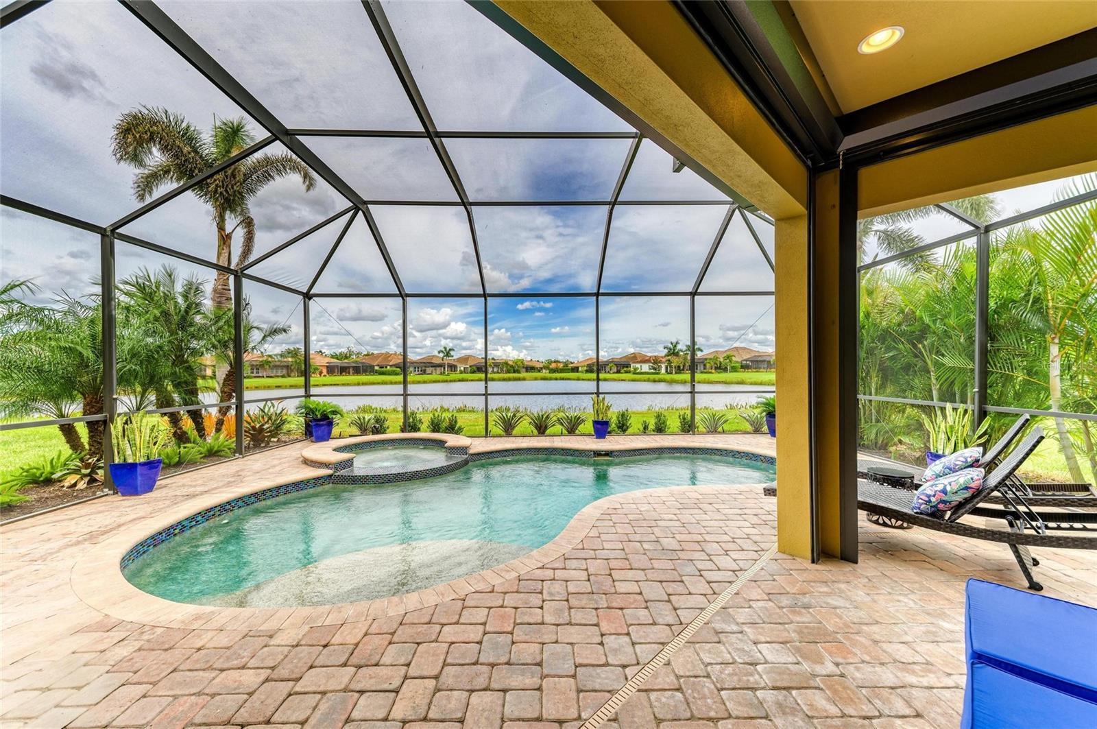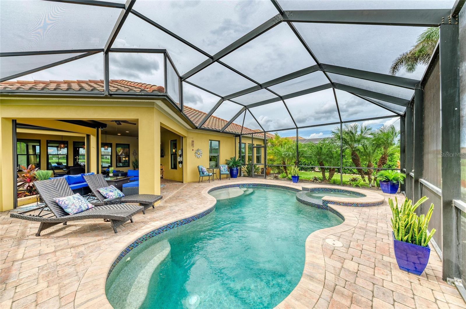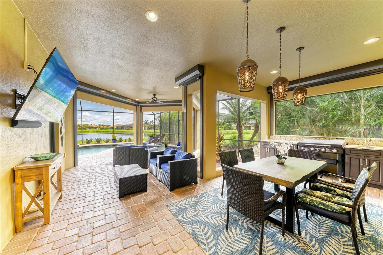 Why wait to build? This stunning Siesta floor plan is loaded with premium upgrades that would cost thousands more today—plus it’s move-in ready! This 3BR, 2.5BA plus den residence offers impact-resistant windows & doors, so no more hassle with heavy shutters. The expansive great room showcases a custom stone entertainment wall with cabinetry and fireplace, coffered ceilings, crown molding, and wood-look tile flooring, creating a warm yet elevated living space. The chef’s kitchen impresses with its extended island, espresso wood cabinetry, granite countertops, backsplash, stainless appliances, wall ovens, gas cooktop, and walk-in pantry—perfect for hosting. Step outside and enjoy true Florida living with a solar-heated saltwater pool & spa overlooking wide lake views, along with a complete outdoor kitchen featuring a Blackstone grill, sink, refrigerator, and polymer cabinetry. Added peace of mind comes with electronic hurricane shades enclosing the entire covered lanai area. The oversized primary suite provides a luxurious retreat with a free-standing soaking tub, Roman shower, and a massive walk-in closet. Two additional bedrooms share a convenient Jack & Jill bath, while the den offers flexible space for a home office or media room. The home also features an expanded laundry room, and an enlarged garage with a 4’ extension and epoxy flooring. The curb appeal is unmatched with enhanced landscape lighting, expanded driveway, screened front entry, paver porch, and meticulous upkeep. Rosedale offers something for every lifestyle—whether active or relaxed. Social membership includes tennis, bocce, fitness center with classes & trainers, junior Olympic pool, 22,000 sq. ft. clubhouse, and full-service restaurant with year-round events. Optional golf memberships are also available. HOA fees include cable, internet, lawn care, two 24/7 manned gates, and dog parks. Located just east of I-75, close to UTC, Sarasota/Bradenton airport, top-rated medical facilities, restaurants, and world-class beaches. No CDD fees! Schedule your tour today and experience Rosedale living.
