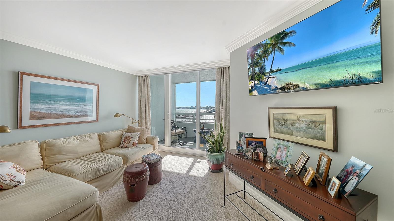 18th-Floor Luxury with Panoramic Bay Views: Unobstructed Sarasota Bay views await from this 18th-floor double residence—one of a kind in Condo on the Bay. With nearly 3,300 sq. ft. of refined living space, two balconies, and two garage spaces, this home combines rare scale, sophistication, and breathtaking vistas. The expansive layout features three bedrooms, three baths and a bonus room--all framed by sweeping water views. The gourmet kitchen boasts granite countertops, custom cabinetry, and premium paneled appliances. Refined details include hardwood floors, crown moldings, coffered ceilings, custom woodwork and wine refrigeration. The primary bedroom includes two large walk-ins and its own sunset balcony. Set within a 24-hour guard-gated community with a concierge receptionist, residents enjoy two bayfront pools, fitness centers, tennis and pickleball courts, concierge service, a social lounge, and rentable boat docks. Perfectly positioned in downtown Sarasota—steps from The Bay park, the Van Wezel Performing Arts Hall, the Ritz-Carlton, St. Armands Circle, and the soft sand of Lido Beach—this is luxury coastal living at its finest.