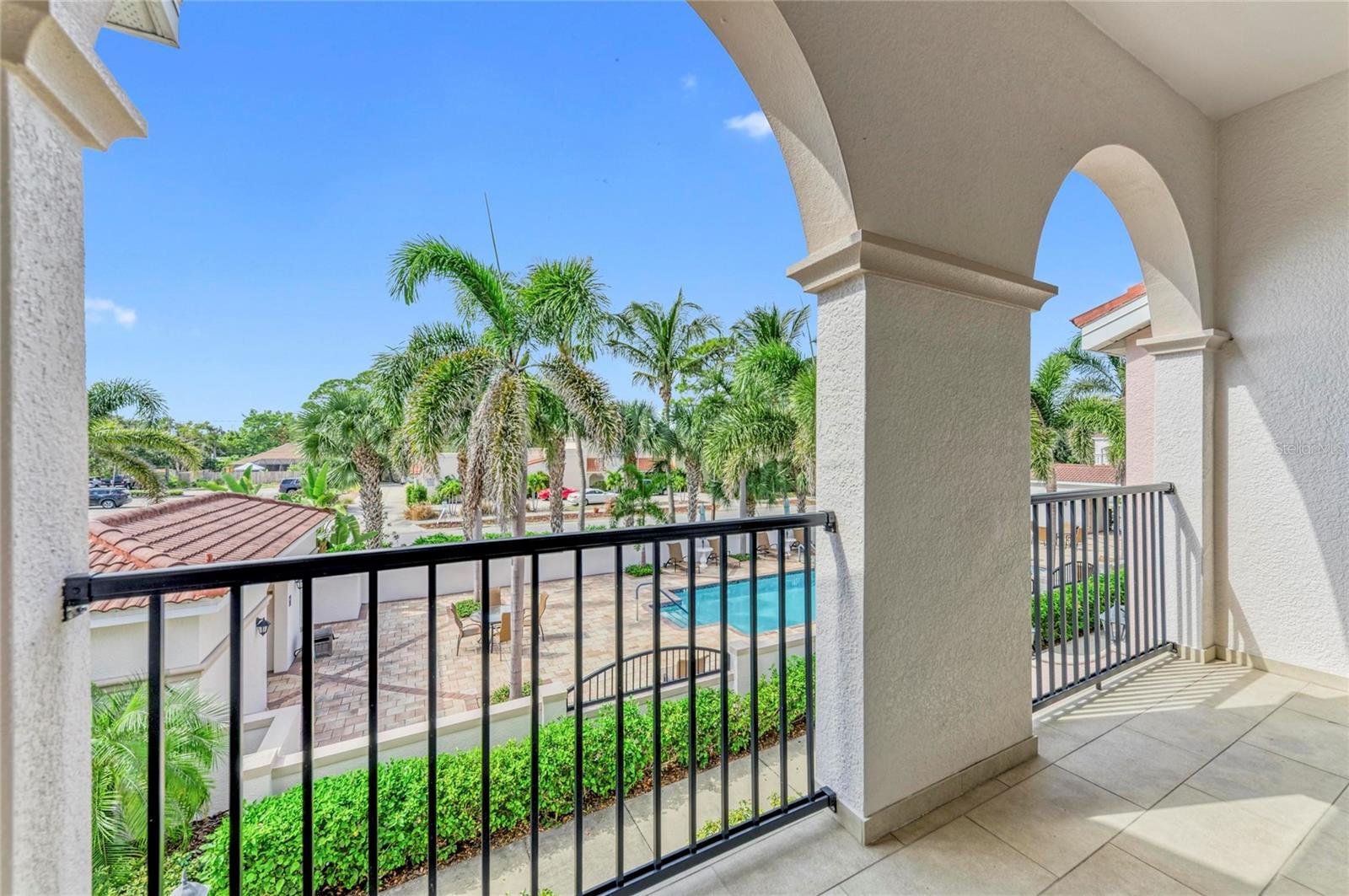 Island Court is a small community of 26 two level Mediterranean style luxury townhouses built from 2014-2015. All units have the same floor plan of 1,767 square feet. The top level features a gourmet kitchen with stainless steel appliances and granite countertops. It continuously extends into a stunning dining and living area with a half bathroom. Step out of the living room to a covered deck with direct view over the heated swimming pool and cabanas. In the evening you will enjoy the spectacular sunsets beyond the pool and palms. The master bedroom has double vanity, a spacious walk-in closet and bathroom with an oversized shower. The ground level features a guest room with full bathroom, walk-in-closet, laundry room, den/office with walk out to patio, attached two car garage and storage space. The unit has many great upgrades, including an elevator, hurricane-impact doors and windows, and integrated smoke and sprinkler system. The condo is designated as "Flood Zone X", not requiring flood insurance. Island Court is very conveniently situated in the heart of Venice, FL. It a short five minute stroll to historic downtown with its many charming restaurants and cafes, boutique and art stores. catch a play or a comedy at the widely acclaimed Venice Theater. Only a few steps away are the Civic Center offering various activities, Venice Public Library, Venice Museum, and Art Center. Just across the street is a shopping center with a Publix grocery store, banks, gym, great restaurants and cafes. Venice Center For Performing Arts, which is the home to Venice Symphony. It’s attached to the highly regarded Venice High School. Every Saturday the historic downtown also features a very popular Farmers Market. A short drive, golf cart or bicycle ride allows you to enjoy the many pristine sandy beaches on Venice Island including,Venice and Caspersen beach. If you love to golf there are numerous exceptional golf courses located in Venice where you can play or practice your swing. The luxury townhouse, with its prime location, offers endless opportunities for adventure and relaxation, all within a few minutes of walking distance to endless actives. Whether you are looking for a seasonal escape or a full time residence, this exceptional Island Court condo will certainly exceed your expectations. It will provide you with lasting memories and a unique opportunity to experience a slice of paradise.