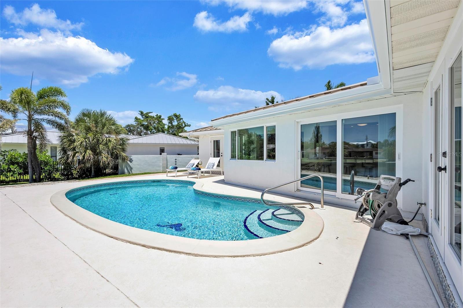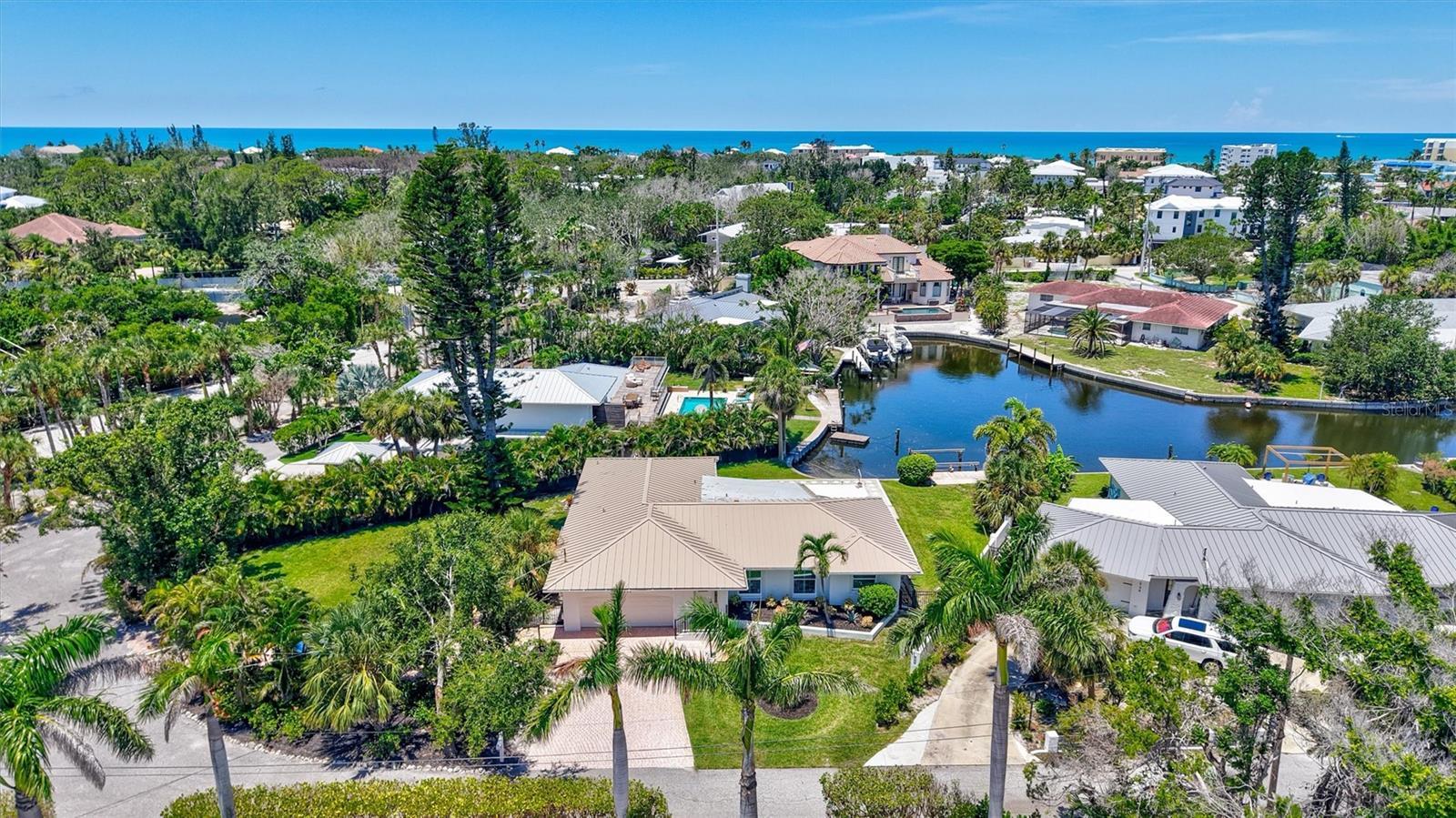 FABULOUS Siesta Key property on protected canal with direct Intracoastal and Little Sarasota Bay access. The star of this property is the protected canal with cement seawall and dock just 5 homes from the Intracoastal Waterway. Easy Gulf access via newly opened Midnight Pass allows expanded boating options. The 0.39 acre lot has plenty of room to expand the current home if desired. The location can’t be beat: less than 1 mile to the Stickney Point Bridge. 0.4 miles to Siesta Key Beach Access #13. Only 4 blocks to dining, shopping and entertainment. This home is on a quiet, private cul-de-sac. Move right in, expand, or build your dream home. The fenced yard is perfect for family and pets. A new metal Roof was added in 2025 and a new AC in May 2024. The 2020/2021 remodel extended and updated the kitchen, enclosed the rear lanai, relocated the front door to add an interior foyer, and upgrade most windows and sliders. The kitchen expansion includes new cabinets and an oversized breakfast bar. This split-plan home has a large primary bedroom with French doors opening to the pool. On the other side of the home find a guest bedroom, updated full pool bath, and secondary suite with a half bath (with plenty of room to create a full bath) that also opens to the pool. The current office can be utilized as a 4th bedroom with closet and ramp directly to the garage. With a separate living room and family room, there is plenty of space for everyone to spread out. Outside, find a large pool area overlooking the canal and a large, circular driveway that has beautiful pavers and two large side yards. This home experienced NO flooding during the 2024 storm season. Best of all, the Seller is offering their beloved 1966 Dodge Dart V-8 GT Convertible with a full-priced offer.