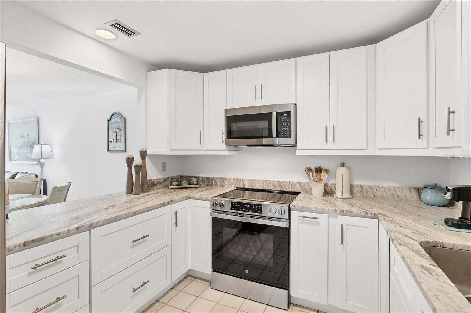 Lido Key dream vacation rental! Newly remodeled and tastefully furnished, two-bedroom, two-bath condominium at the desired Kingston Arms. No need for a car, close to the sparkling sands of Lido Beach and all the wonderful locally owned restaurants and shops on the historic St. Armands Key, or hop on the BayRunner Trolley to downtown Sarasota. No expense was spared for renovation, all tile throughout, a gorgeous new kitchen with all new appliances, cabinets and lovely granite countertops. The main living area has comfortable seating, a smart TV, dining for four or more and overlooks a quiet residential street. The primary bedroom has a king bed, walk-in closet, a smart TV, a full bath and expansive windows, so light and bright. The guest bedroom has a queen bed, a desk and the bath is en suite. You will enjoy your morning coffee on the screened lanai and go to the beach for gorgeous sunsets. Welcome to paradise. Weekly rates are available for off-season bookings too.