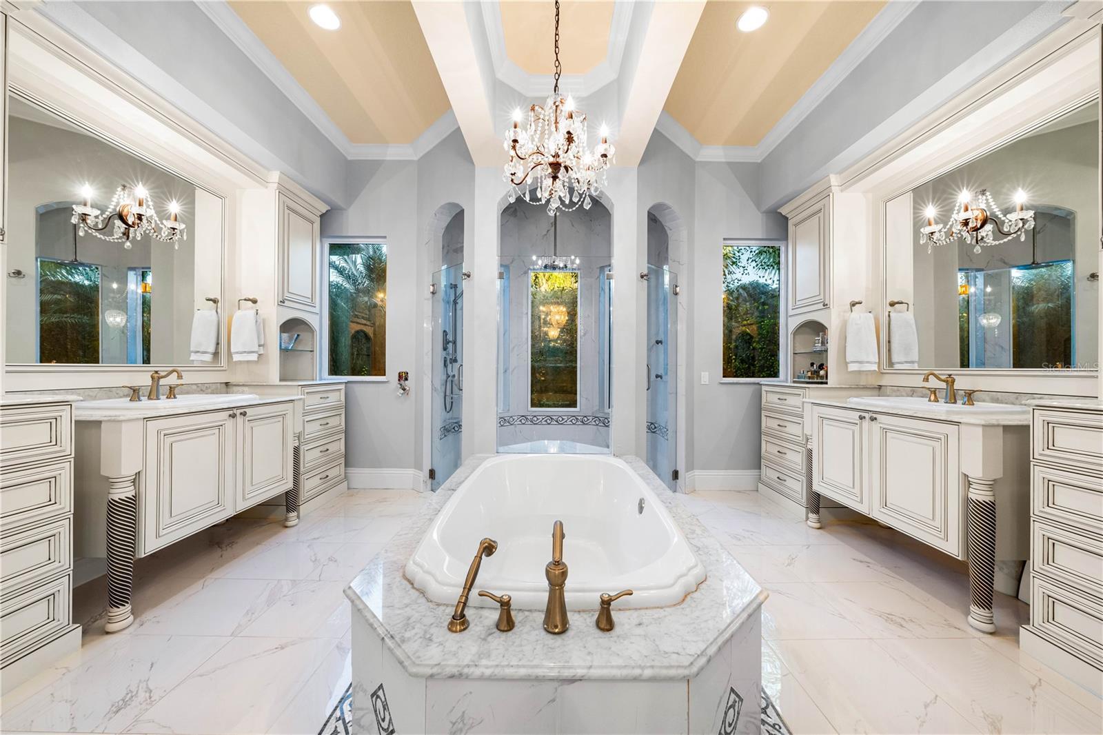 *Exquisite Custom Estate in The Lake Club* Offering 5,030 sq. ft. of air-conditioned living space & 7,361 sq. ft. under roof, this exceptional estate provides privacy and easy access to the community’s main gate, nestled in a circle drive with no through traffic. Set on a prime lot with stunning water views with breathtaking sunrises each morning. The home’s strategic positioning ensures complete privacy, with no neighboring properties directly across the lake creating a peaceful sanctuary. *Sophisticated Interior & Primary Suite* Entering through the custom 10’ iron door, the foyer greets you with travertine floors and an elegant circular medallion with exotic stone inlays. The formal living room features 15' soaring beamed ceilings, large frameless windows with water views, and a custom stone fireplace. The spacious primary suite includes a sitting area with serene water views, coffered ceilings, motorized curtains and direct access to the pool. The luxurious primary bath boasts Carrera marble vanities, a chandelier & a state-of-the-art digital shower system overlooking a private garden with tiered fountain, along with dual walk-in closets. *Gourmet Kitchen & Entertaining Spaces* The chef’s kitchen is based on award winning design equipped with Subzero and Miele appliances, custom cabinetry, granite countertops, and a hidden walk-in pantry. The open-plan family room features custom built-ins & pocketing sliders including disappearing corner leading to the outdoor living spaces, perfect for entertaining. The oversized activity room includes a custom wet bar, seating for six, and a 50” 4K smart TV for the ultimate viewing experience. *Entertainment-Ready Home Theater* The dedicated home theater is designed for cinematic enjoyment, featuring a 13.5-ft Stewart Filmscreen, Sony 4K projector, and 7.1 surround sound. With seating for 12+ guests, this room ensures every movie night feels like a luxury event. *Resort-Style Outdoor Living* Step outside to your resort-style oasis. The heated pool with PebbleTec finish, raised spa with a decorative fountain, 6 gas torches, gas fire bowl and FireMagic grill create the ultimate entertaining space. A cozy seating area with a fireplace and wall-mounted TV completes the outdoor living experience. *Smart Home & Premium Features* Equipped with state-of-the-art smart home tech, this home offers automated lighting, climate control, & security, all remotely accessible. Custom millwork, crown molding, specialty cast stone including Tuscan columns, spiral columns, platforms, finials, balustrades and front window sills plus recessed lighting add sophistication throughout. Additional premium features include a Tesla Wall Connector for EV charging, FGBC Green certified home, impact-rated windows, and a four-zone HVAC system with Wi-Fi connectivity for maximum comfort, Primary AC system replaced (2025). Also, a golf studio located in the 4th bay of the garage, with a mini-split AC system. *Exclusive Amenities at The Lake Club* As a resident you have access to the world-class amenities of The Lake Club. The 20,000 sq ft Grande Clubhouse offers 2 resort-style pools, including a zero-entry pool with a splash park. The spa and fitness center offer guided classes, massages, steam room and facials, while the tennis and pickleball courts feature expert instructors. Inside the clubhouse, enjoy billiards, game tables, cozy seating areas plus an outdoor cigar lounge. The lake club provides a vibrant social community.