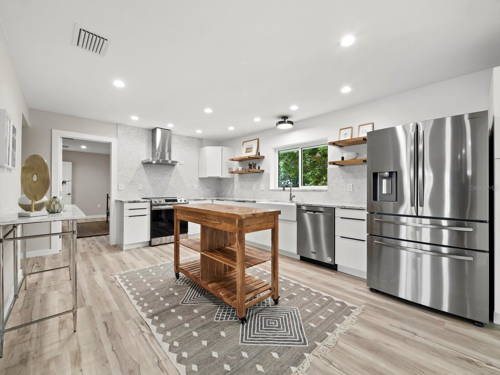 Look no further, you have found your perfect new home! Located in ultra-convenient & Mid-Century-hip South Gate, this sophisticated property has it all – from the completely updated (to the studs) interior to important useful updates such as NEW plumbing & IMPACT windows, it is simply gorgeous and move-in ready. The photos speak for themselves and functionally it will completely wow, with a NEW AC, NEW electrical, NEW insulation, NEW hot water heater, NEWER roof (now with third nail for max wind mitigation credit), NEW sleek kitchen appliances, recessed LED lighting, and impact windows throughout. Everything is done so you can simply move in and enjoy! The tidy and stylish curb appeal sets the scene with a spacious 2-car garage & new plantings, then open the front door to find an expansive & airy living & dining area that flows nicely into to the completely updated & sleek kitchen. You’ll love the Samsung French door fridge & range, Maytag dishwasher, quartz countertops, sparkling backsplash, soft-close drawers & cabinetry, as well as the new SPC LVT-style plank flooring throughout. Totally updated baths with chic & expertly chosen finishes are the cherry on top. The split floor plan is sure to appeal, and a huge bonus room & inside laundry room really add to the functionality of the home. Outside you will enjoy getting some sun on the brand-new deck, while reveling in the green surroundings and privacy this large lot offers. The location here cannot be beat; 10 minutes to downtown, Siesta Key, and the interstate, and just slightly more to lively St. Armands Circle and Lido Beach. A Legacy Trail entrance just a mile away is also wonderful for cyclists or those who appreciate nature. This home is immaculate and a must-see on every level so please schedule your visit today!