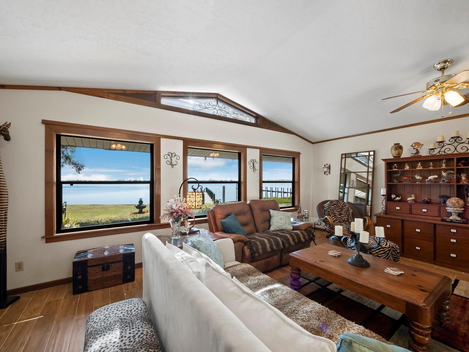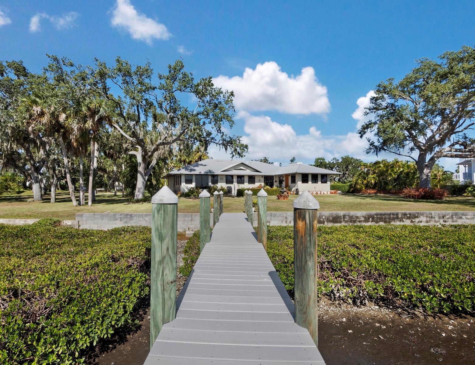 A rare offering of a 3 bedroom, 2 bath home situated on over half an acre of a tree lined oasis on the open river!! Can you just imagine waking to this view every day?! This home is currently listed almost $200,000. under appraised value!! The idyllic setting invites peace and serenity, making it a perfect retreat from the bustle of everyday life. It is tucked away down a private road and yet you are just a short easy drive to I-75, and to multiple restaurants, shopping, and entertainment. Meticulously maintained, this home offers gorgeous views from almost every room. As you enter up the interior steps, you are immediately greeted with a large open front room and three large windows open to the amazing views. A beautiful formal dining area sits to your left. The home is over 2400 square feet and allows a family to spread out and have their own space or to come together in comfort in the large eat in kitchen that opens to the great room. Multiple areas are here to enjoy the stunning view…..a breakfast bar, a cozy spot in front of the stone fireplace, another dining table with sliders out to the riverfront patio….and green space surrounded by lush gardens and stately trees before you even step out on the long dock which ends in a deck you may never want to leave. Come and see this true Florida oasis and experience the joys of riverfront living for yourself.